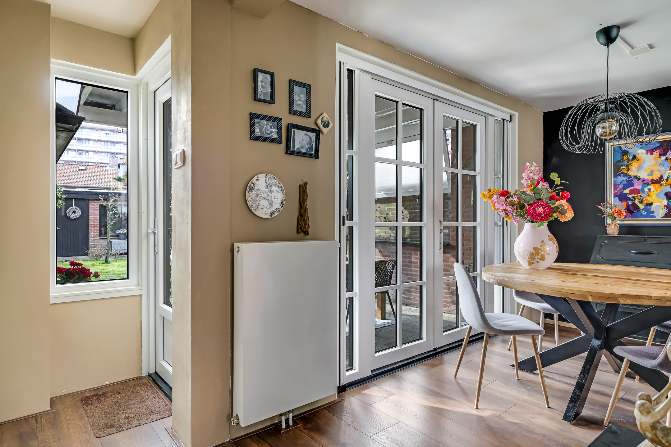 Dubbele terrasdeuren waardoor je eenvoudig het buitenleven bij de woning betrekt
