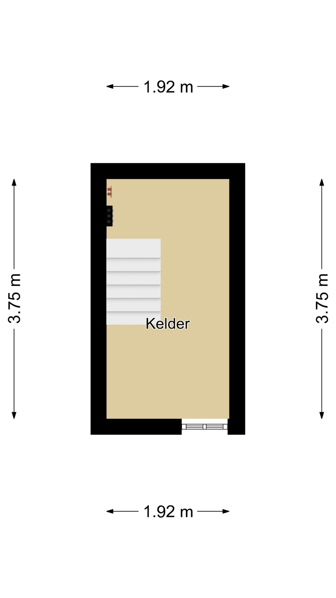 Onder de trapopgang vind je een deur die toegang geeft tot de kelder. Deze kelder is verrassend groot en heeft voor velen (bijna) stahoogte (1,83m hoog). Dit is nog zo’n kelder van vroeger waar je echt iets aan hebt. Wandschappen zorgen ervoor dat je hier veel voorraadkoel kunt bewaren. Opvallend is dat zelfs hier het raam is vervangen door kunststof. En niet te vergeten de groepenkast die bovenaan de trap is voorzien van een geheel nieuwe verdeelkast met aardlekschakelaars.
