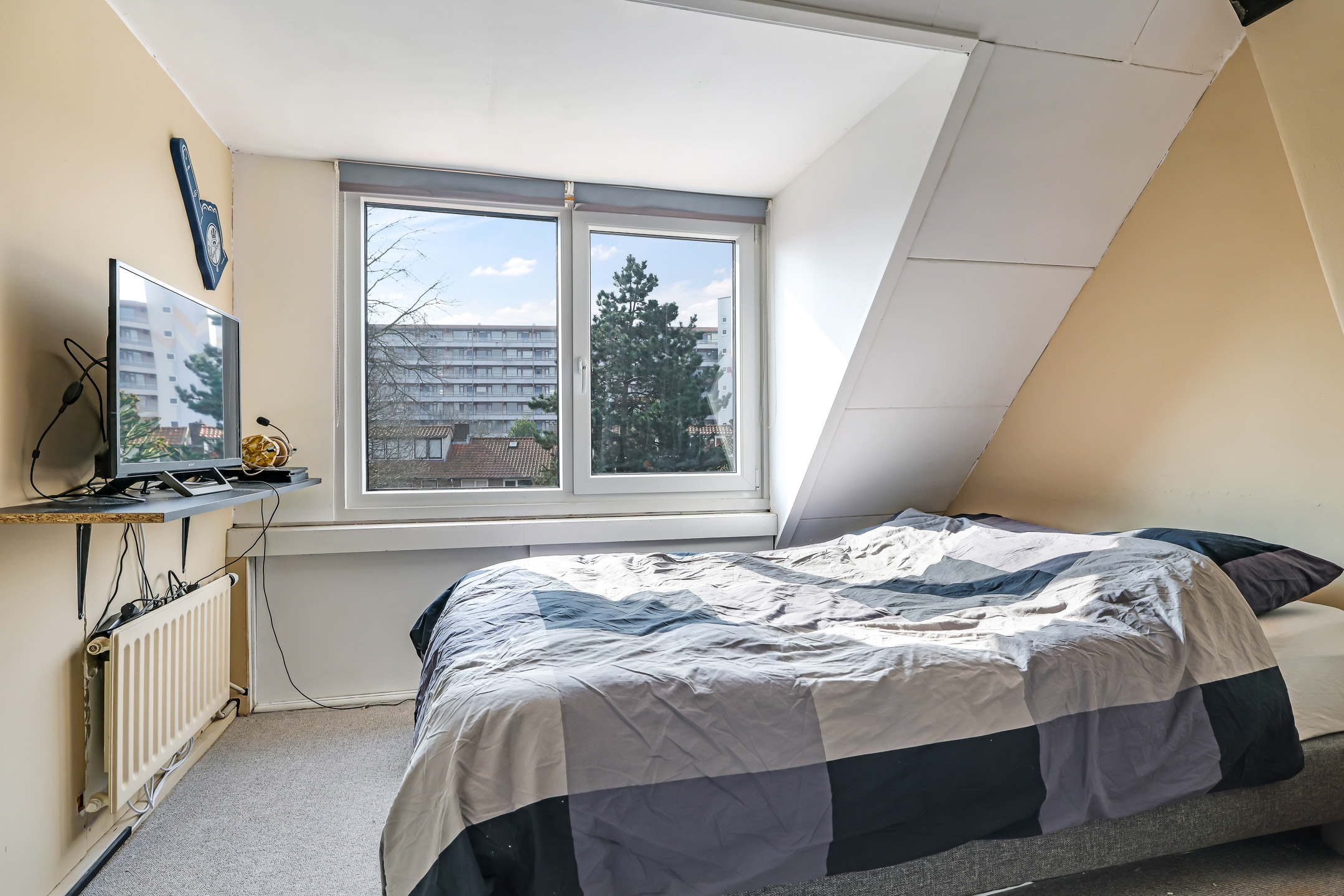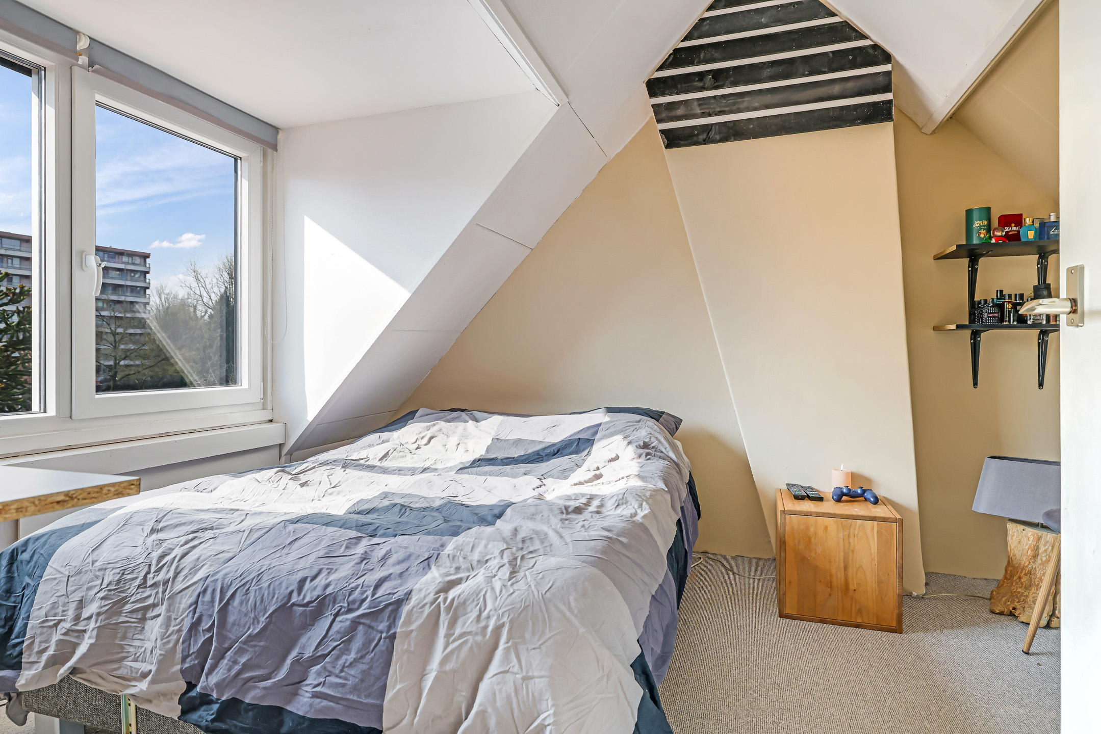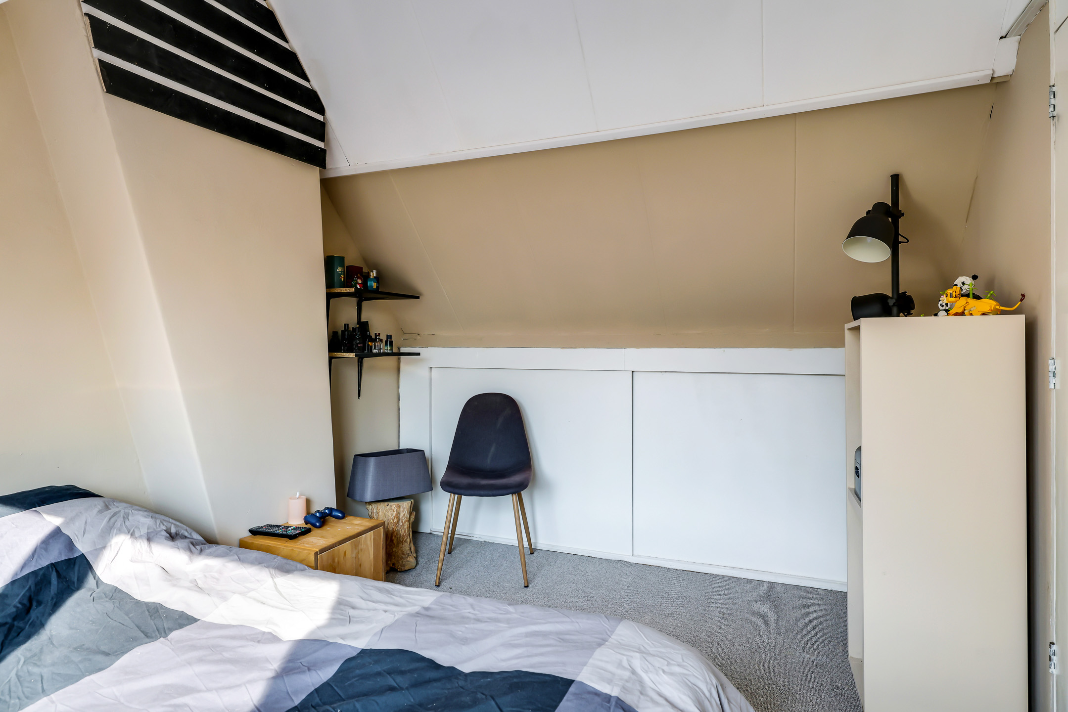 4e Slaapkamer met (doorlopende) dakkapel en knieschot opbergruimte.