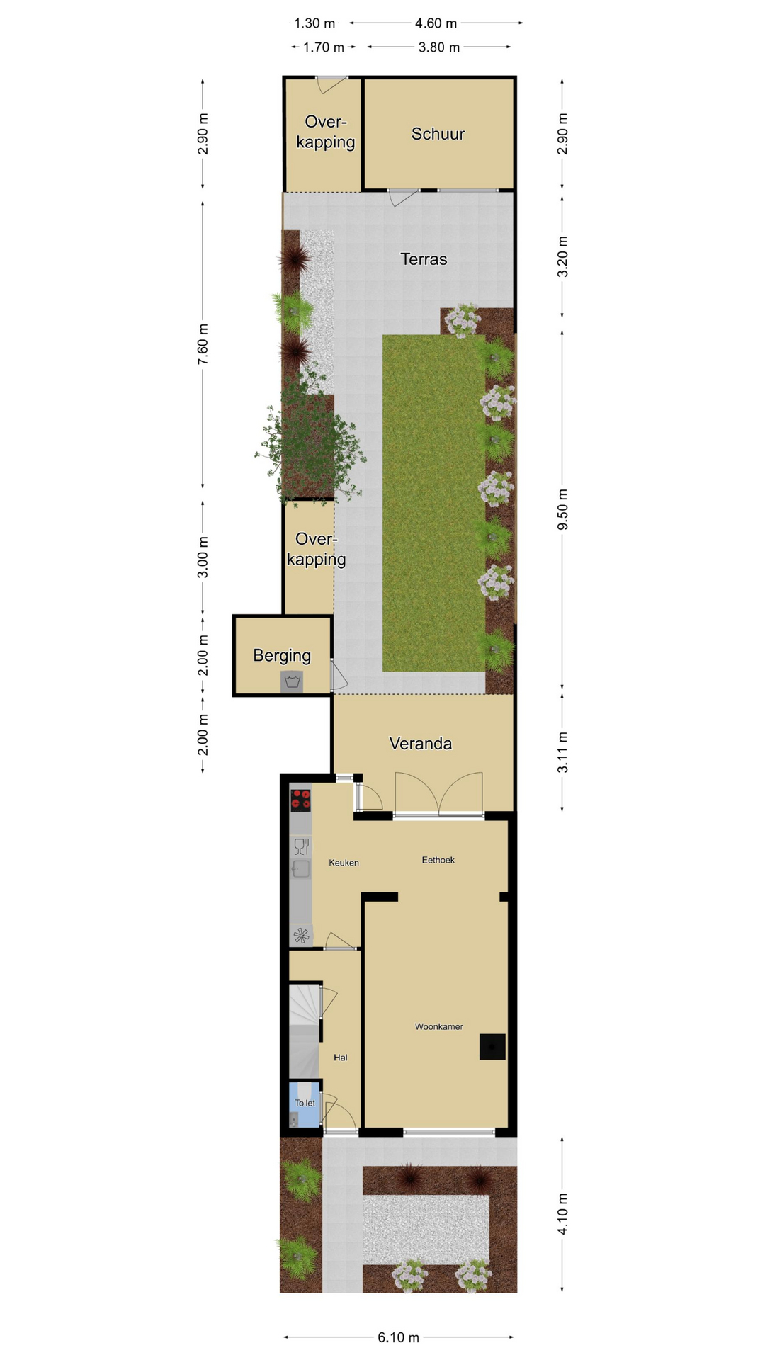 Zonnige achtertuin pal op het zuiden (maximaal aantal zonuren)