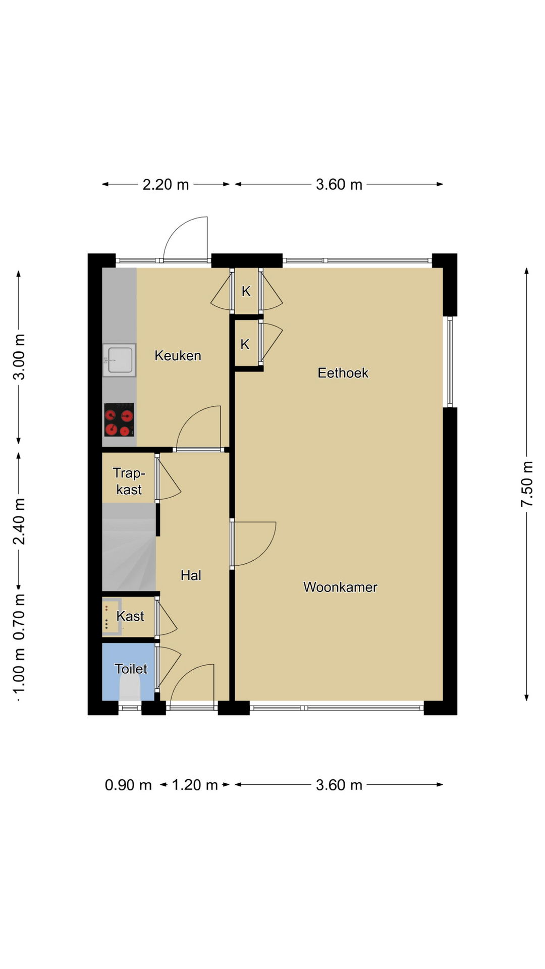 Hal/entree met toilet, diepe meterkast, verdiepte trapkast en trapopgang