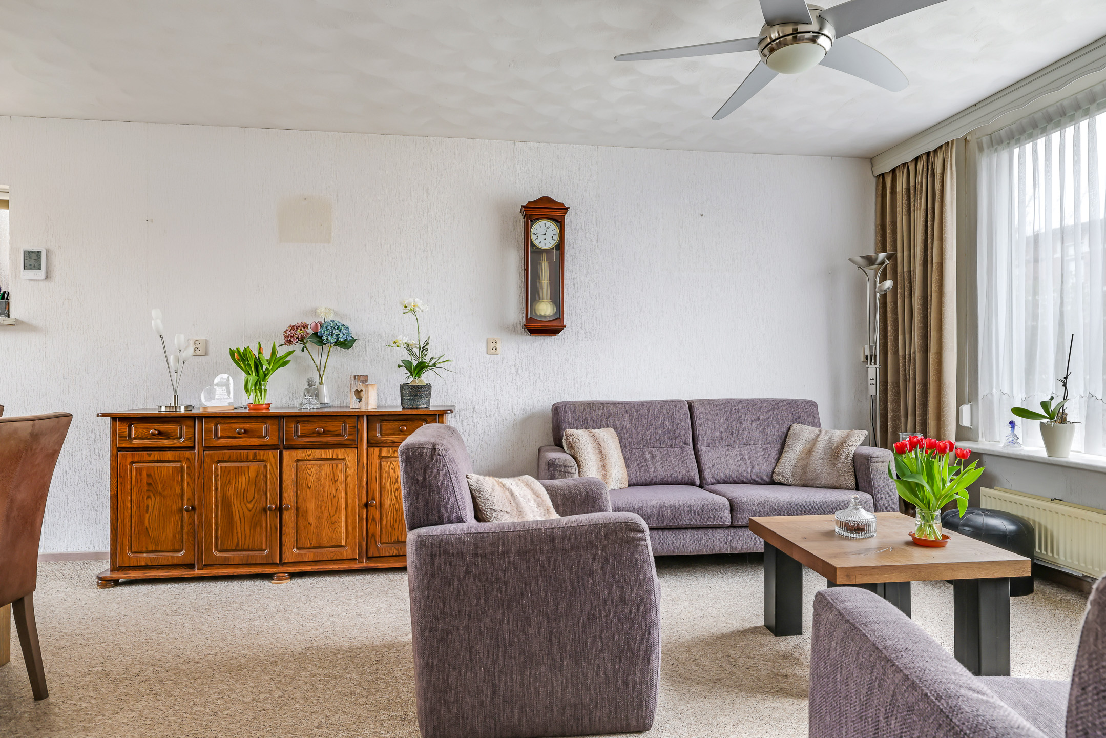 Doorzonwoonkamer met 2 vaste kasten