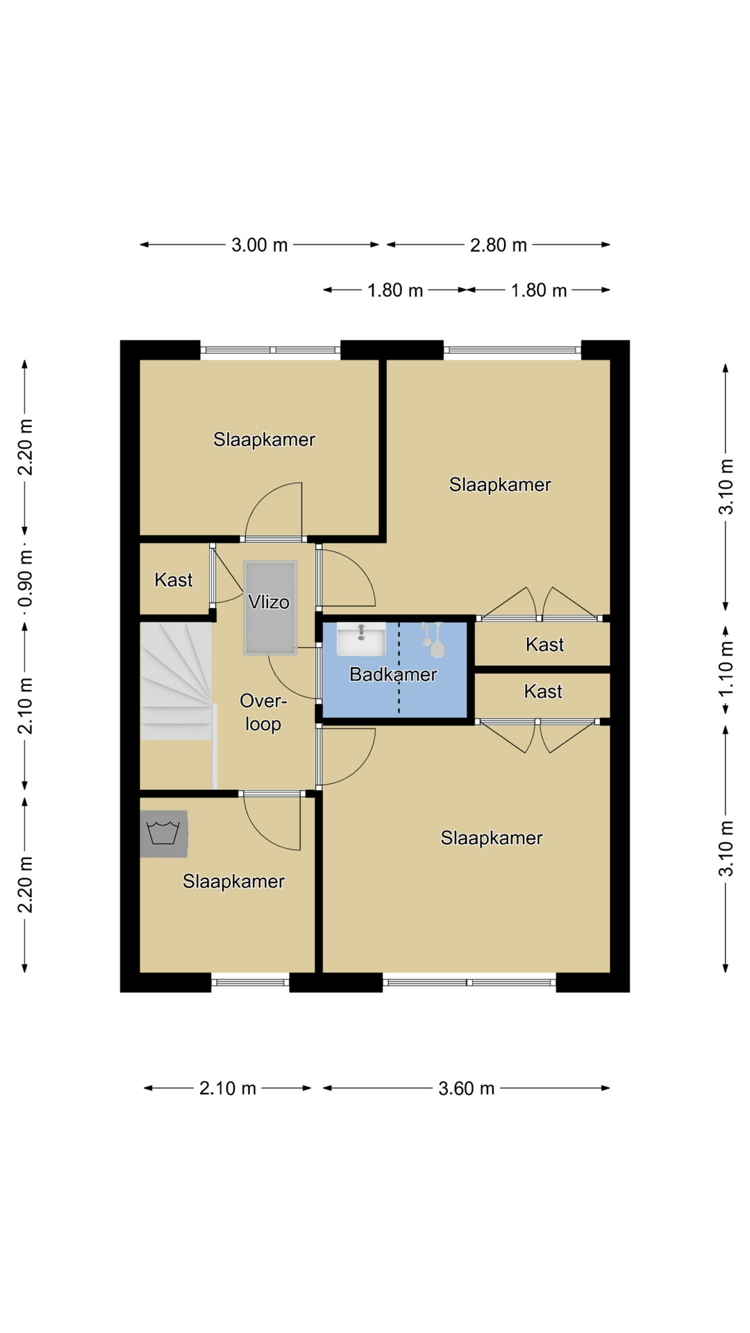4 Slaapkamers met 2 vaste kasten