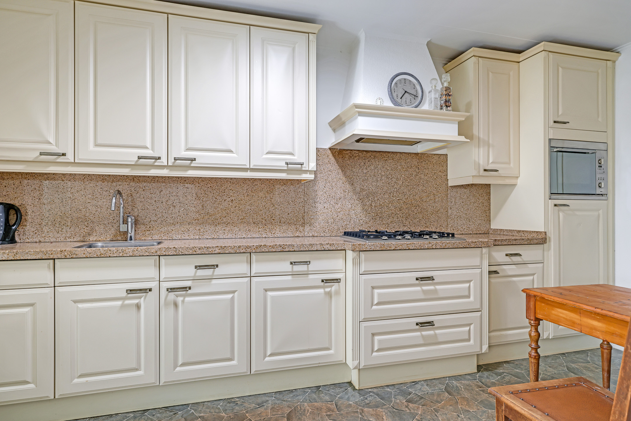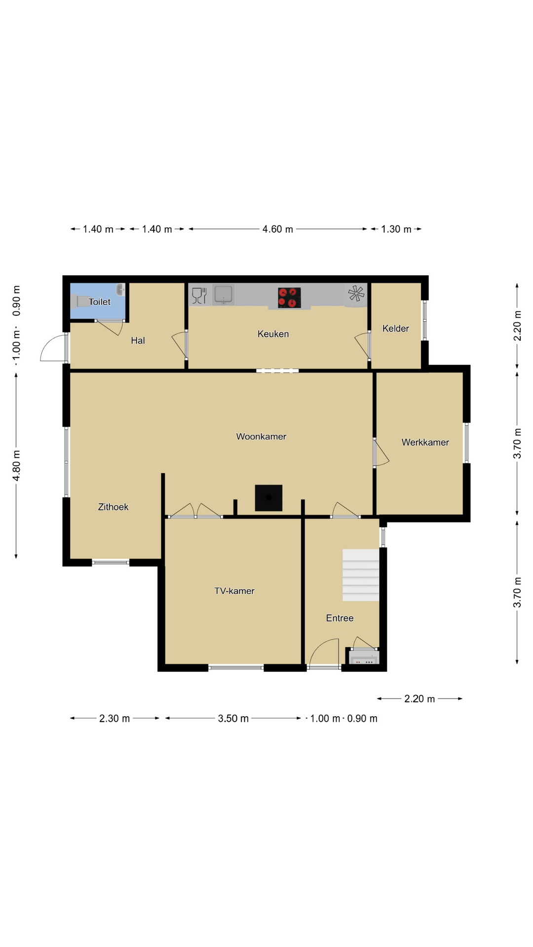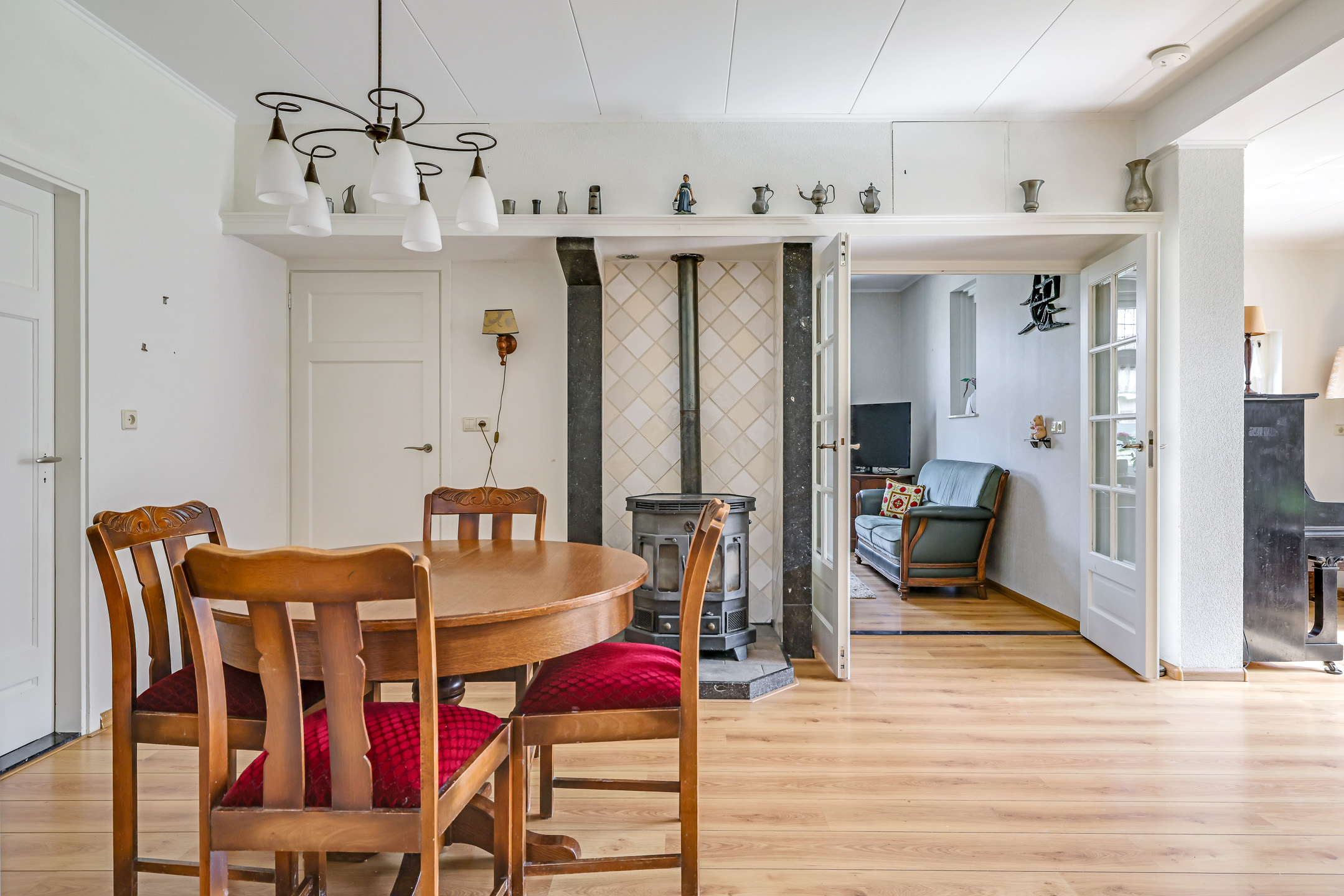 De woonkamer heeft en-suite deuren naar de voorkamer/TV-kamer waardoor je die kunt afsluiten en verschillende zithoeken kunt creëren. De keuken betreft een landelijke keukenopstelling met granieten werkblad en diverse inbouwapparatuur zoals een vaatwasser, een 5-pits gaskookplaat met afzuigschouw, een koelkast en een combi/oven magnetron. De aparte kamer die aan de woonkamer grenst zou een ideale werk/studiekamer kunnen zijn, maar zou ook als slaapkamer op de begane grond ingericht kunnen worden. Naast de keuken is een 2e hal te vinden met toilet en tuindeur. Hier zou je eventueel ook een (2e) badkamer of douchegelegenheid kunnen creëren zodat de woning (indien gewenst) levensloopbestendig te bewonen is.