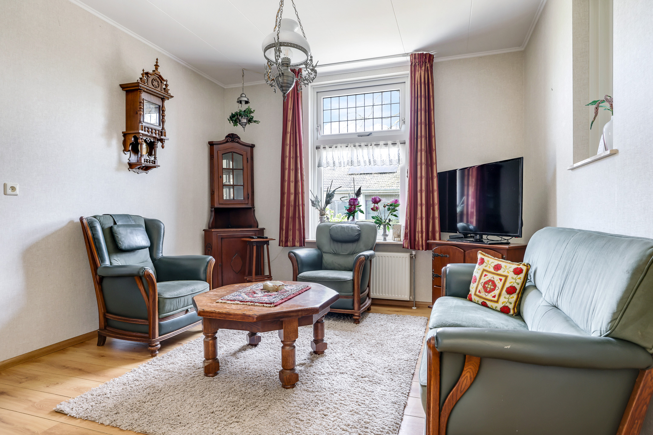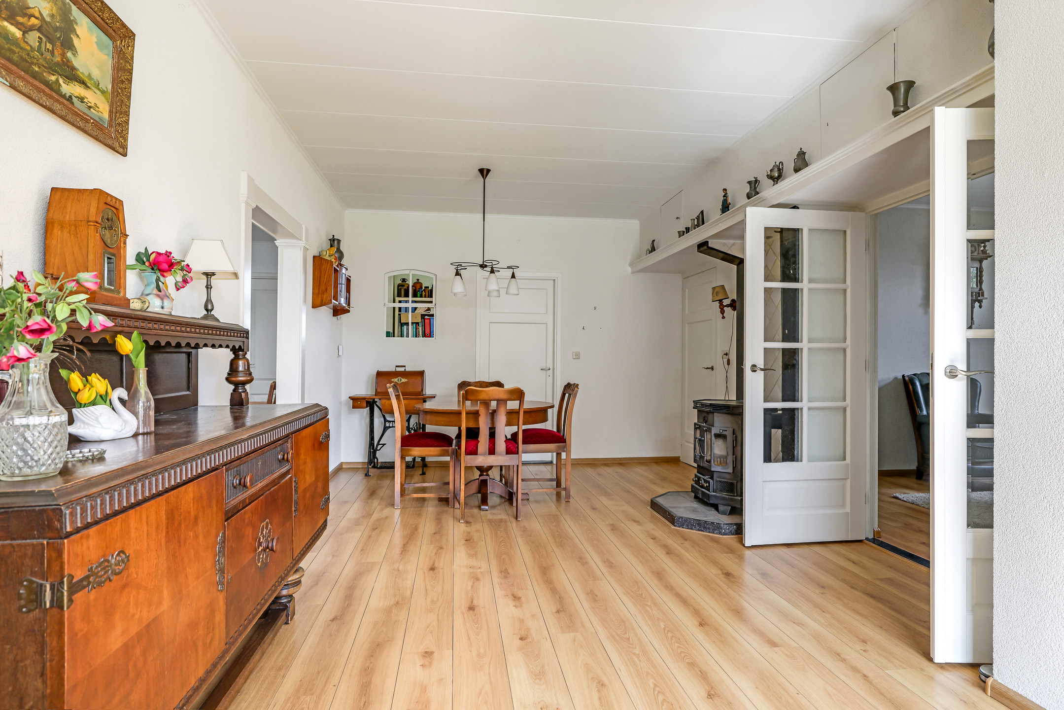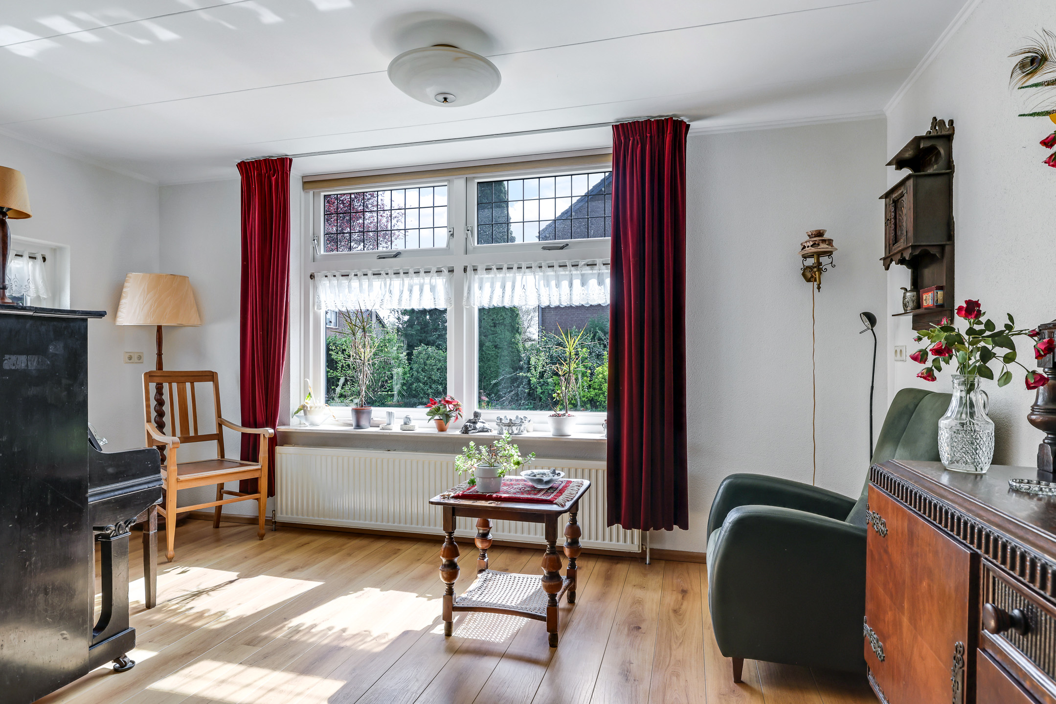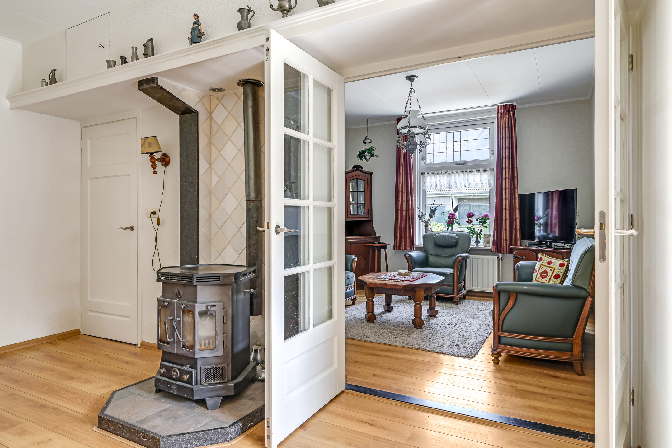 Het voorhuis is meer het authentiekere en sfeervollere huis van de 2 hetgeen je terug ziet in karaktervolle details als glas-in-lood (in isolatieglas), een fraaie granitovloer in de hal en een traploper op de nog originele trapopgang in de hal. De indeling bestaat uit onder andere een woonkamer met verschillende zithoeken, een werk/studiekamer, een half-open keuken v.v. inbouwapparatuur en op de verdieping 2 slaapkamers, een badkamer en een wasruimte. De grootste slaapkamer heeft een bijzonder ruimtelijke beleving met hoge nok en een dakkapel. Leuk element is de houtkachel in de woonkamer die achter blijft.