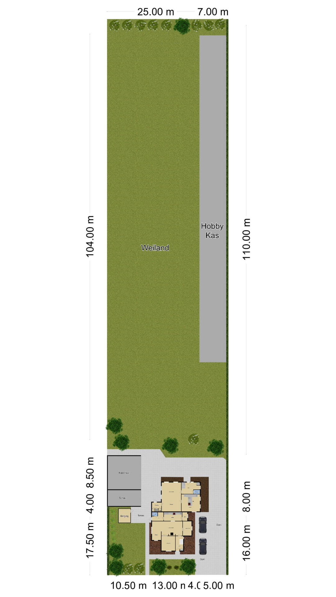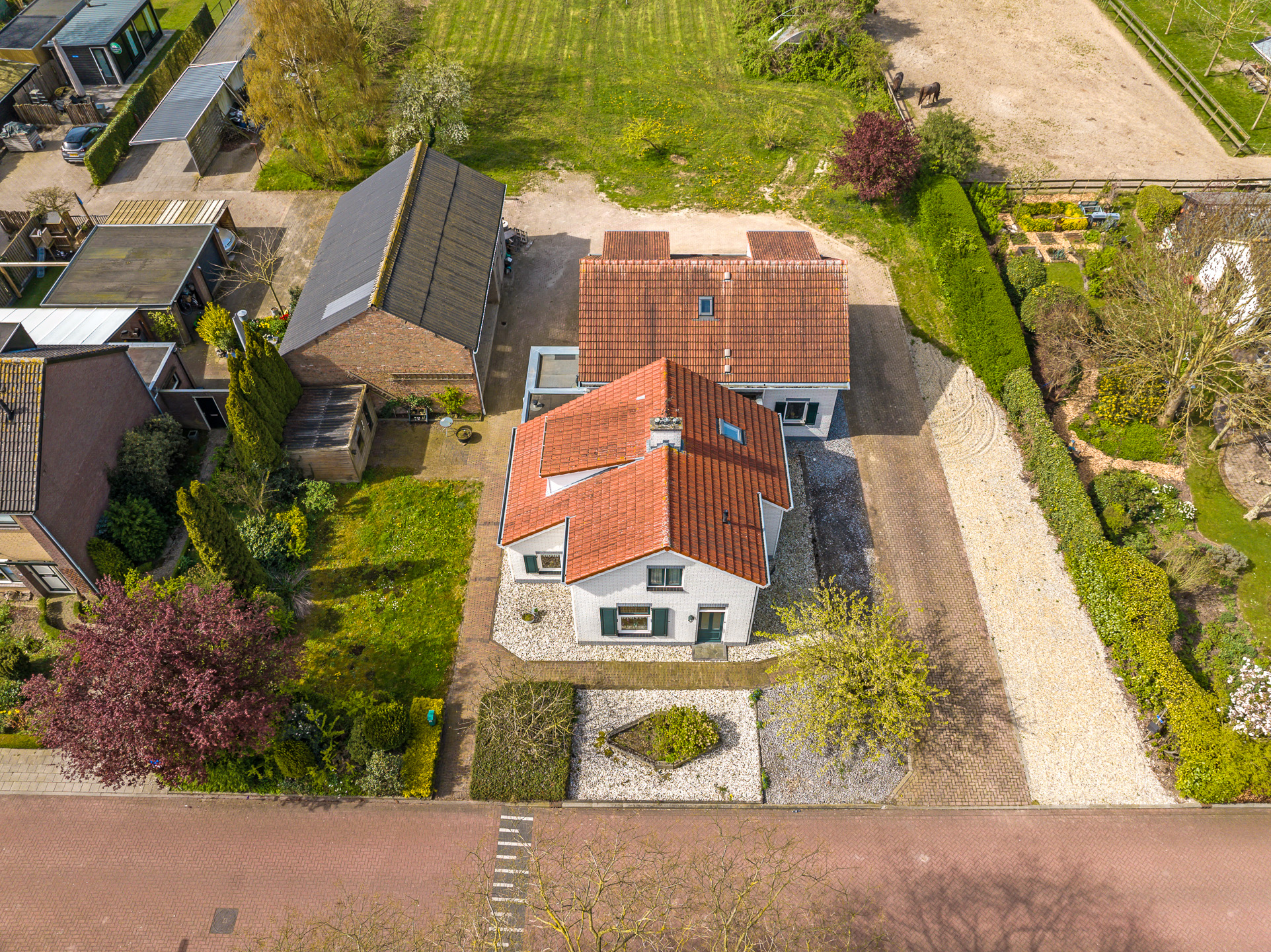 Bijna aan het einde van de fotoreportage is er een plattegrond van het totale perceel (incl. achterhuis) alsmede een luchtfoto van het weiland van nummer 35 bijgevoegd om een totaalbeeld te geven voor het geval er interesse is naar zowel het voor- en achterhuis.