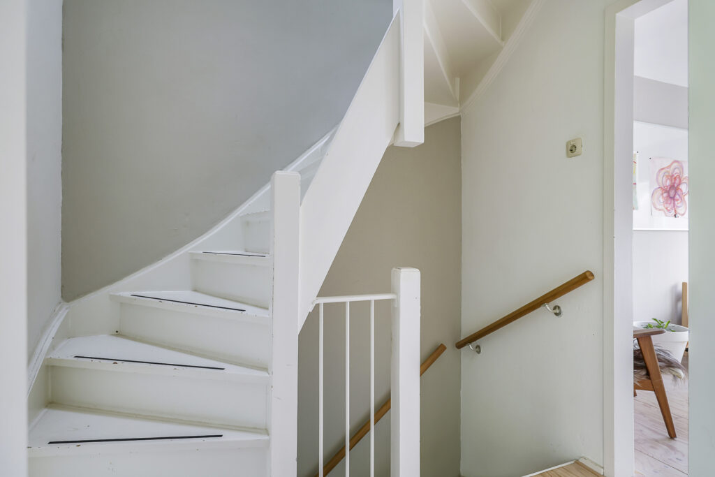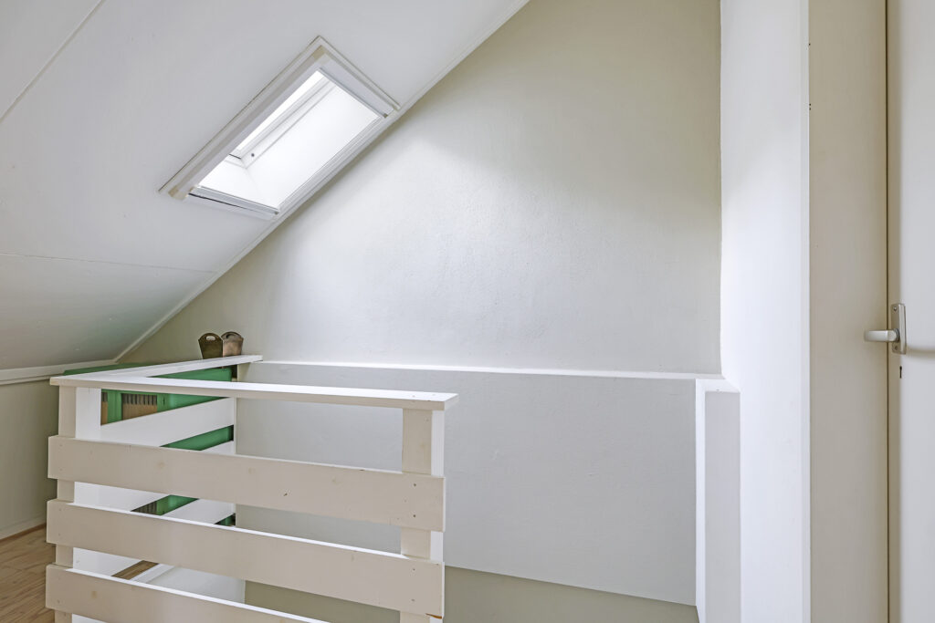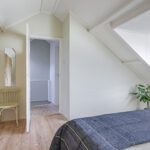 De tweede verdieping is verrassend ruim en goed ingedeeld met een voorzolder, een slaapkamer en een wasruimte. De vierde slaapkamer is voorzien van een brede dakkapel die zorgt voor extra leefruimte en veel licht. Opvallend is dat er een diepe kastenwand is geplaatst onder de schuine kap. Hier tref je verrassend veel ruimte waardoor je er eenvoudig een volledige garderobe kwijt kan. Op de voorzolder is een aparte wasruimte gecreëerd met aansluitingen voor wasmachine en droger. Daarnaast is er nog meer dan voldoende bergruimte, tevens achter knieschotten.
