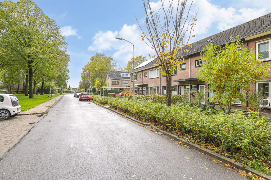 Bij de woning hoort een zonnige tuin op het westen met meerdere terrassen en zonwering. De stenen schuur is groter dan gemiddeld waardoor je meer dan voldoende bergruimte treft. Daarbij ligt de woning aan een rustige straat met in het midden een brede groenvoorziening. Het dorpshart, basisscholen en de uitwaarden zijn binnen handbereik.