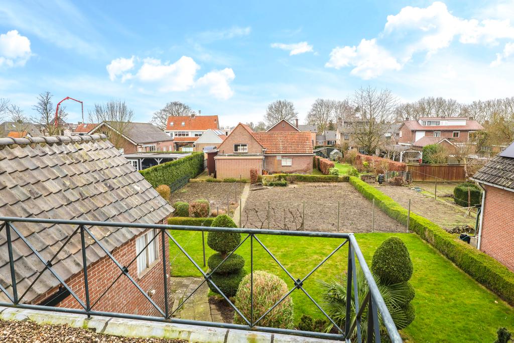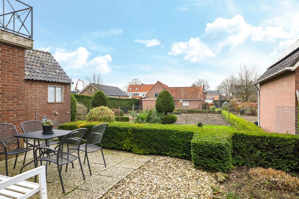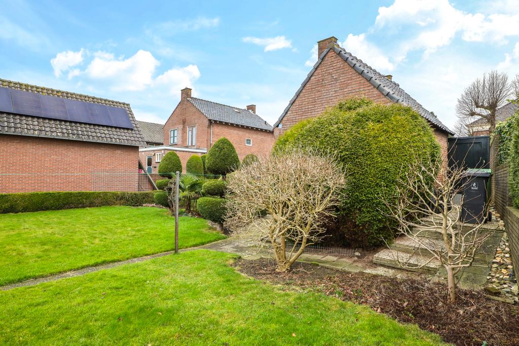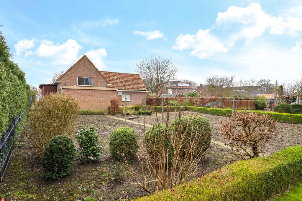 Doordat de woning gunstig op het diepe perceel staat, ligt de meeste tuin aan de achterzijde. Gemeten vanaf de achtergevel is de achtertuin circa 34 (!) meter diep. Bovendien loopt de achtertuin naar achteren in de breedte uit waardoor de tuin achterin circa 18 meter breed is. Bij de achtergevel is een heerlijk zonneterras (op het zuiden) aangelegd. Het terras ligt ook wat hoger dan de rest van de tuin waardoor je een mooi gezichtsveld hebt. De tuin is overzichtelijk en voor een groot gedeelte aangelegd als moestuin. Het biedt in ieder geval volop perspectief om er geheel je eigen stempel op te drukken. Diverse speeltoestellen, een terrasoverkapping of een voetbalveldje, het is hier allemaal mogelijk zonder dat je meteen ruimte tekort komt.
