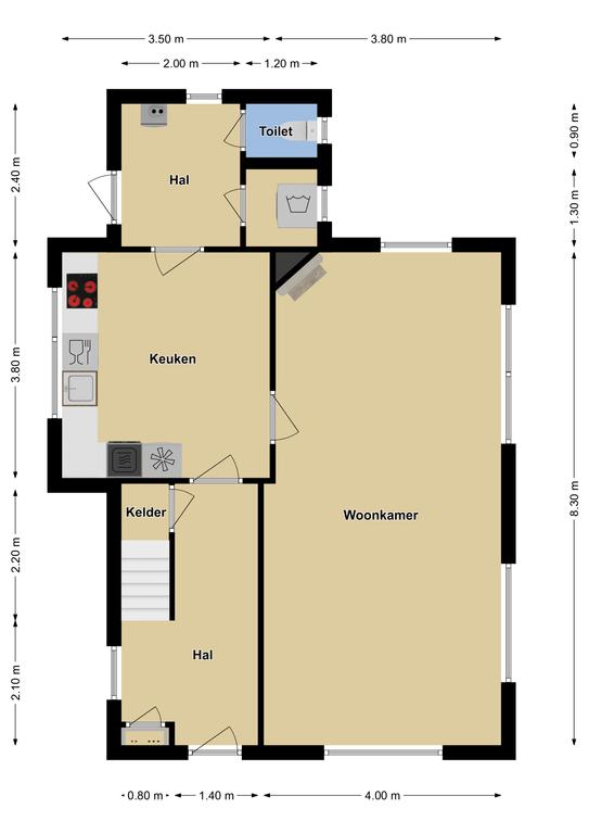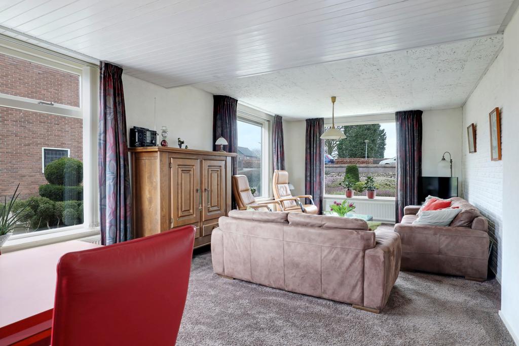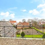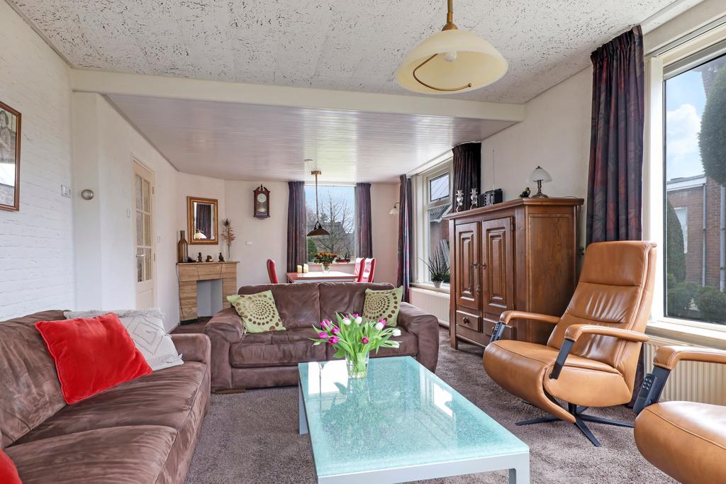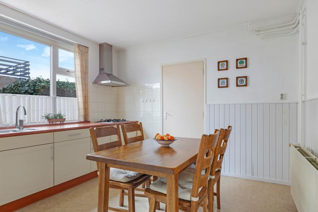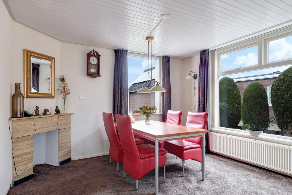 De woonkamer heeft goed formaat, namelijk 4 meter breed en meer dan 8 meter diep. De grote ramen (op de zon) versterken het ruimtelijke gevoel en zorgen voor een prettige woonsfeer. Aan de voorzijde kijk je vrij weg op de kerk waardoor je geen directe overburen hebt. Aan de achterzijde zit je eveneens vrij aangezien de tuin zo diep is. Mocht je nog meer ruimte willen creëren, dan zou je de woonkamer aan de achterzijde kunnen uitbouwen. Ook het doorbreken van muur tussen woonkamer en keuken is een optie. Noemenswaardig is de schouw in de hoek die nog doet denken aan de potkachel die vroeger het huis verwarmde, maar nu een sfeerelement is.