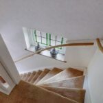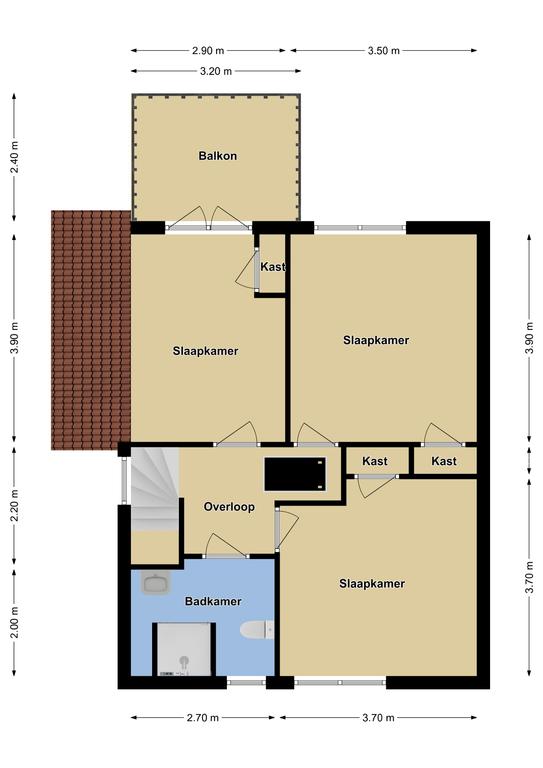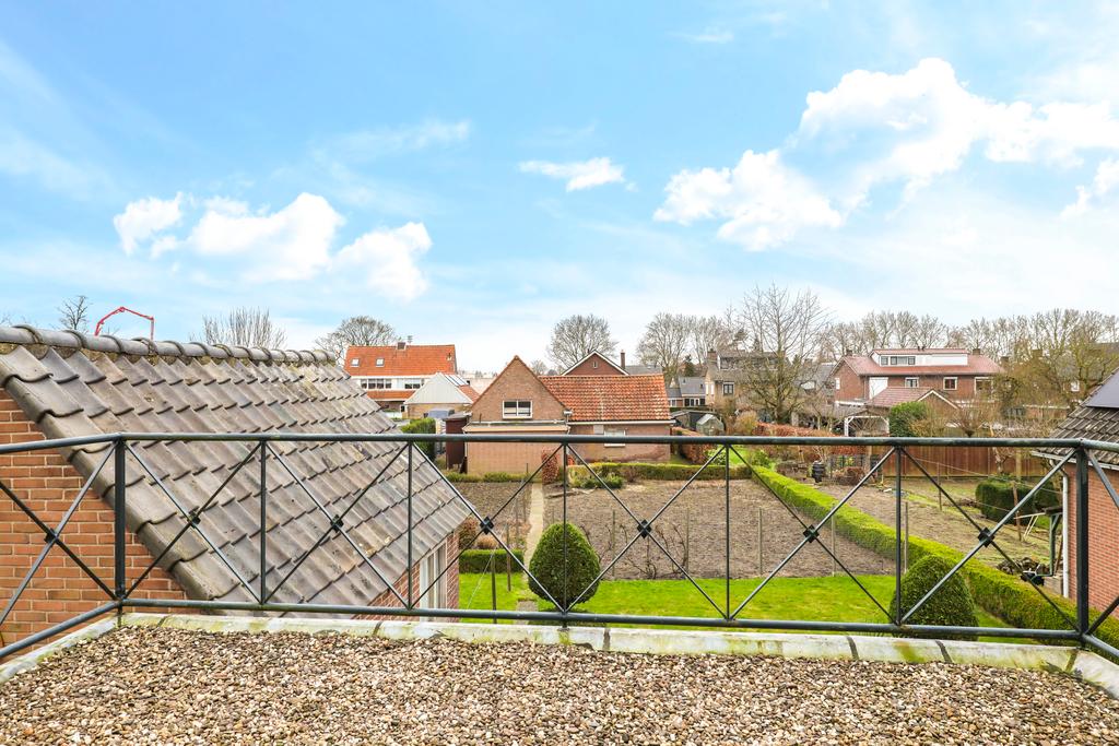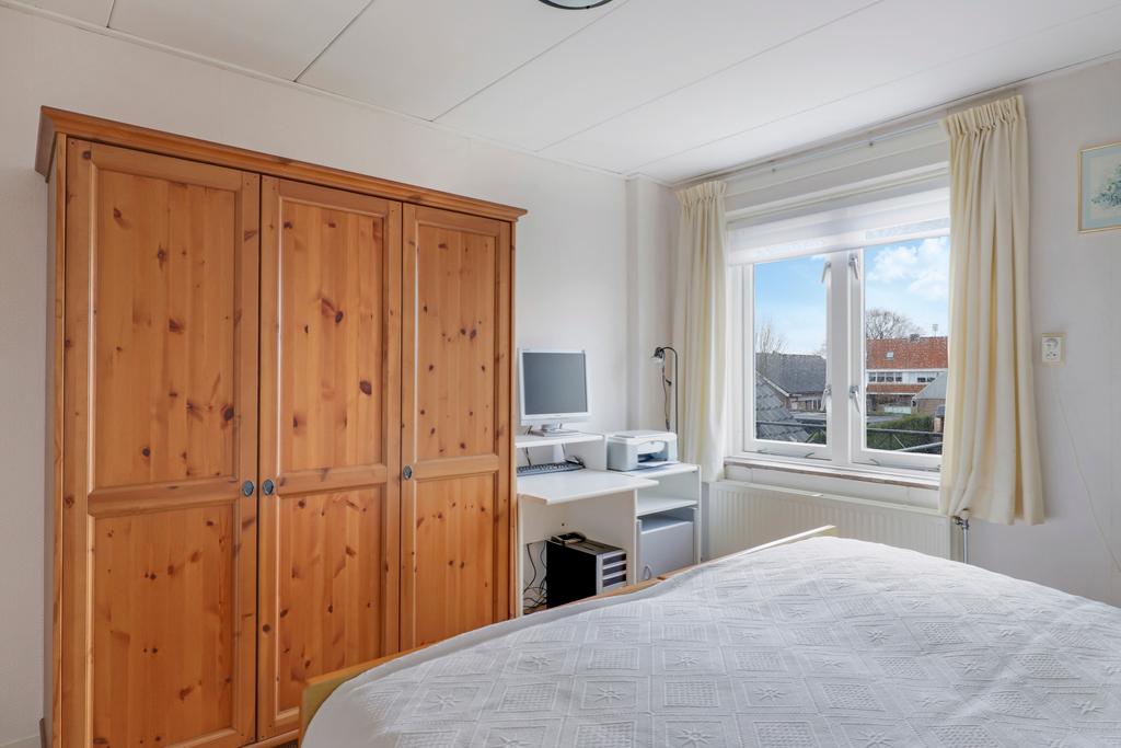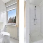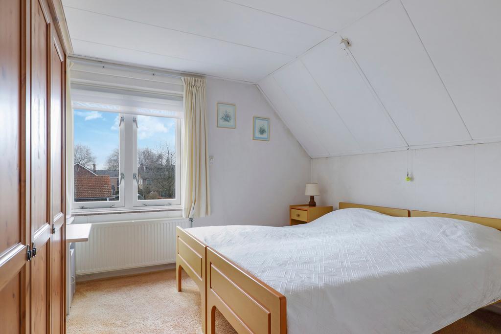 Via de trapopgang met glas-in-lood ramen komen we op de 1e verdieping terecht. De overloop geeft toegang tot 3 slaapkamers en de badkamer. Een luik met vlizotrap maakt de zoldervliering toegankelijk. De slaapkamers zijn allen volwaardig te noemen en zijn respectievelijk 14m2, 13m2 en 11m2 groot. Doordat het schuine dak pas op 1,5 meter hoogte begint, is er nauwelijks ruimteverlies. Elke kamer heeft bovendien een eigen inbouwkast. Noemenswaardig zijn de kozijnen die in 2020 zijn vervangen door hardhouten ramen met HR++ beglazing. Zo ook de dubbele deuren naar het dakterras aan de achterzijde. Ook de plafonds zijn vervangen door gipsplafonds met isolatie.