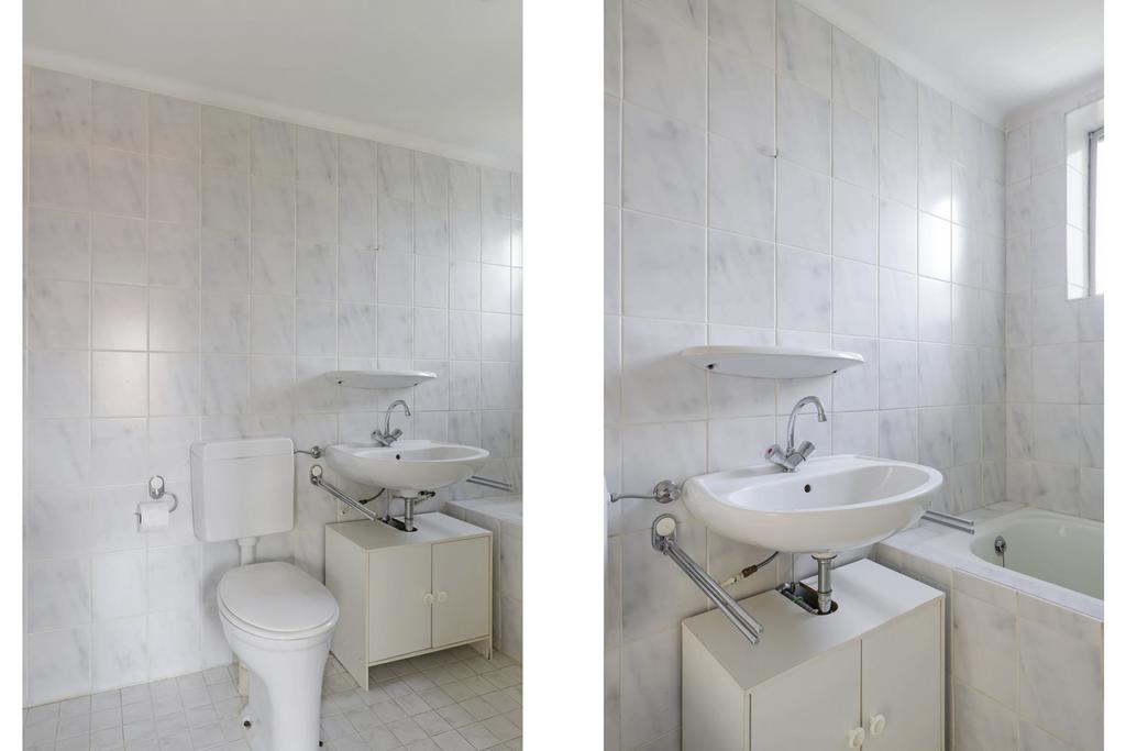 Voor de jaren ’60 had deze woning al een luxere en grotere badkamer dan gemiddeld voor die tijd. Een ligbad was voor die tijd uitzonderlijk. Door de van oorsprong ruimere opzet, heeft de badkamer een prima formaat met o.a. een 2e toilet. Douchen kun je in bad en er is een wastafel aanwezig. Een raampje zorgt voor daglicht en een ideale ventilatiemogelijkheid. Mocht je een grotere badkamer wensen, dan zou je de slaapkamer ernaast erbij kunnen betrekken. Er is al een tussendeur aanwezig. Dit zou je eventueel kunnen combineren met het plaatsen van een vaste trap naar de 2e verdieping.