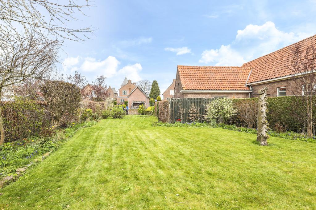 Met bijna 800m2 perceeloppervlak staat de woning op een mooie kavel waarbij het gunstig op het perceel staat. De voortuin zorgt voor een groene buffer met de straat, de oprit biedt een comfortabele parkeergelegenheid voor 2 auto’s en ook aan de linkerzijde van het huis is tuin bijna 5 meter breed. De meeste tuin ligt dus aan de achterzijde en met meer dan 35 meter diepte is het groter dan gemiddeld wanneer je midden in het dorp woont. Zeker wanneer je het afzet tegenover nieuwbouwkavels vandaag de dag.