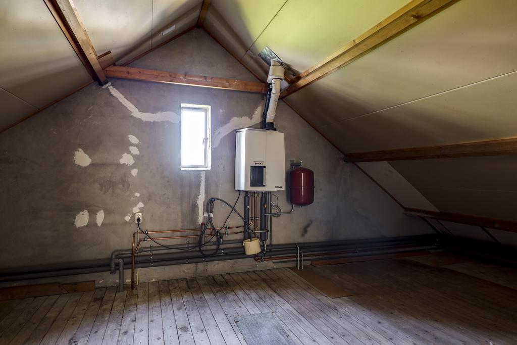 Aan de andere kant (achterzijde) is nóg een ruimte te vinden. Hier is de CV-ketel geplaatst.
