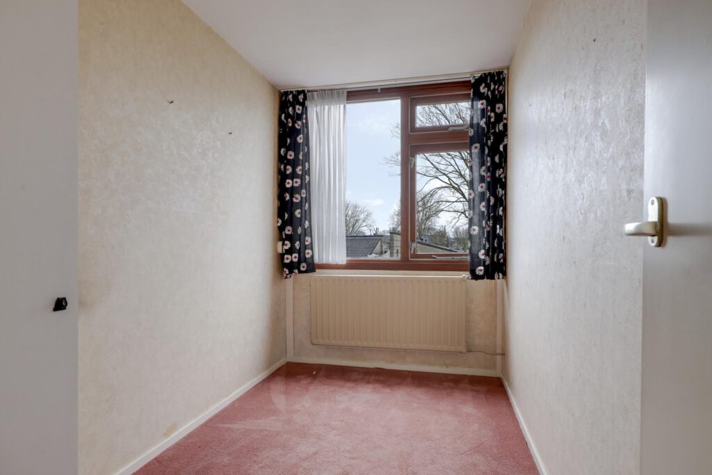 De badkamer is van de bouwperiode en wat gedateerd. Echter heb je hier wel een goede ruimte om een mooie badkamer te maken. De wasmachine kan naar zolder worden verplaatst waardoor je deze niet op de badkamer kwijt hoeft. Hierdoor ontstaat er ook ruimte voor een 2e toilet. Verder is de ruimte goed in te richten met een inloopdouche en een wastafelmeubel. Hooggeplaatste ramen bieden een fijne lichtinval zonder inkijk en een ventilatiemogelijkheid.