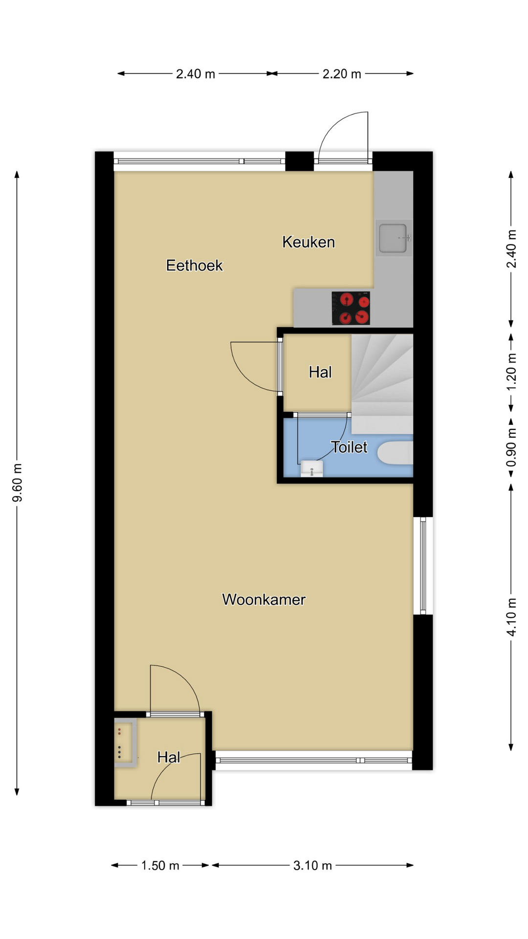 2e hal met toiletruimte, bergruimte en trapopgang naar de 1e verdieping