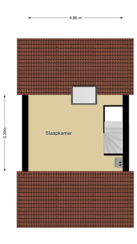 De 2e verdieping betreft in de huidige situatie een open, multifunctionele ruimte. Een groot dakraam biedt hier een fijne lichtinval. Je zal hier ook een 4e slaapkamer kunnen creëren, eventueel in combinatie met een dakkapel. Naast de trapopgang tref je tevens de opstelling van de cv-ketel aan.