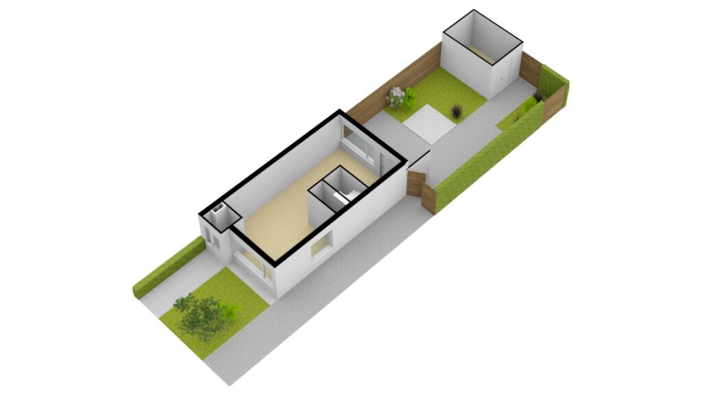 De woning heeft een fijne hoekligging met een gedeelde oprit naast de woning. De achtertuin is verzorgd aangelegd met onder meer een houten schuur. De ligging van de tuin is gunstig, namelijk pal op het zuiden.