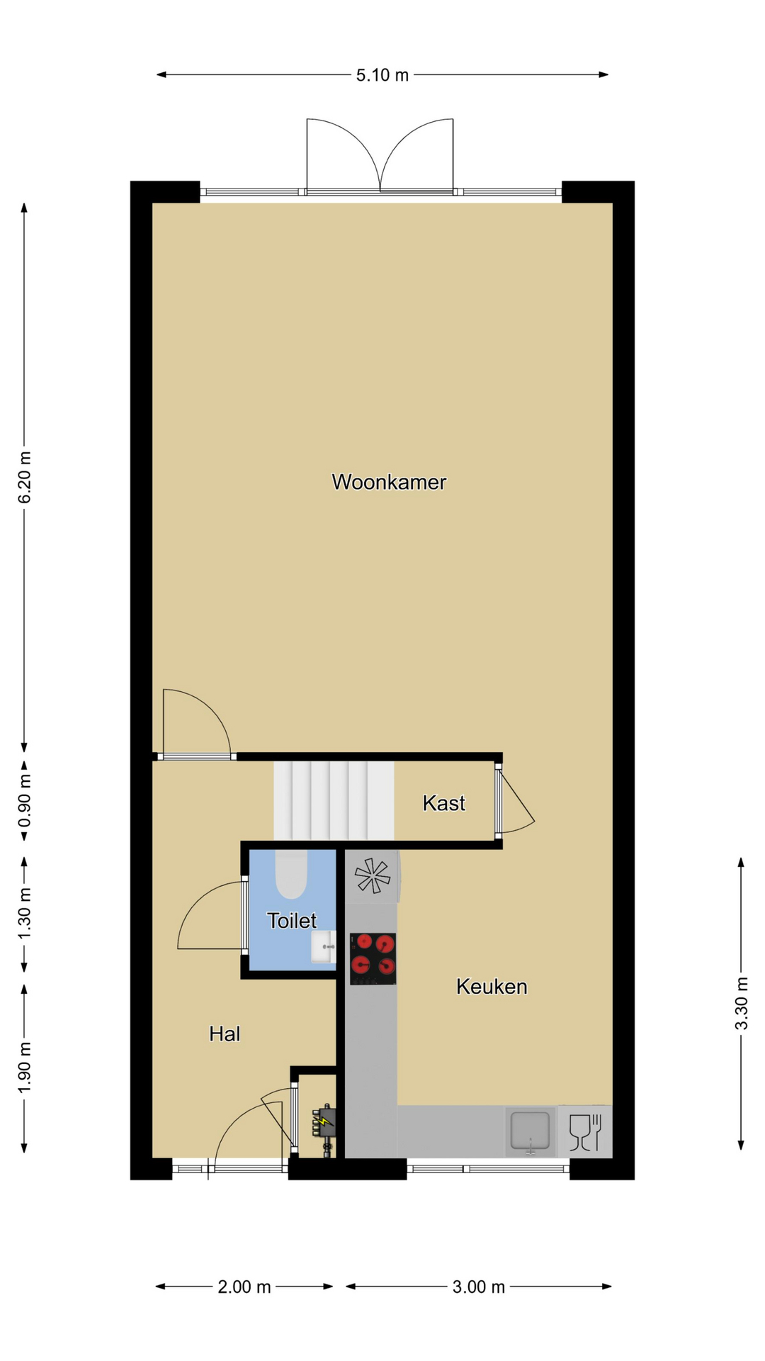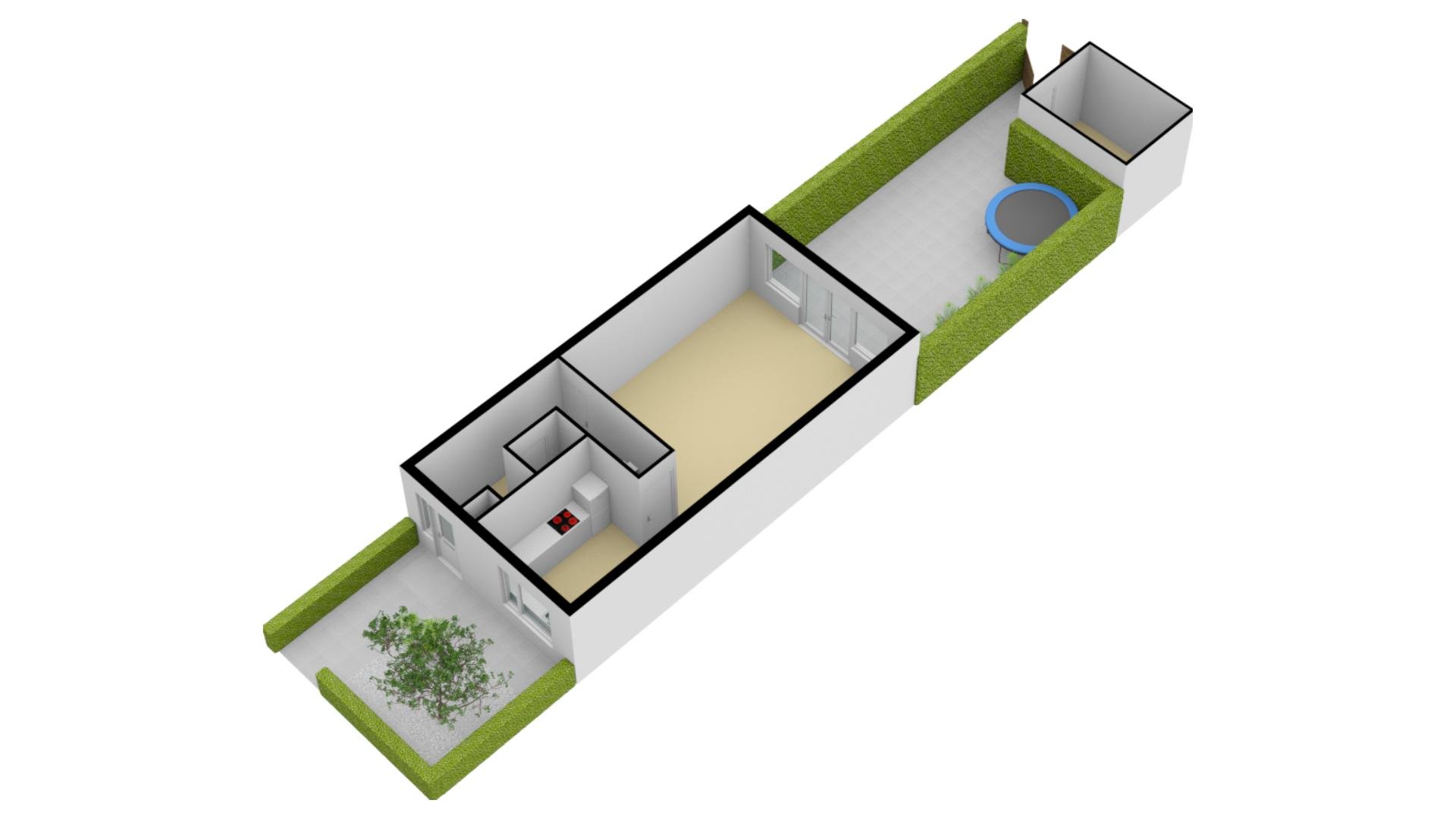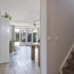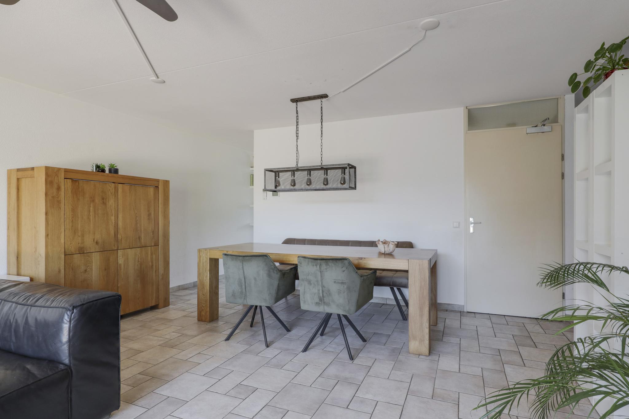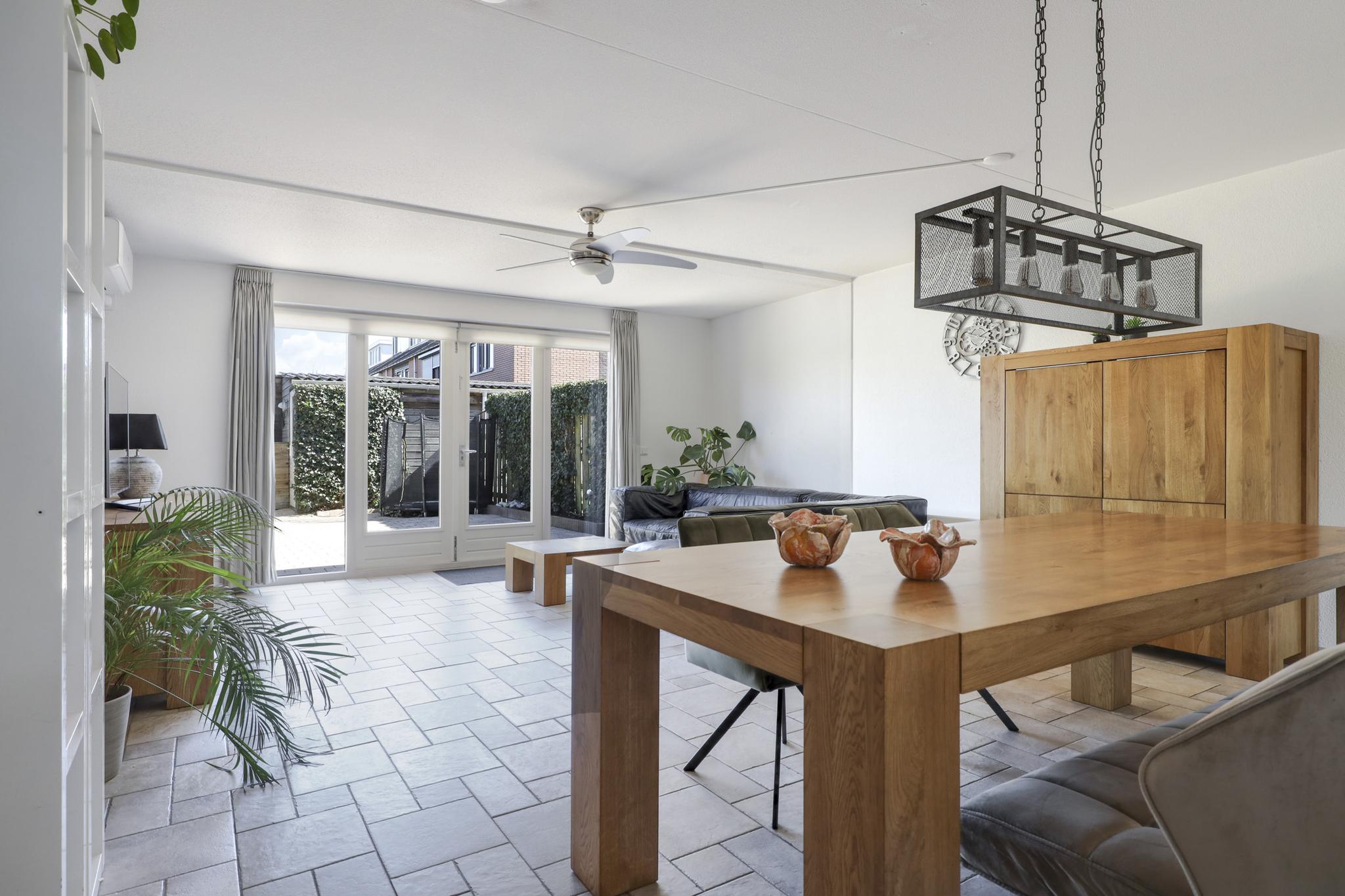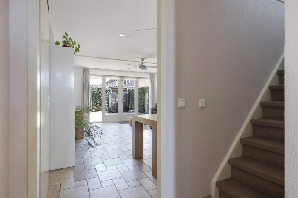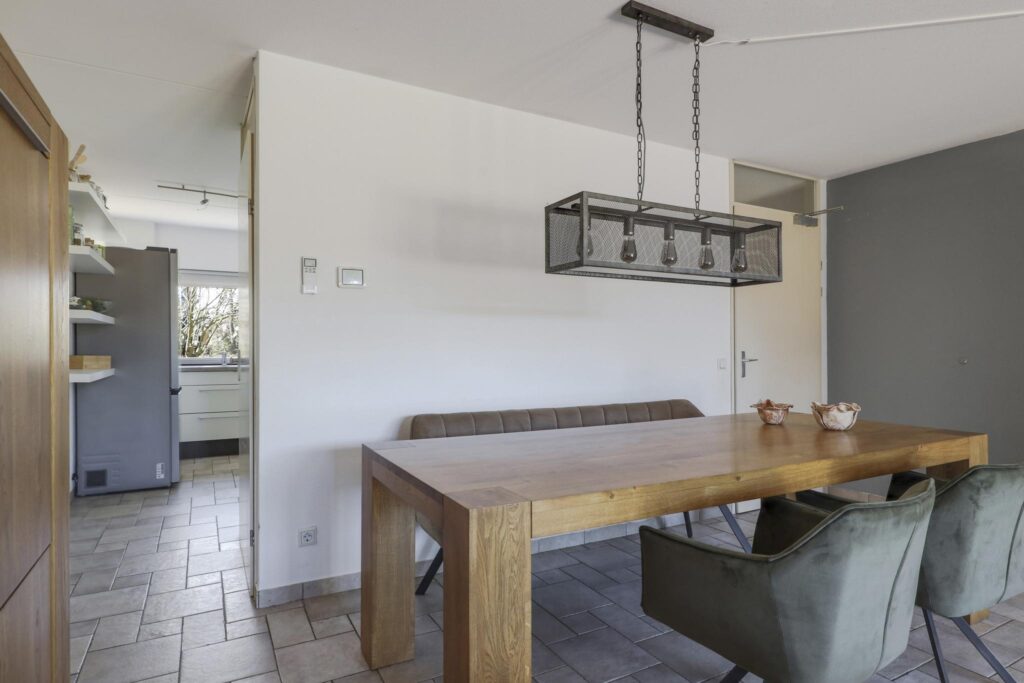Door de aanbouw is de woonkamer dus groter dan gemiddeld (ca. 32m2). Dit ruimtelijke gevoel wordt verder versterkt door de tuingerichte raampartij die doorloopt tot aan de vloer. Bovendien is de tuin eenvoudig bij de woonkamer te betrekken door op een zomerse dag lekker de openslaande deuren open te zetten. Deze achtergevelpui is overigens volledig af te sluiten met een elektrisch bedienbaar rolluik. De vloer is voorzien van lichte plavuizen, maar mocht je toch wat anders willen, dan zou je bijvoorbeeld kunnen kiezen voor een trendy PVC-vloer (i.c.m. egalisatie).