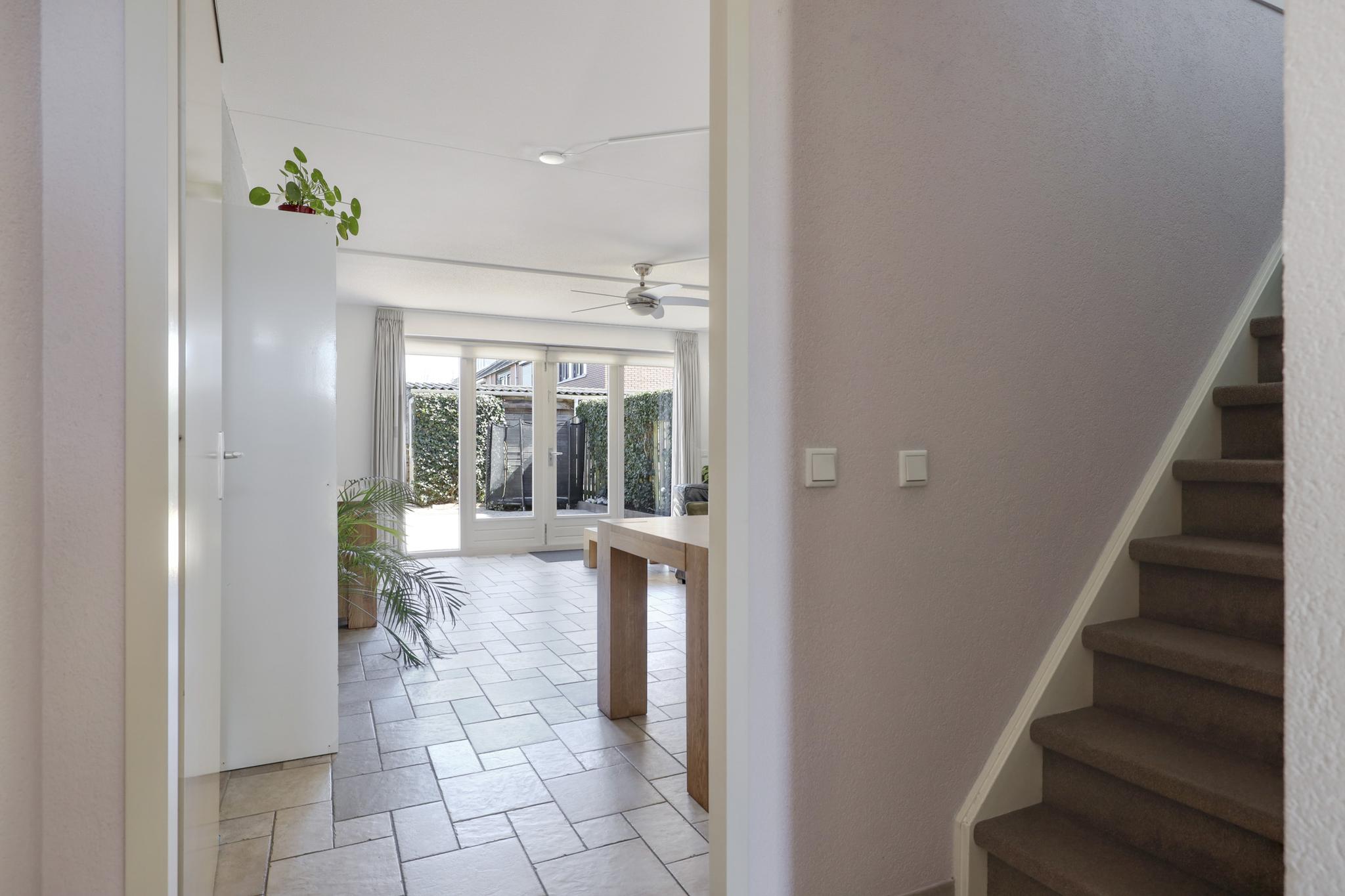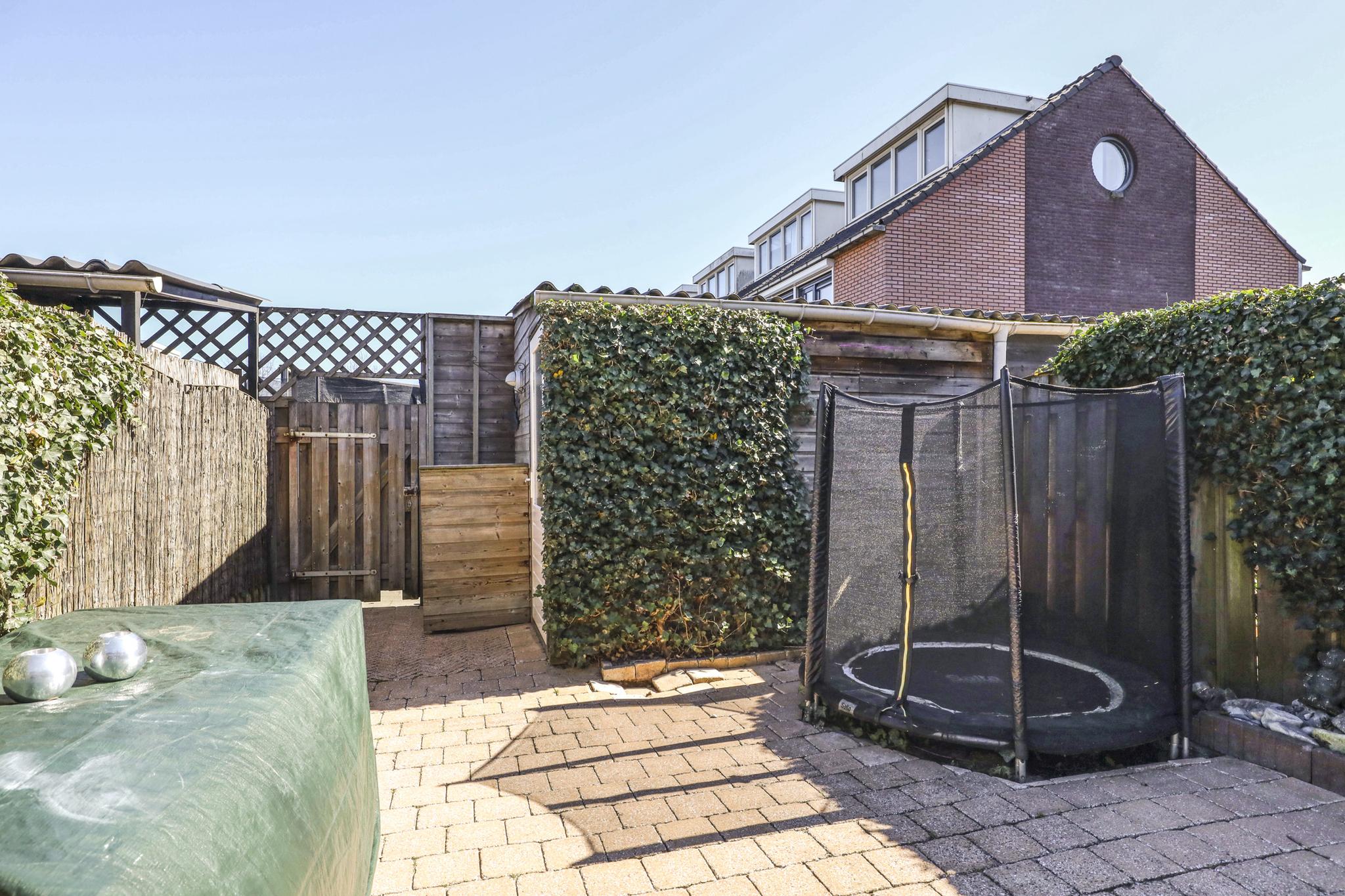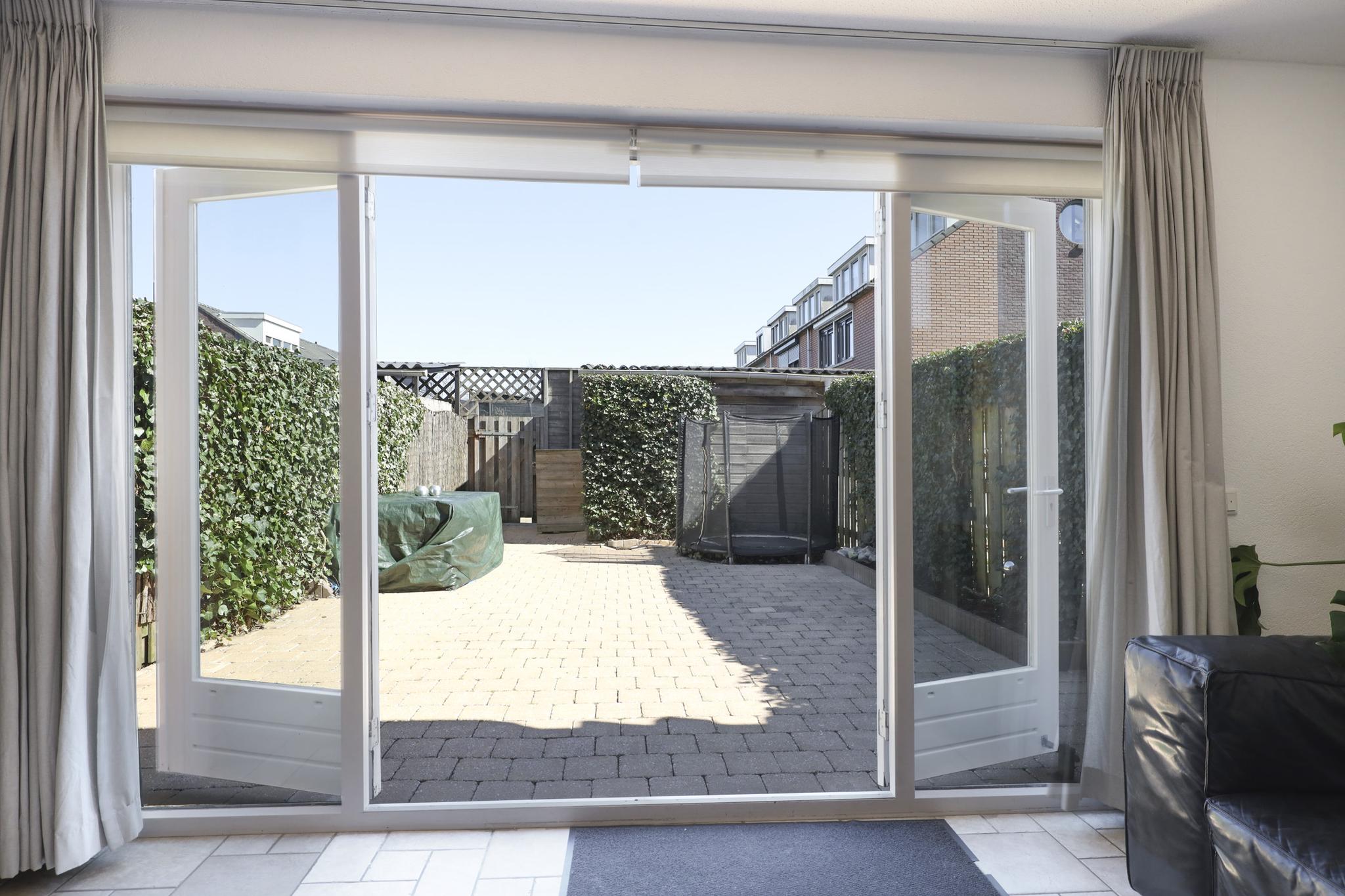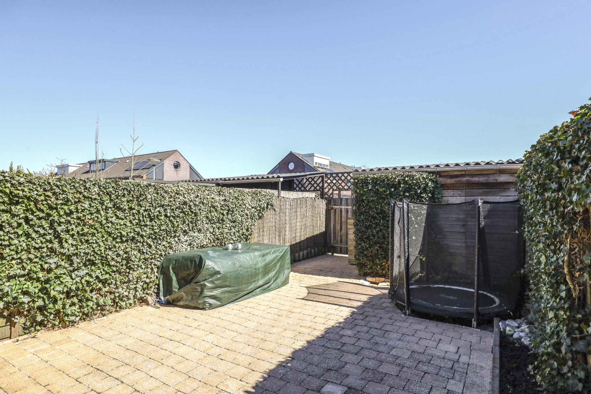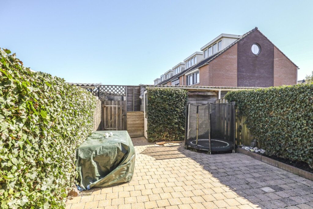 Er heerst een prettige sfeer in de achtertuin. De tuin is verzorgd aangelegd met keurige bestrating en diverse beplantingen. De balans is goed en de tuin is nagenoeg onderhoudsvrij. Doordat er geen rijwoningen parallel achter deze woning zijn gelegen, is er veel ‘lucht’ en weinig inkijk. De tuin ligt op het oosten, maar geniet de gehele dag zon. Om de zon enigszins uit de woning te kunnen weren, is er over de volle breedte zonwering en een rolluik aanwezig (beiden elektrisch te bedienen).