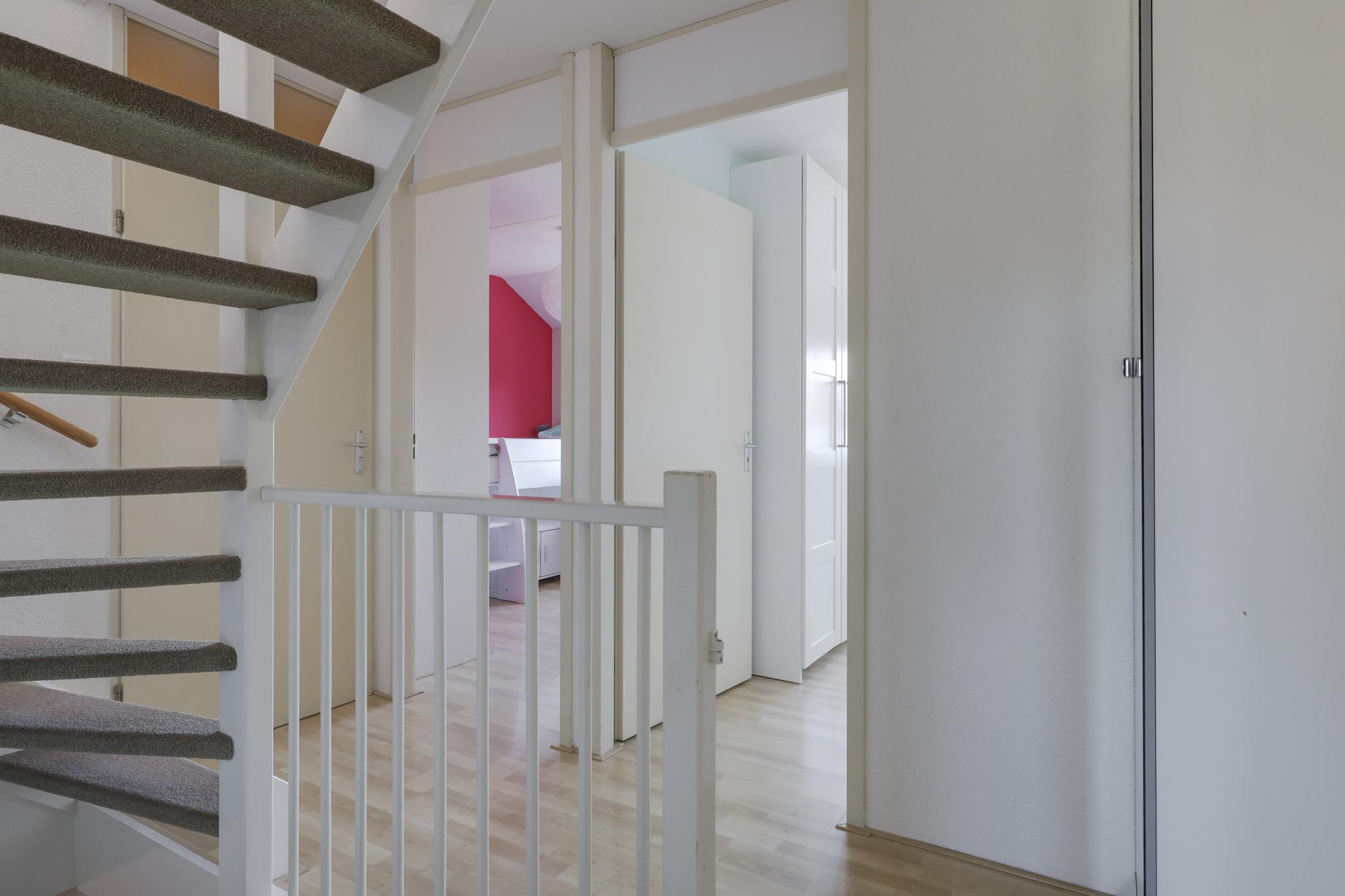 Via een rechte steektrap komen we op de 1e verdieping terecht alwaar een ruime overloop toegang verleent tot de 3 slaapkamers en de badkamer. Hetzelfde hoogwaardige afwerkingsniveau van de begane grond komen we ook hier op de slaapverdieping weer tegen. Ook hier zijn de wanden (deels) gespachteld en de vloer is v.v. een doorlopende laminaatvloer.