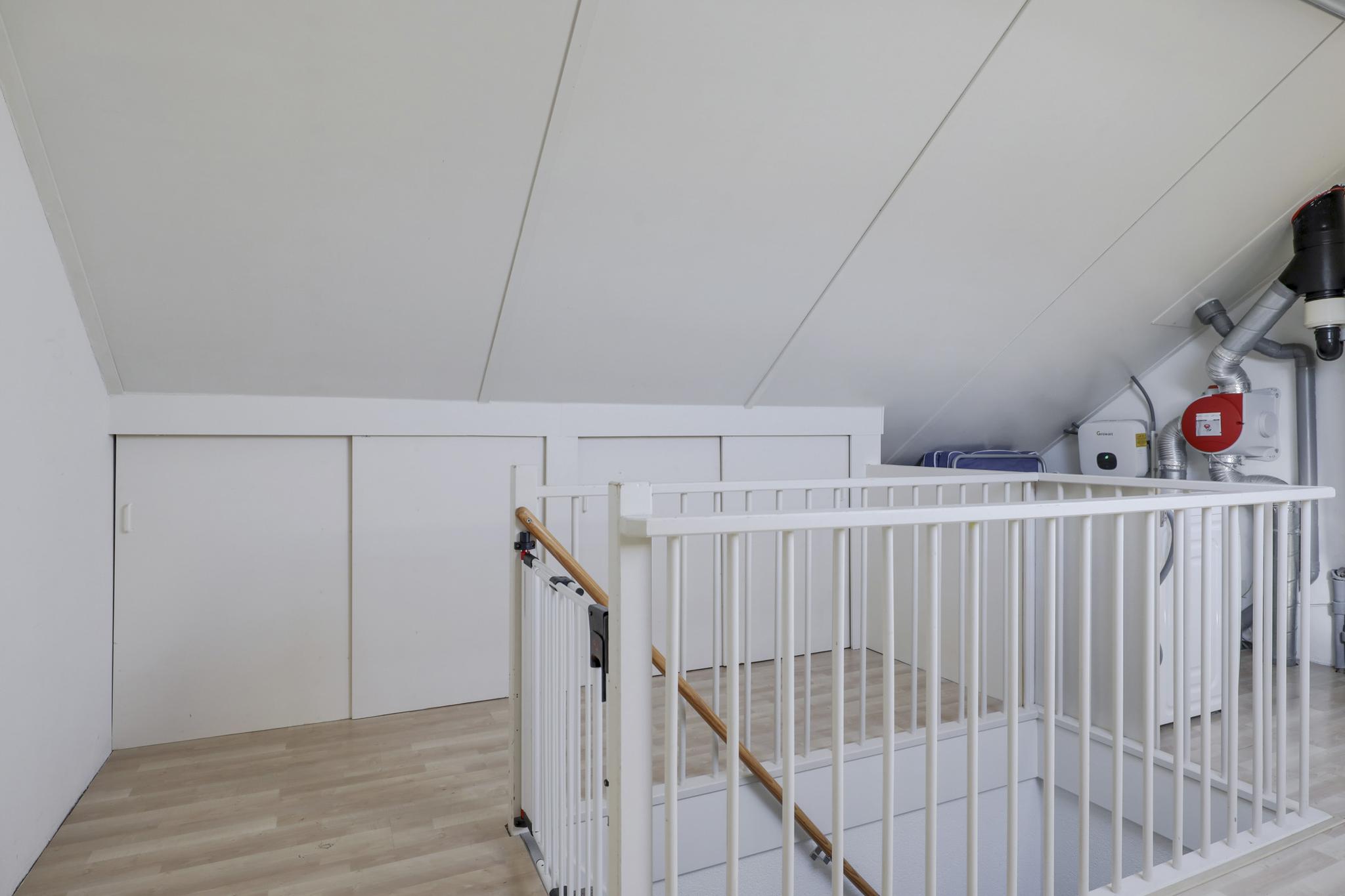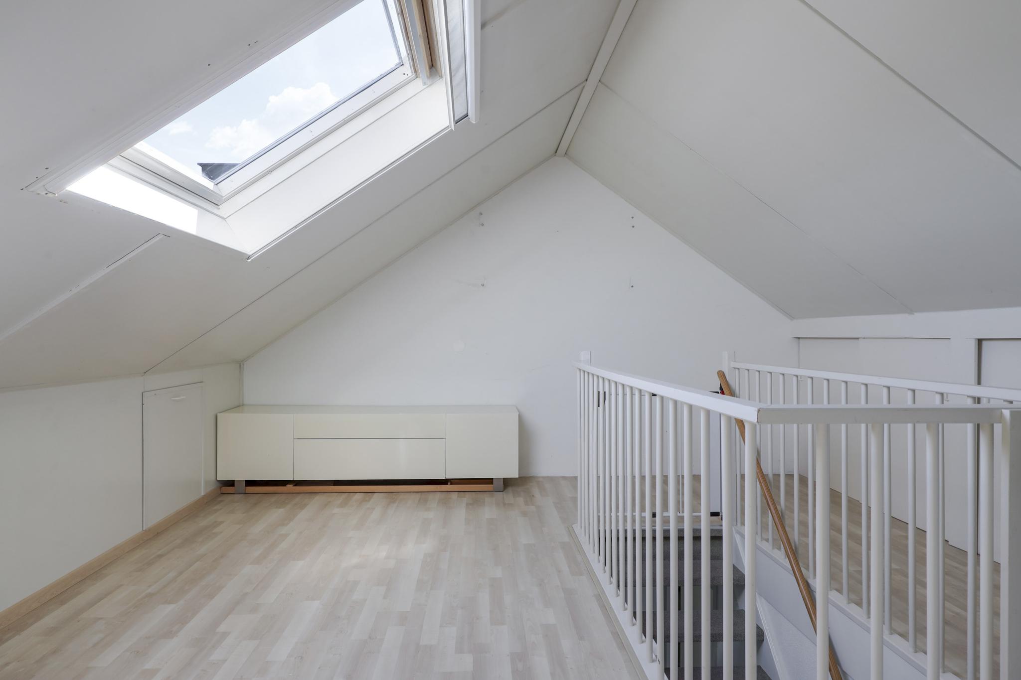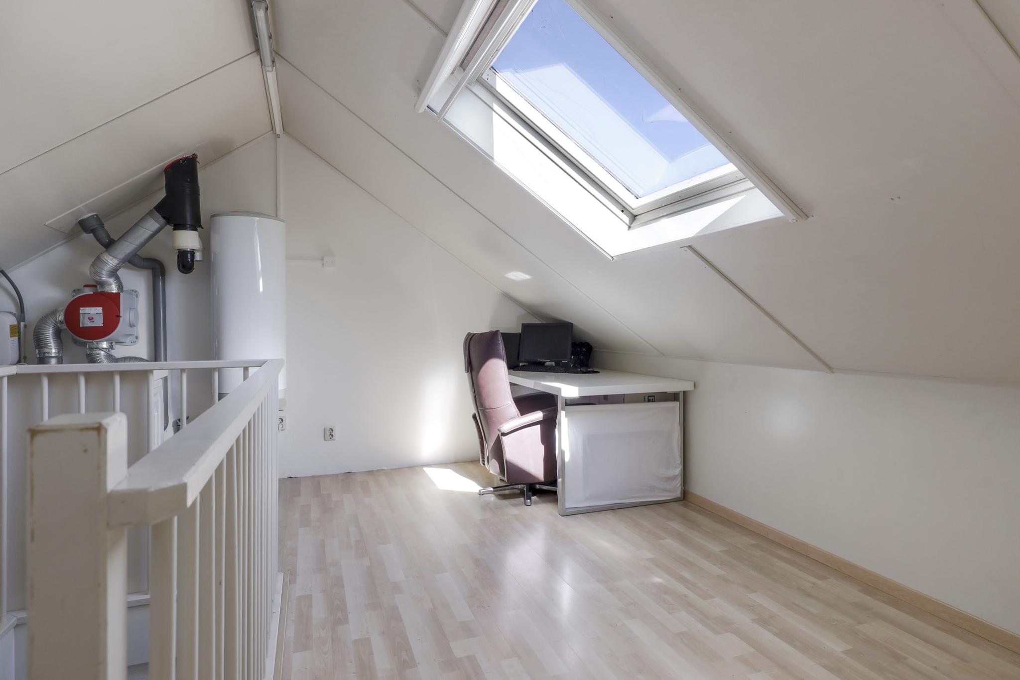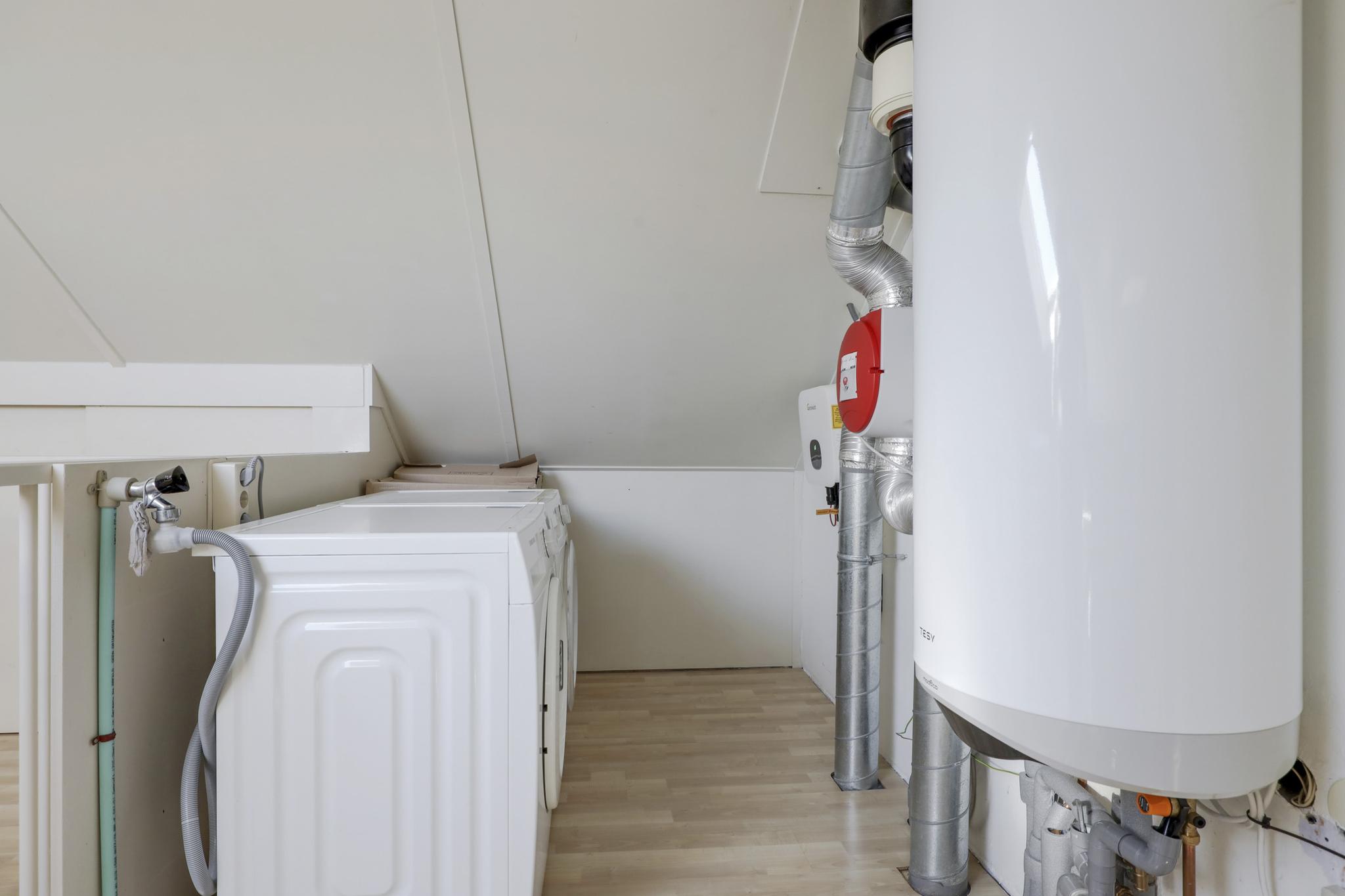 De 2e verdieping betreft één open ruimte waarbij een groot Velux-dakvenster (v.v. rolhor) voor daglicht zorgt. De ruimte is voor allerlei doeleinden in te delen, bijvoorbeeld als hobbyruimte of als werkhoek met een bureau. Er is een washoek gecreëerd met zowel een wasmachine- en wasdroger opstelling naast elkaar. Hier vinden we tevens de warm water boiler en de MV-unit (2014) terug. Om spullen te kunnen opbergen zijn er knieschotten aangebracht. Mocht je voorkeur uitgaan naar een extra slaapkamer, dan zou je een tussenwand kunnen plaatsen. Ook het plaatsen van een dakkapel behoort tot de mogelijkheden.
