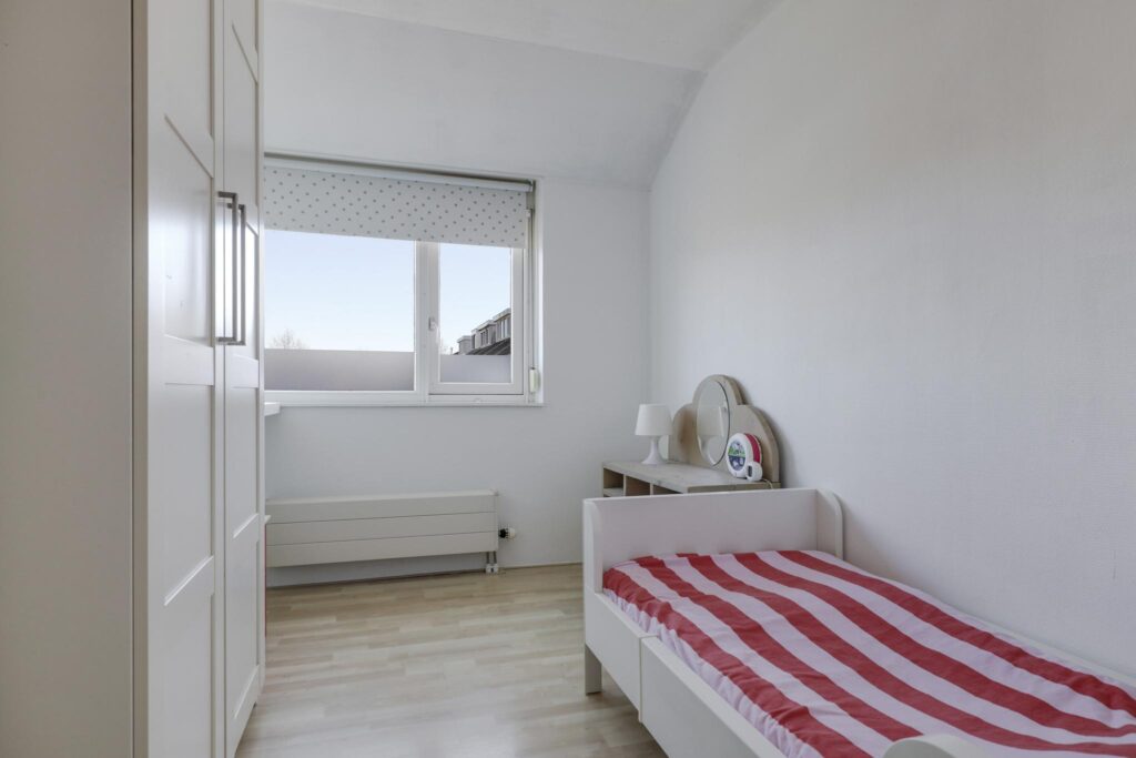 De hoofdslaapkamer is over de volle breedte van de woning gelegen en geeft een ruimtelijk en prettig gevoel. De overige 2 slaapkamers zijn bijna identiek aan elkaar en zijn prima kinderkamers. Erg praktisch zijn de aanwezige rolluiken waardoor de kamers volledig te verduisteren zijn. De grootste op de ouderslaapkamer is elektrisch bedienbaar. En om het af te maken zijn de openslaande ramen v.v. rolhorren, waardoor er geen ongewenste insecten naar binnen kunnen vliegen.