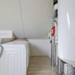 Open ruimte met dakvenster, washoek, elektrische boiler en knieschot bergruimte.