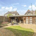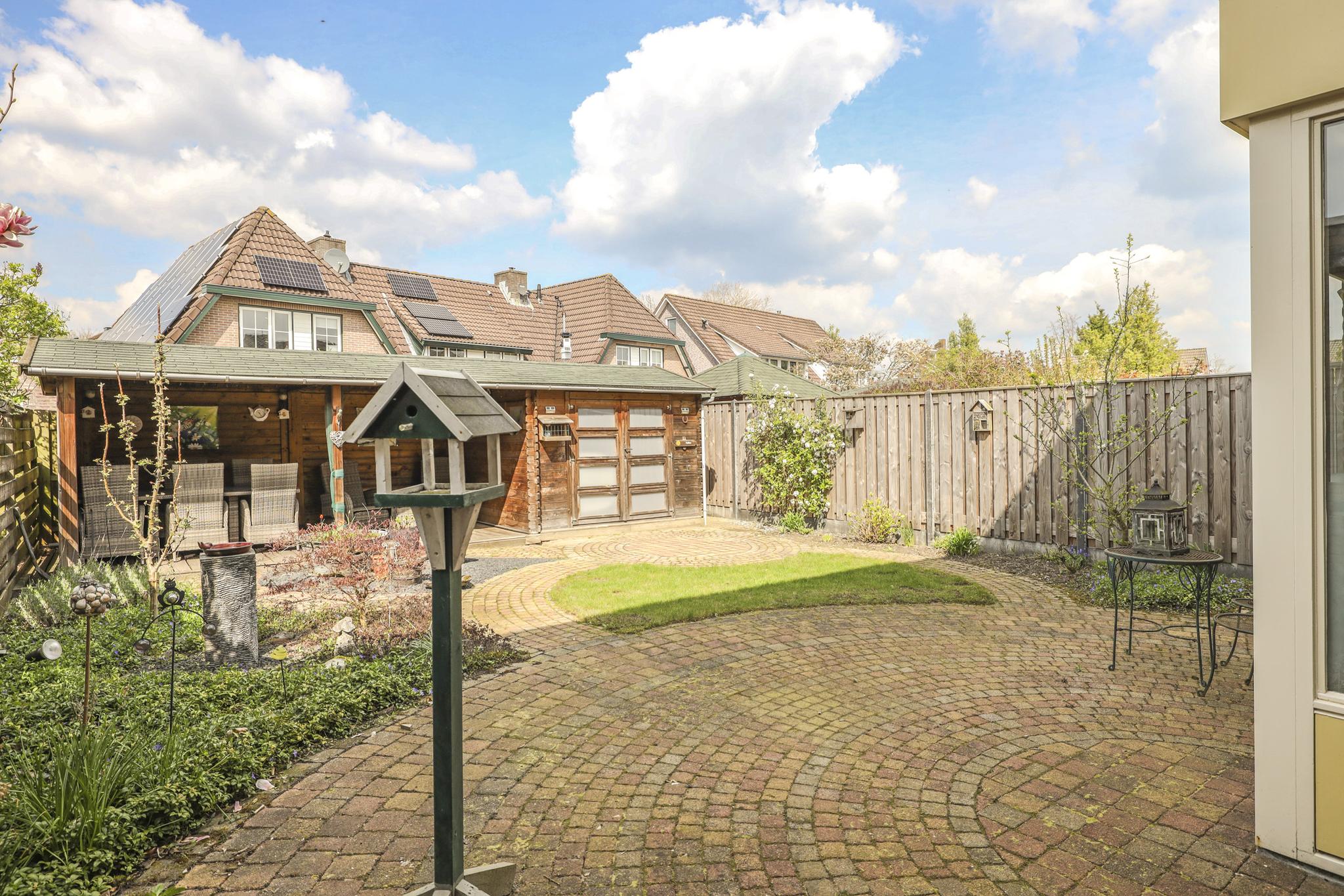 Naast de woning is de garage gelegen. Erg praktisch is dat de garage via de bijkeuken ook binnendoor bereikbaar is. Aan de voorzijde geven openslaande deuren toegang tot de oprit. Achterin is een wastafel geplaatst. Een korte carport voor de garage zorgt dat je bij de voordeur en de garage droog kunt staan. De oprit is bijna 9 meter diep waardoor je met gemak de auto op eigen terrein kunt parkeren. En mocht het niet voldoende zijn, dan is er ook vaak nog wel een plek op de straat voor de woning.