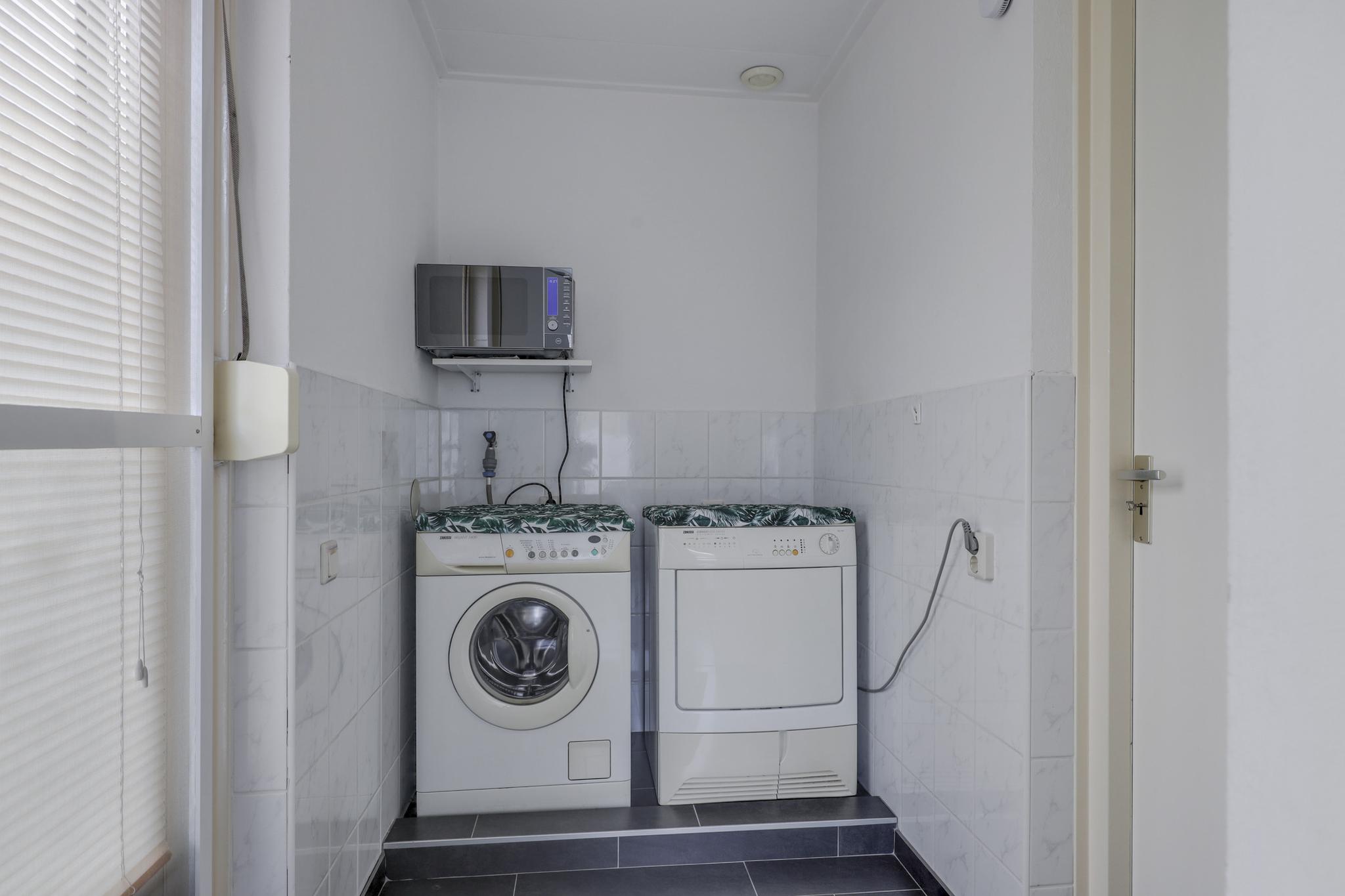 Aansluitend aan de keuken is de buikeuken te vinden. De ruimte heeft tevens een toegang naar de achtertuin én de garage. In de bijkeuken tref je de witgoedaansluitingen aan. Wanneer je de wasdroger boven de wasmachine plaats kan je hier eventueel nog een extra koel-/vriescombinatie kwijt.