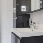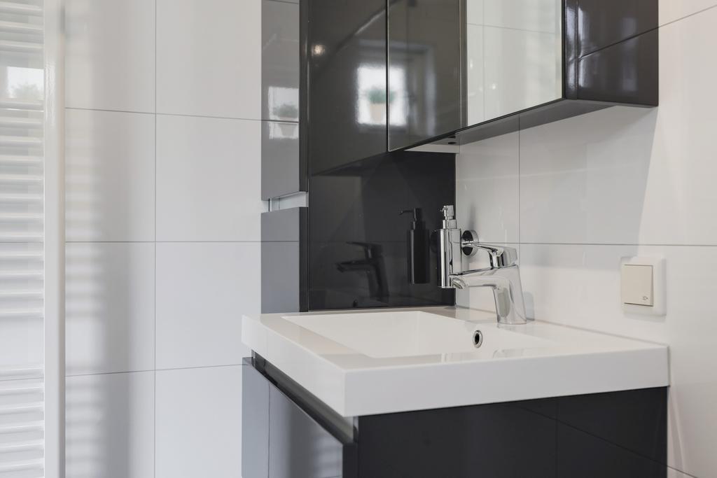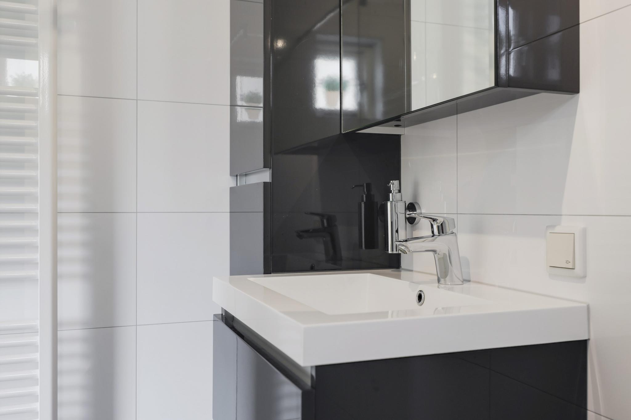 Net als de keuken is ook de badkamer 5 jaar geleden onder handen genomen. De ruimte is geheel gemoderniseerd en voorzien van een verzorgde, neutrale uitstraling. De combinatie tussen grote witte wandtegels en antracietkleurige vloertegels is tijdloos. De badkamer is ingericht met een inloopdouche met glazen wand en drainafvoer, een 2e toilet (zwevend) en een wastafelmeubel met spiegelkast én toiletkast. Uiteraard ontbreekt ook de handdoekradiator niet. Ventileren is mogelijk middels het raam of de mechanische ventilatie.