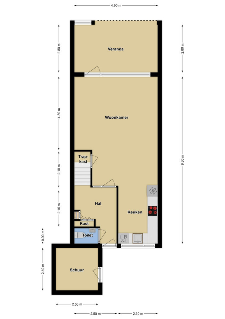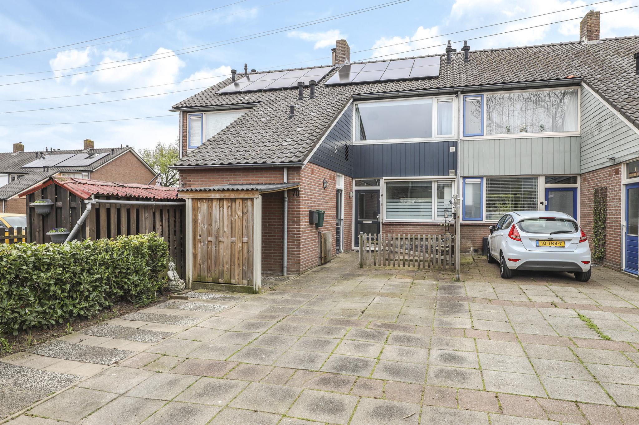 Deze woning heeft een voortuin welke veel dieper is dan gemiddeld. Dit maakt dat je hier 2 auto’s op eigen terrein kunt parkeren. Zo hoef je nooit te zoeken naar een plekje als je ’s avonds thuiskomt. Ook is aan de woning een ruime stenen schuur te vinden waar je bijvoorbeeld de fietsen of scooter kunt stallen.