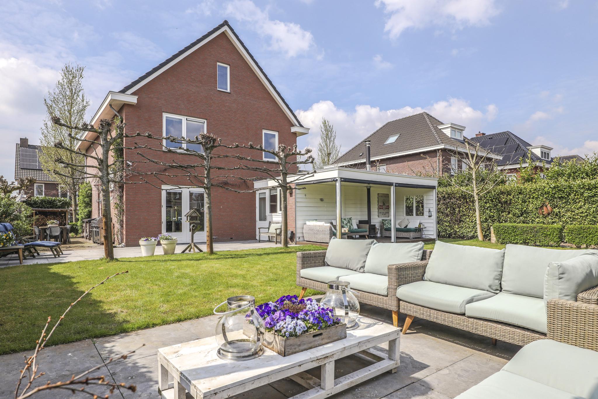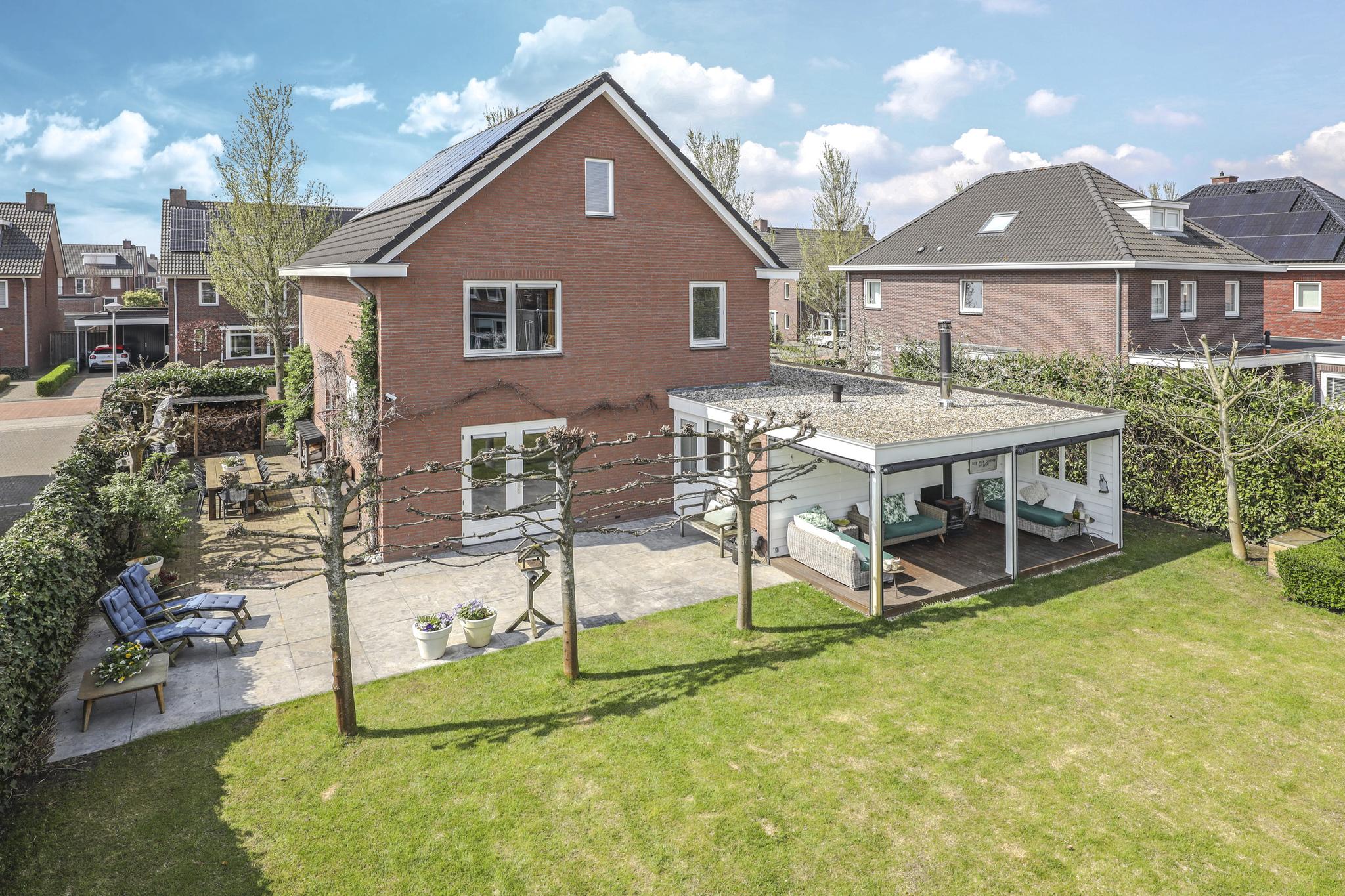 Het perceel heeft een mooie (breedte)maat waarbij de woning gunstig op de kavel staat. De tuin is rondom gesitueerd, waarbij de achtertuin ca. 15 meter diep is en bijna 20 meter breed en geniet veel zonuren. Er zijn dan ook meerdere terrassen aangelegd. Achter de woning is een heerlijke (afsluitbare) veranda aangebouwd. Groenvoorzieningen rondom zorgen voor de nodige privacy, waaronder meerdere (fruit)bomen. Aan de voorzijde is een comfortabele oprit gelegen waar je met gemak 3 auto’s (2 naast elkaar) op eigen terrein kunt parkeren. Voor de garage en bij de voordeur is een luifel/carport gebouwd.