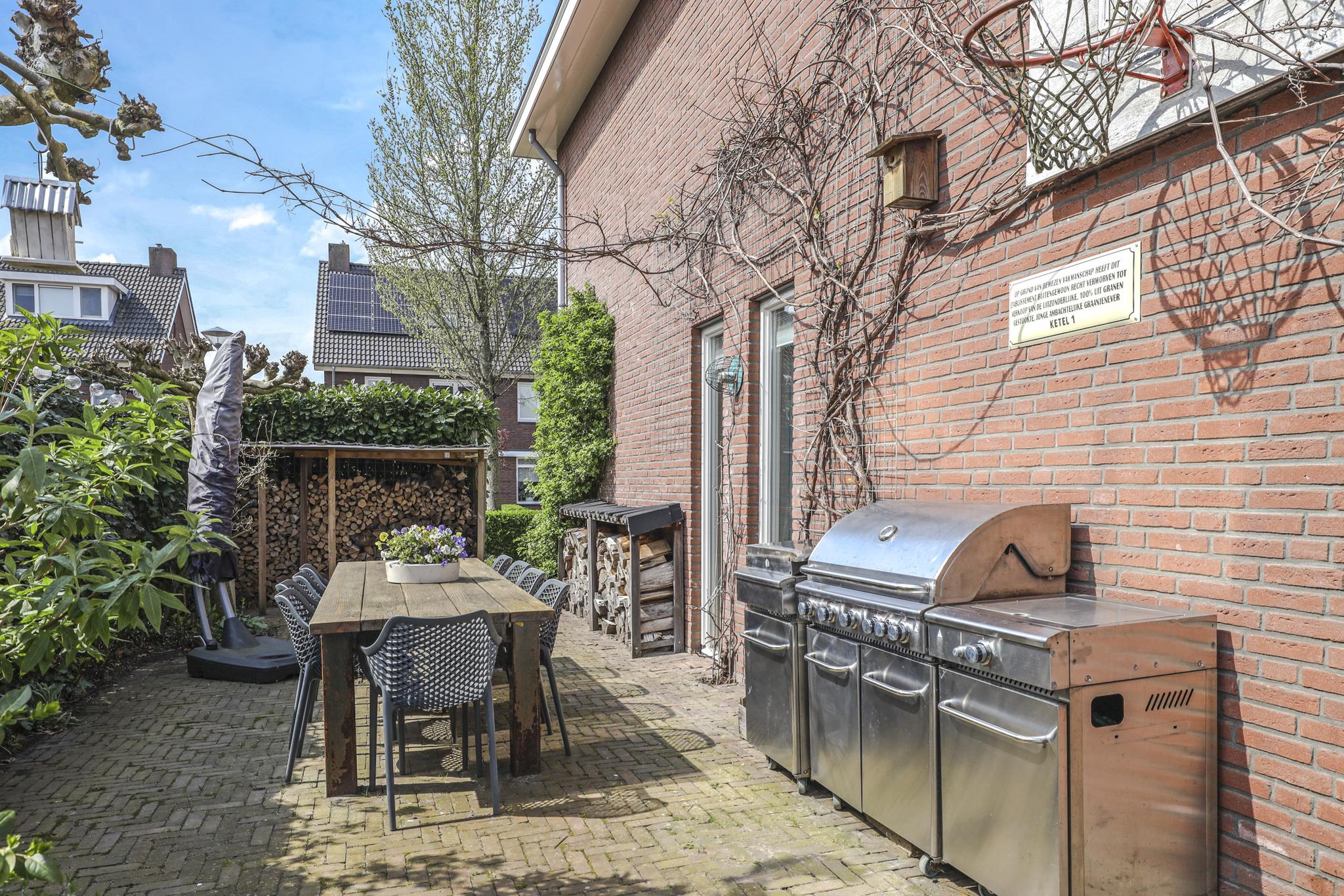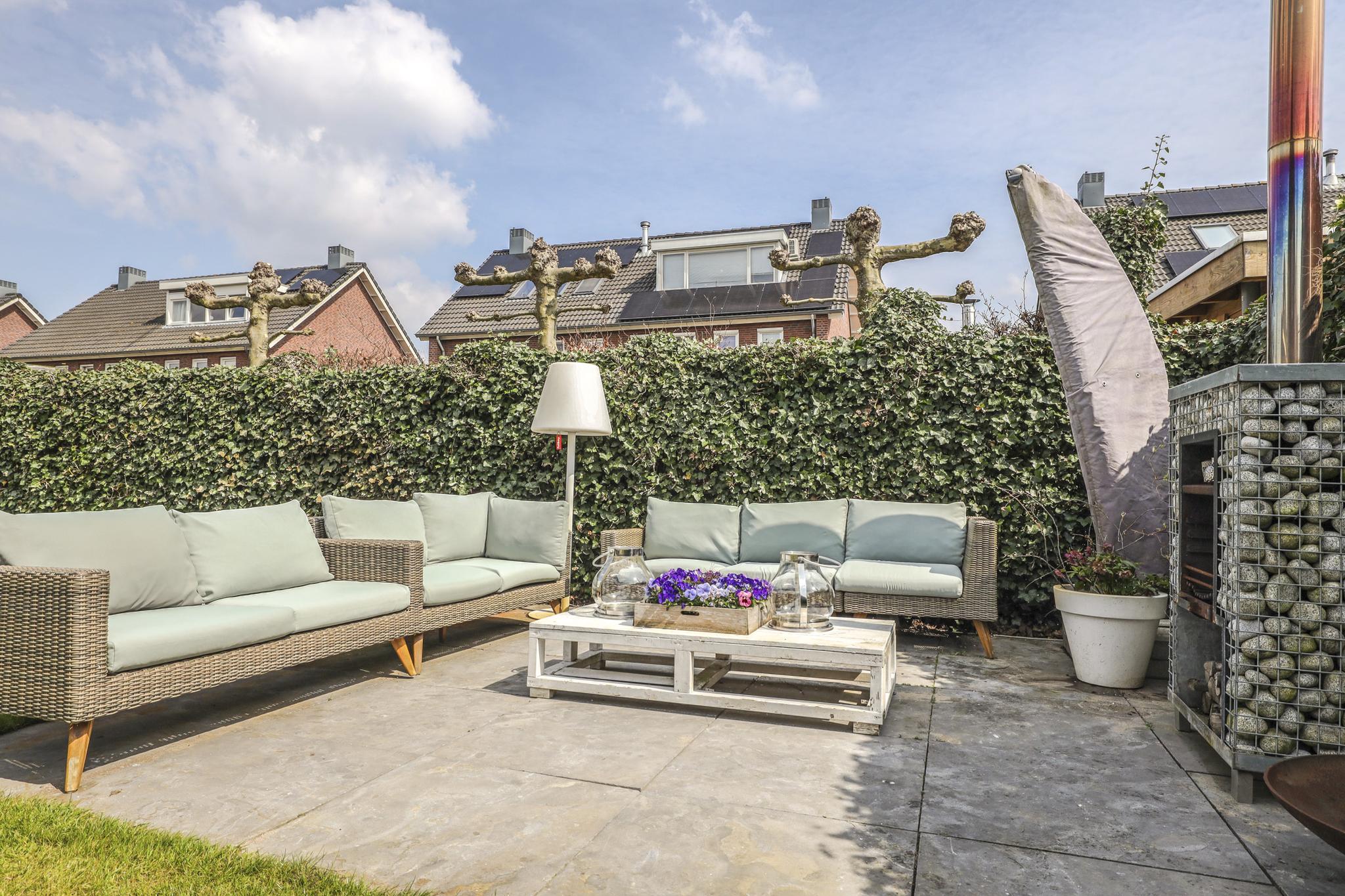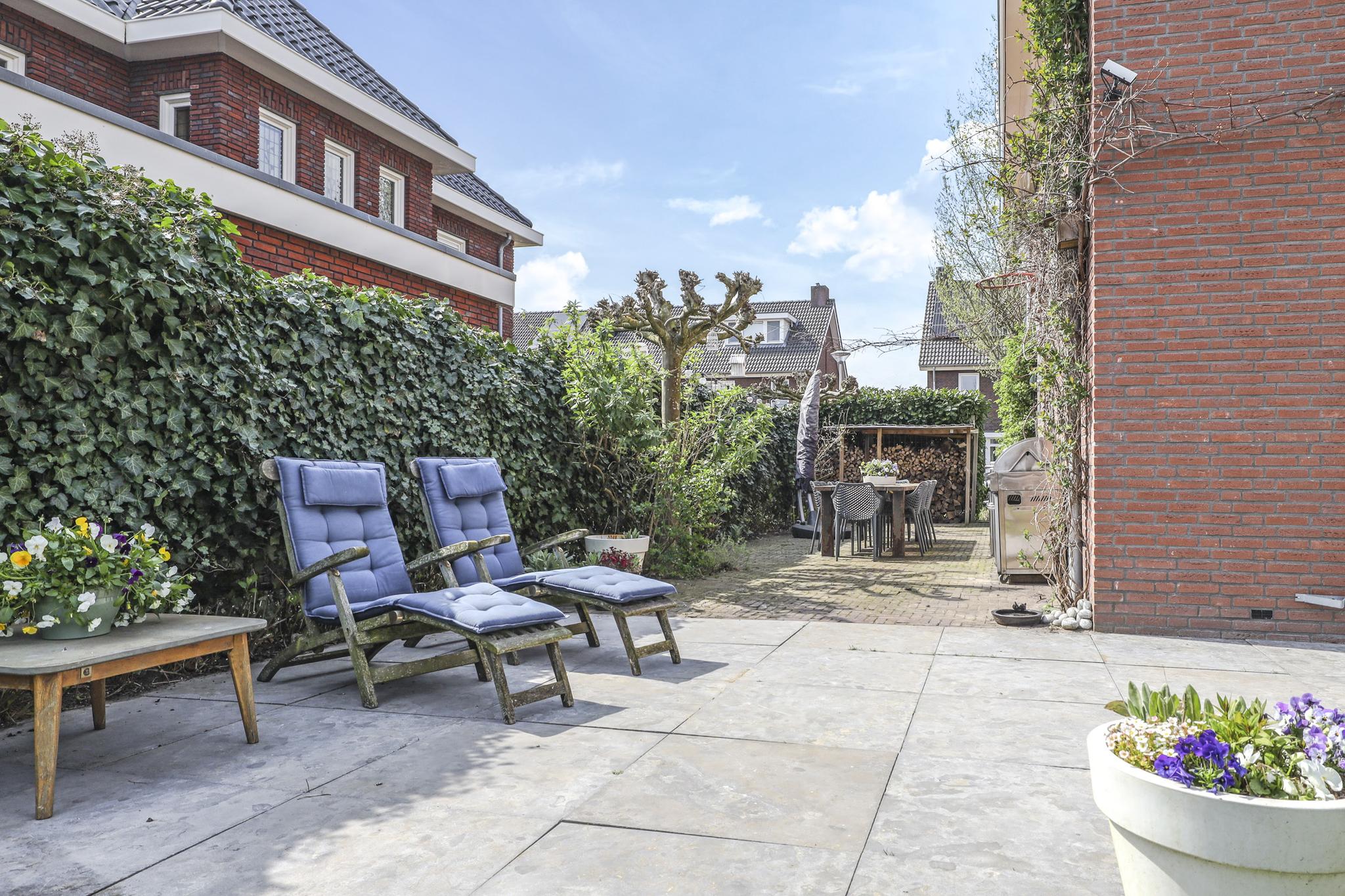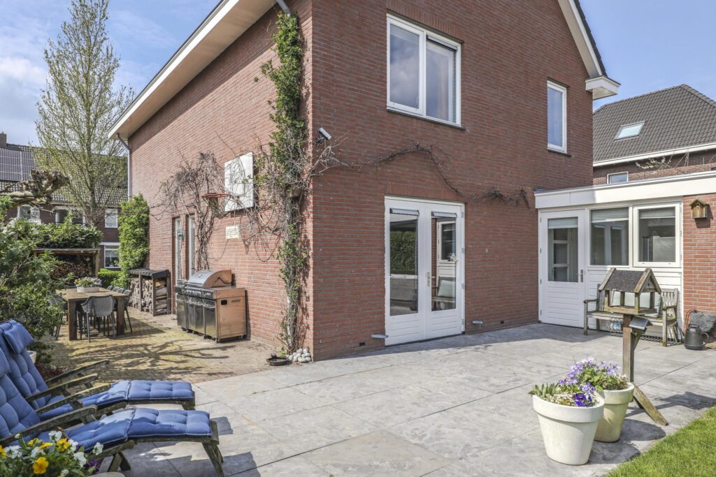 Opvallend is dat er meerdere terrassen in de achtertuin zijn aangelegd. Hierdoor is er altijd wel een plekje in de zon (of de schaduw)te vinden. Allereerst het grote terras bij de achtergevel en terrasdeuren. Dit terras is aangelegd met groot formaat leisteentegels. Ga je rechts de hoek om, dan vind je daar een privacyvol terras waar je zomers in de avondzon kunt eten. Het 3e terras ligt juist weer achterin waar je weer een hele andere beleving hebt.