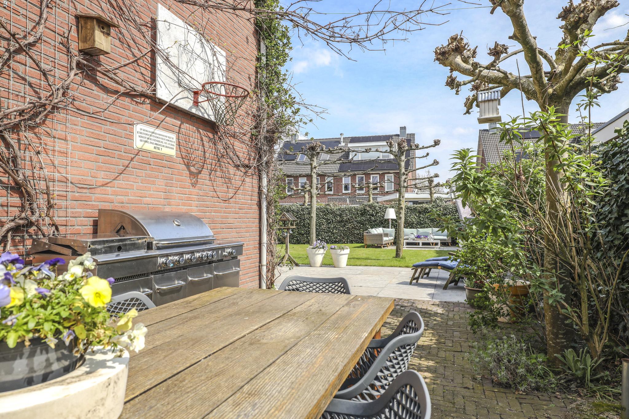 De achtertuin heeft een mooi formaat en biedt veel ruimte en mogelijkheden. Ben je een tuinliefhebber, dan zal je deze tuin zeker aanspreken. Op het grasveld kunnen kinderen naar hartenlust spelen en is er plek voor meerdere speeltoestellen. Links achterin de hoek is een moestuin aangelegd voor diegenen die eigen groente en fruit willen verbouwen. Door de grootte van de achtertuin (ca. 15m bij bijna 20m) valt deze moestuin bijna niet op.