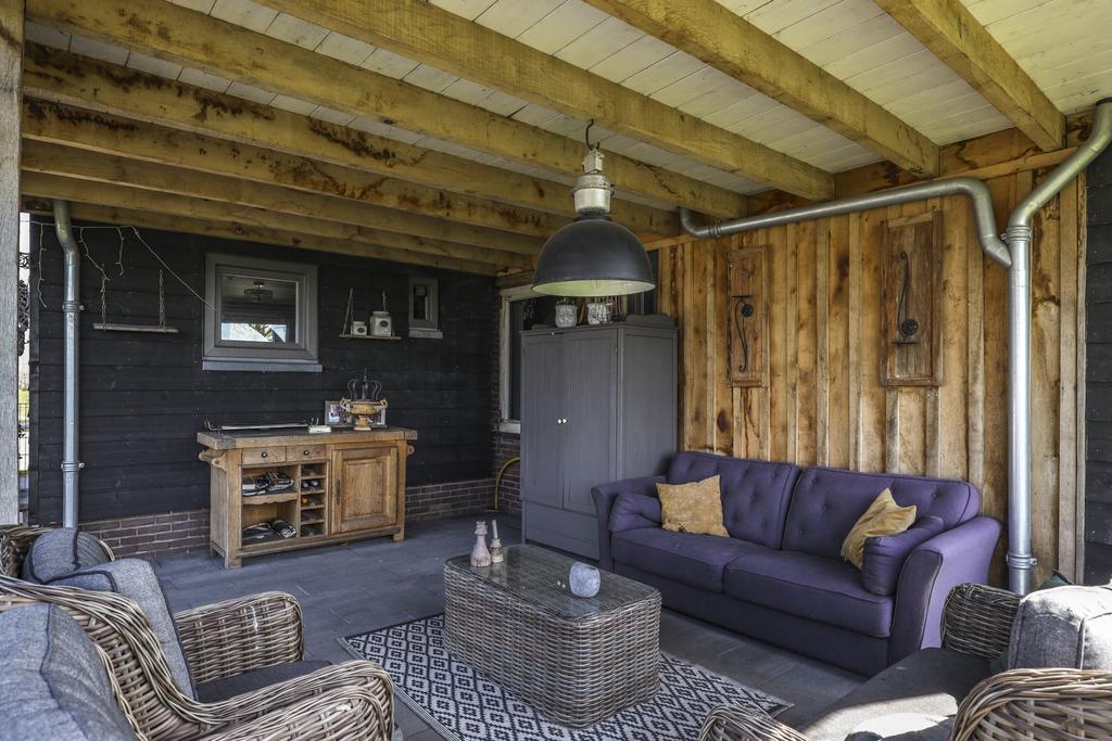 Grenzend aan de woning is een heerlijk zonneterras op het zuiden aangelegd. Bij het terras behoort een stijlvolle, houten veranda waarvoor eikenhouten balken zijn gebruikt, hier kun je al heel vroeg in het jaar genieten van het prachtige buitenleven en de eerste zonnestralen. De woning is middels een eigen oprit te bereiken, waar voldoende parkeermogelijkheden zijn voor diverse voertuigen. Dit geheel is volledig verhard door middel van asfalt.