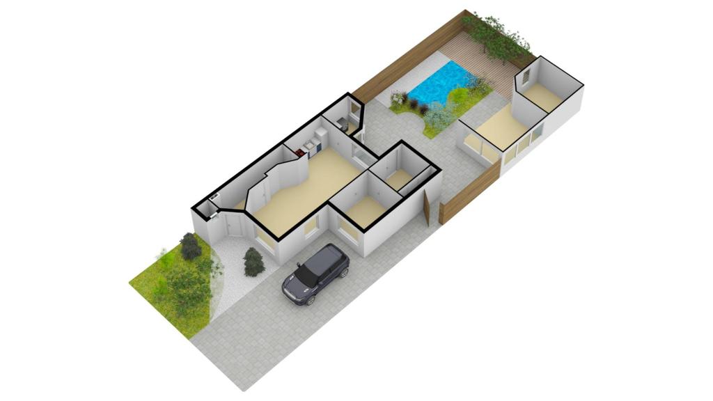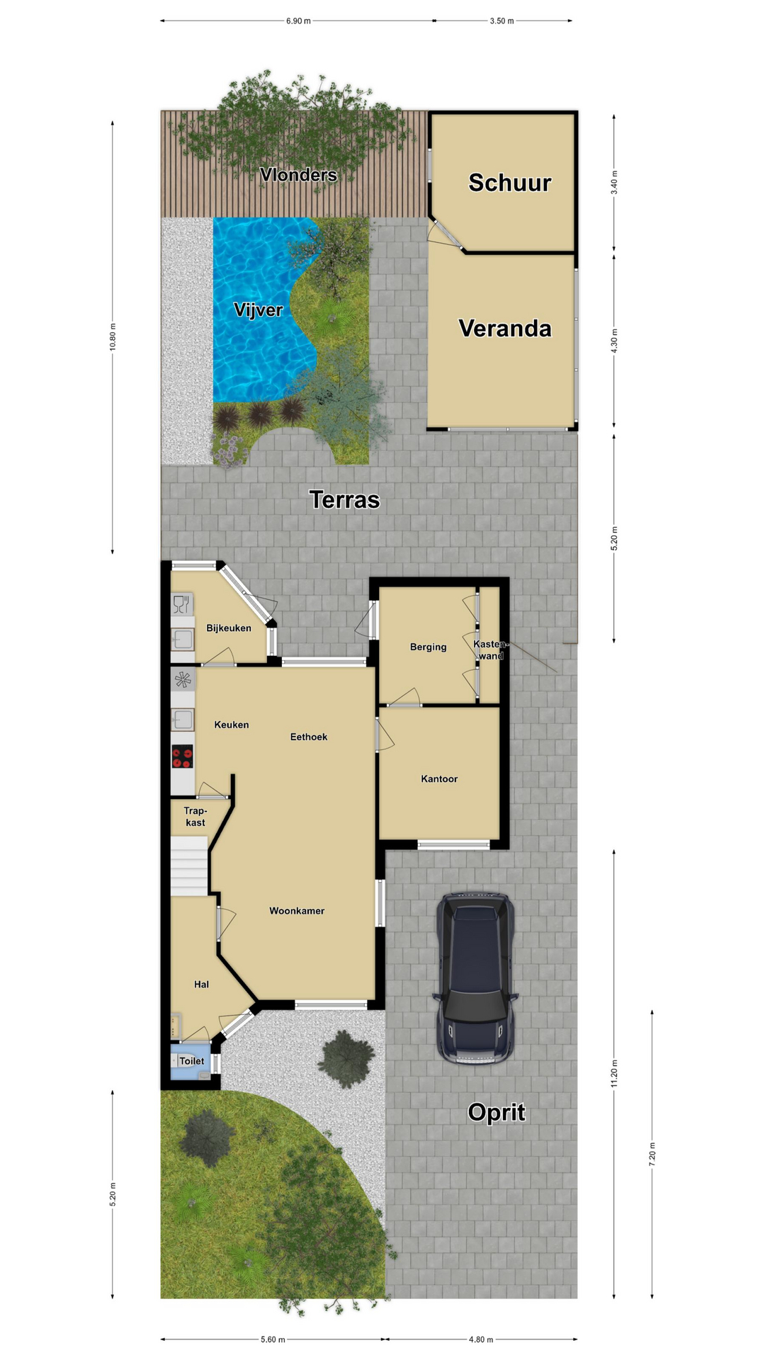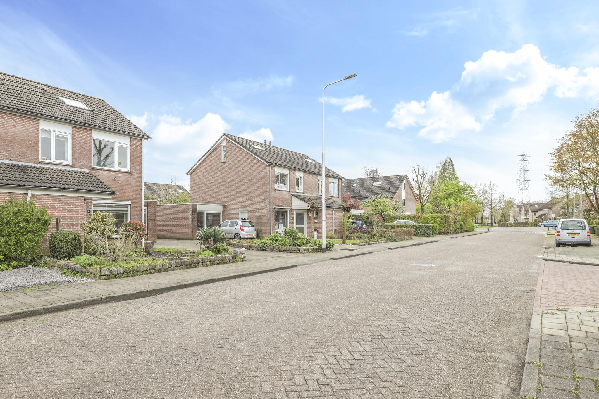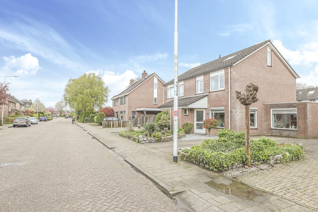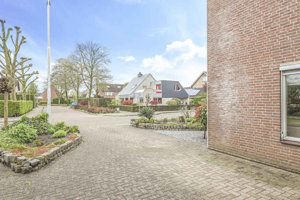De voortuin is ruim 7 meter diep waardoor je hier een fijne buffer hebt naar de straat toe. Diverse planten en struiken geven het een groene aankleding. Naast de woning is de oprit gelegen. Deze is ruim 11 meter diep waardoor je hier met gemak 2 auto’s op eigen terrein kunt parkeren. Mocht dit toch niet voldoende zijn, dan is er nog plek op straat voor de woning in een van de parkeerhavens.