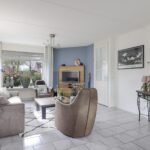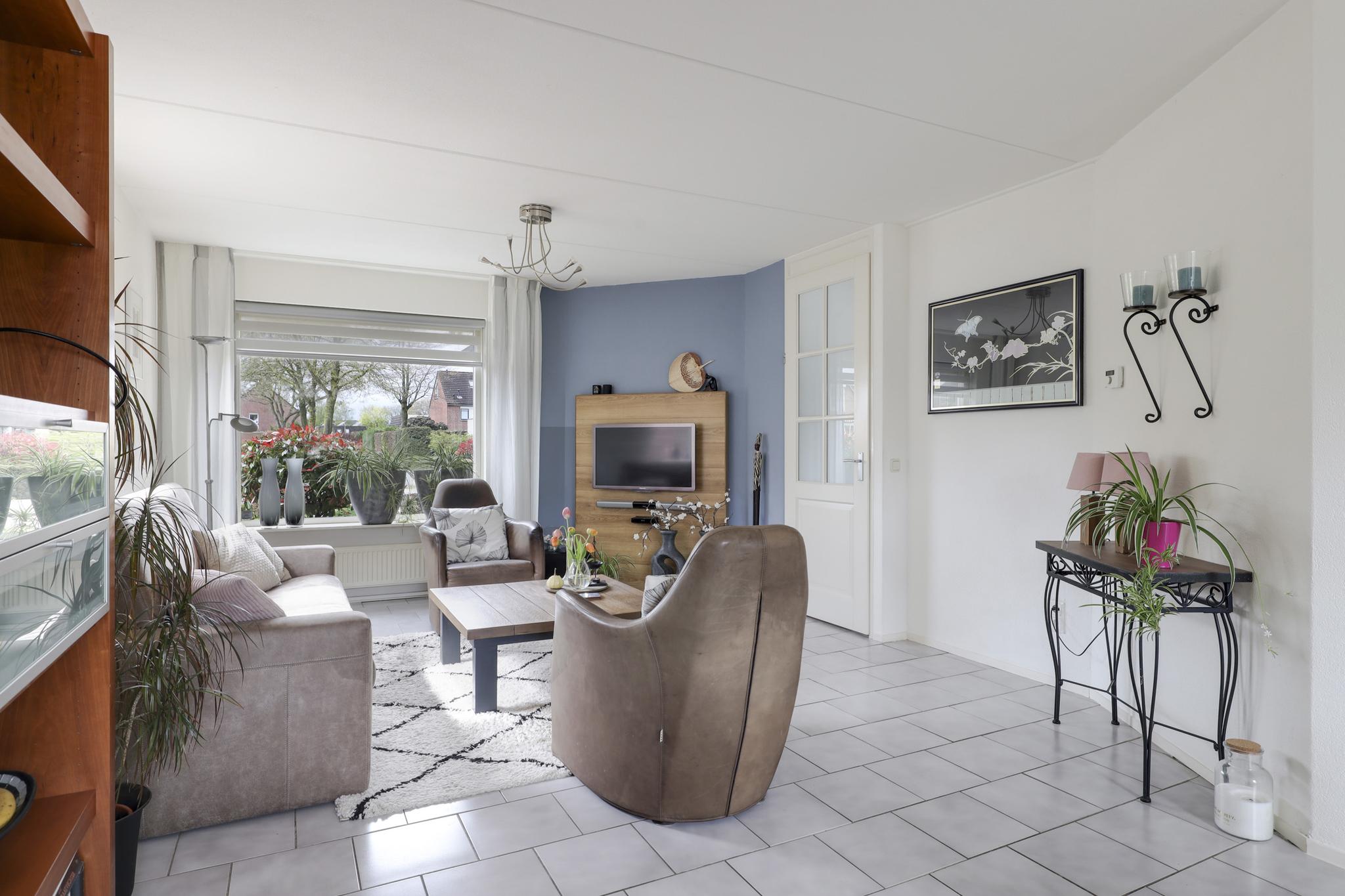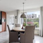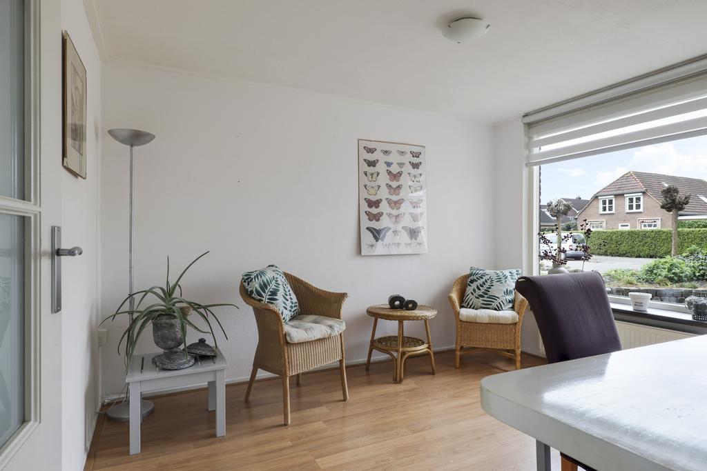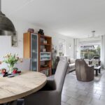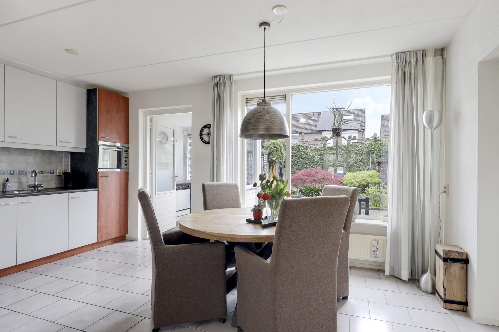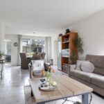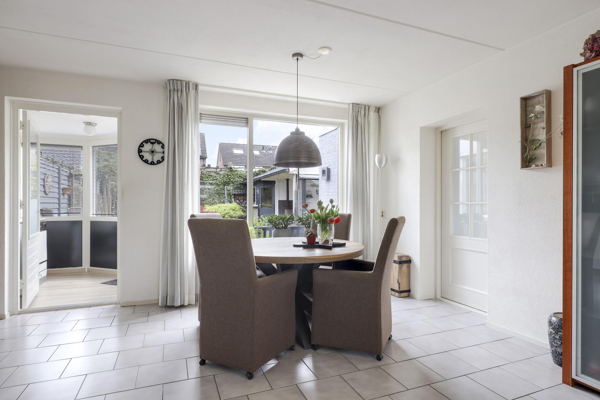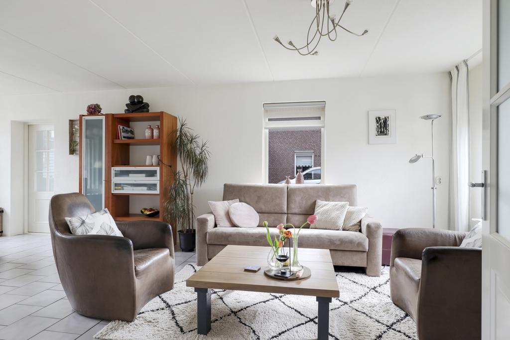 Deze woning heeft een klassieke doorzon-woonkamer met grote raampartijen waaronder in de zijgevel. Hierdoor is het altijd licht in de woonkamer wat voor een prettige woonsfeer zorgt. De kamer is goed in te richten met een grote hoekbank en een 6-persoons eettafel. Op de vloer liggen plavuizen welke aangenaam aanvoelen door de aanwezige vloerverwarming.