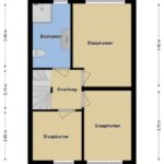Via een ruime hal met toilet en trapopgang komen we op de 1e verdieping terecht. De overloop schakelt hier 3 slaapkamers en de badkamer aan elkaar. De slaapkamers zijn respectievelijk 14m², 9m² en 7m² groot. Doordat je hier geen schuine dakvlakken tegen komt, zijn de kamers allen optimaal in te richten. Ook hier zien we de grote raampartijen terug waardoor de kamers allen veel lichtinval hebben.
