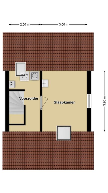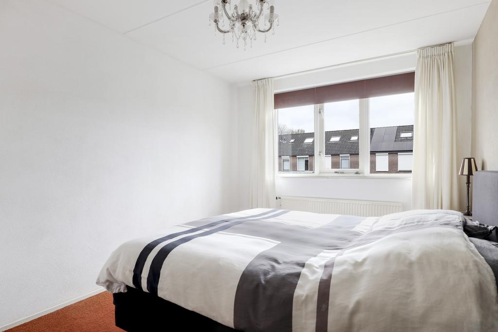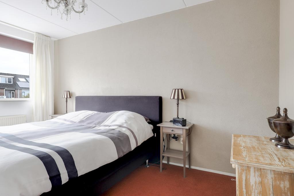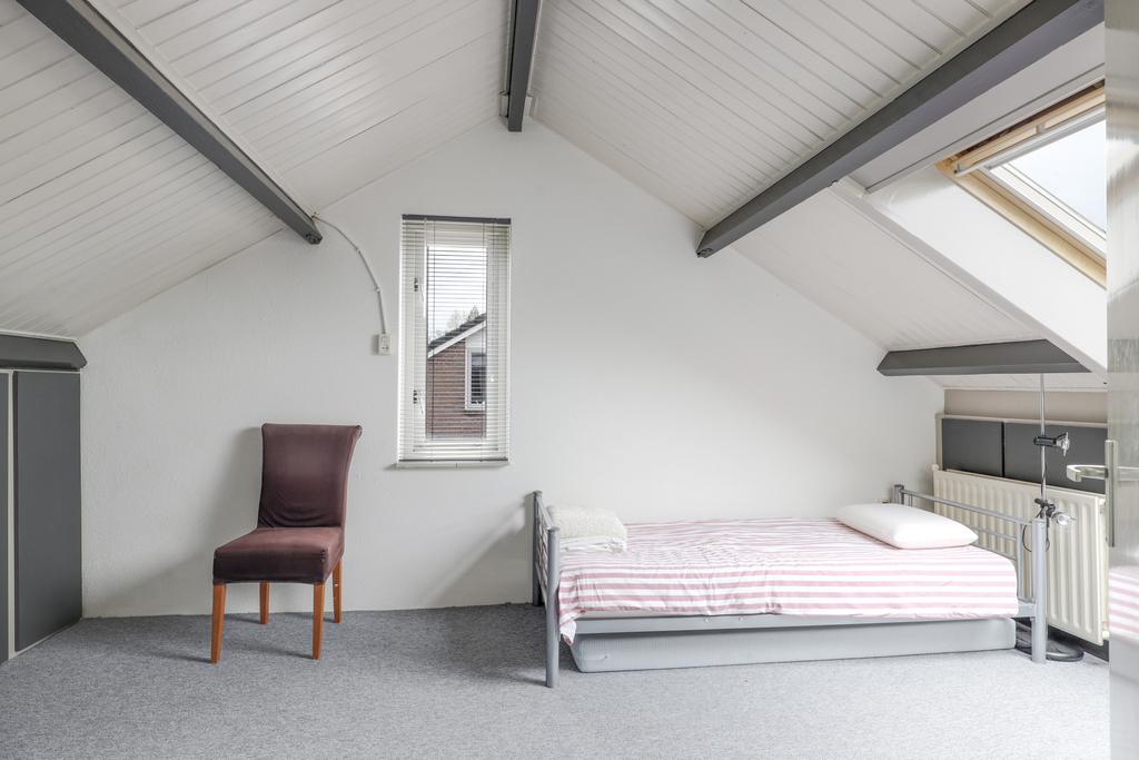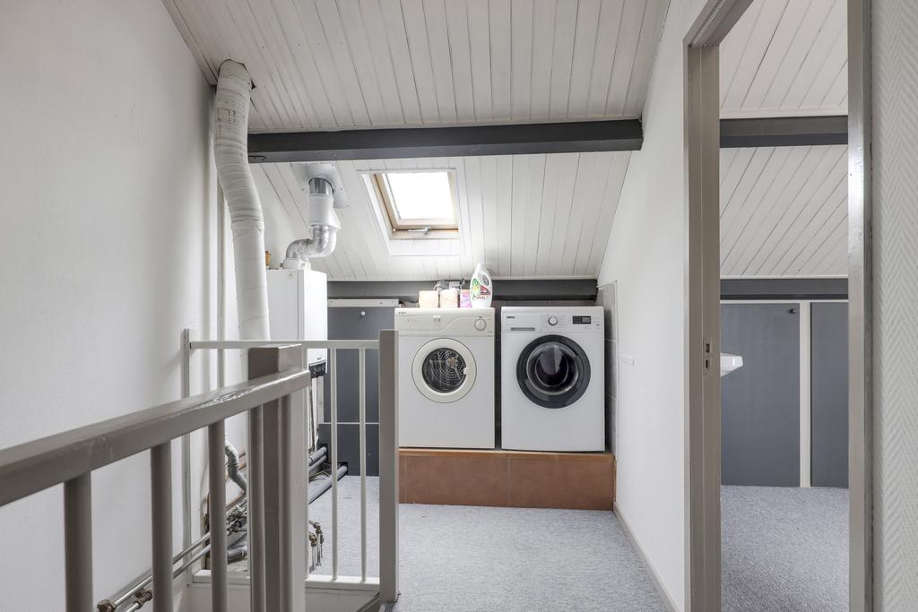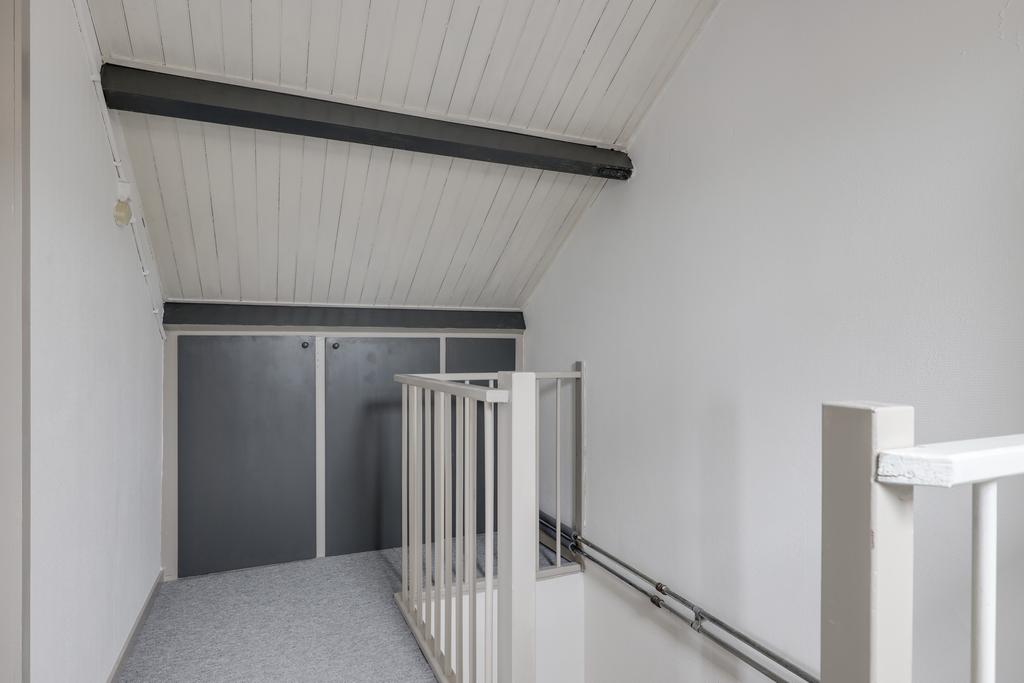 Via de vaste trap is de 2e verdieping te bereiken. Deze woonlaag is opgedeeld in een voorzolder en een 4e slaapkamer. De slaapkamer is ca. 12m² groot, doordat dit gemeten is vanaf 1,5m hoogte, is de ruimte in werkelijkheid nog groter. Onder de schuine kanten zijn knieschotten geplaatst waardoor je veel spullen uit het zicht kunt opbergen. De kamer heeft een zijgevelraam en een groot dakraam. De voorzolder biedt veel opbergmogelijkheden. Ook zijn hier de witgoedaansluitingen en de opstelling van de cv-ketel terug te vinden. Ook hier zijn knieschotten en een dakraam geplaatst.