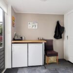 Grenzend aan de keuken is een aanbouw geplaatst wat in gebruik is als bijkeuken. Het tweede keukenblok biedt plaats voor een 2e spoelbak en een vaatwasser. De ruimte is voorzien van veel ramen en een deur naar de achtertuin.