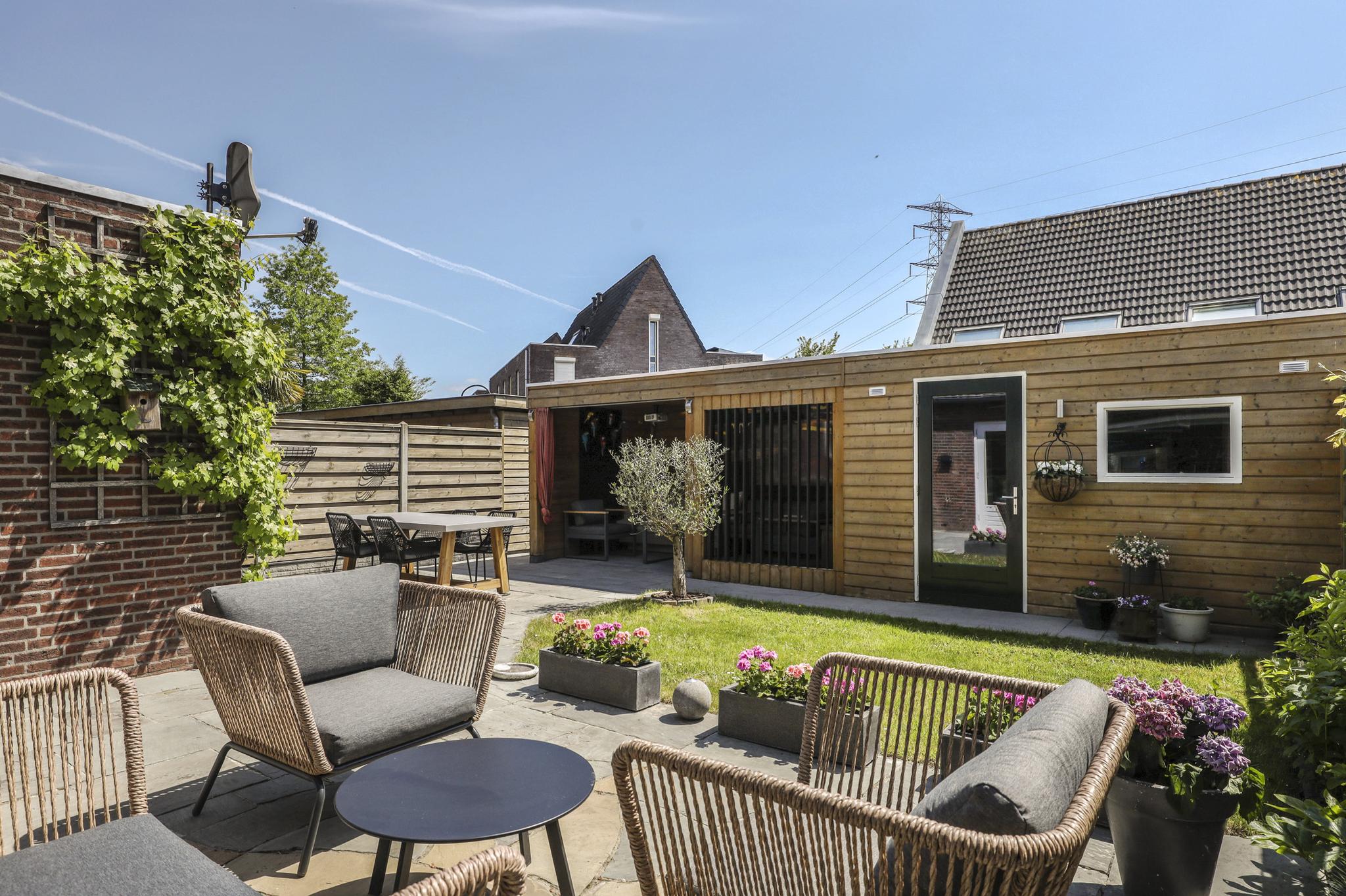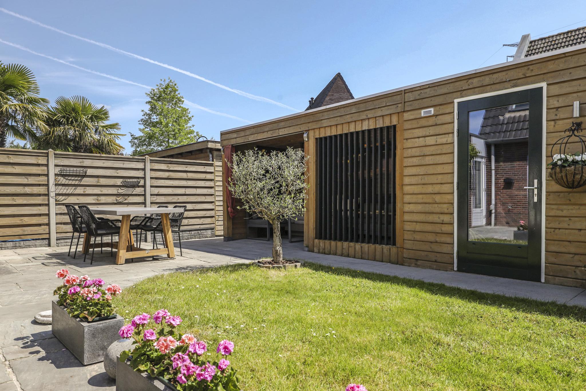Naast dit aantrekkelijke bijgebouw is een poort (achterom) te vinden. Hierdoor is de achtertuin goed toegankelijk voor fietsen en/of een motor.