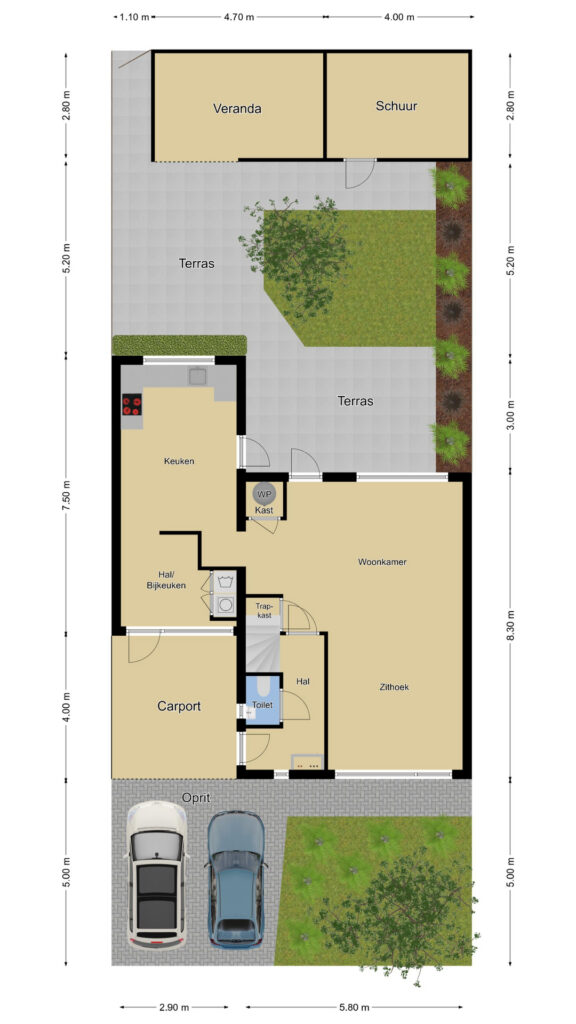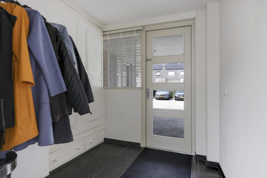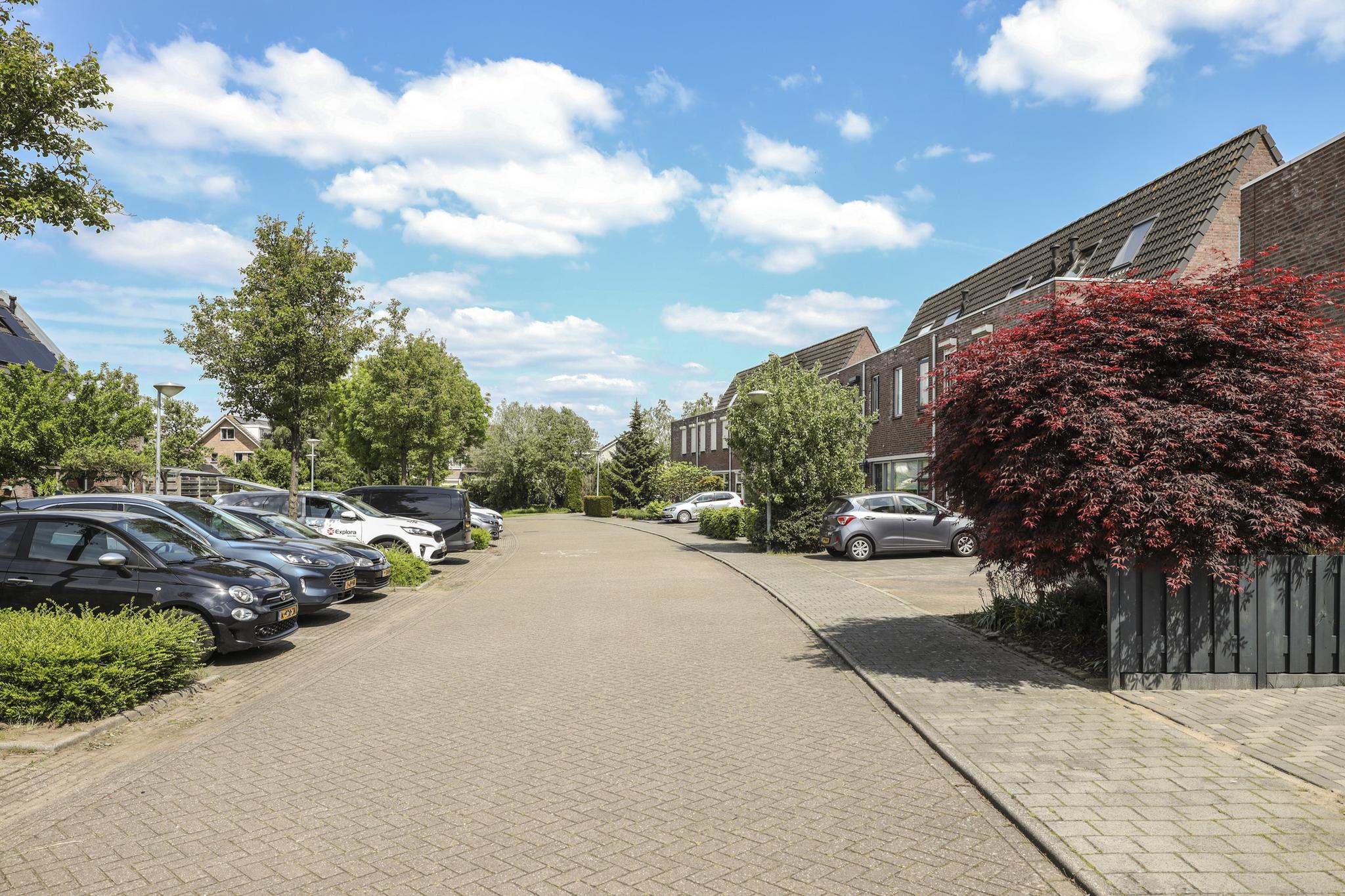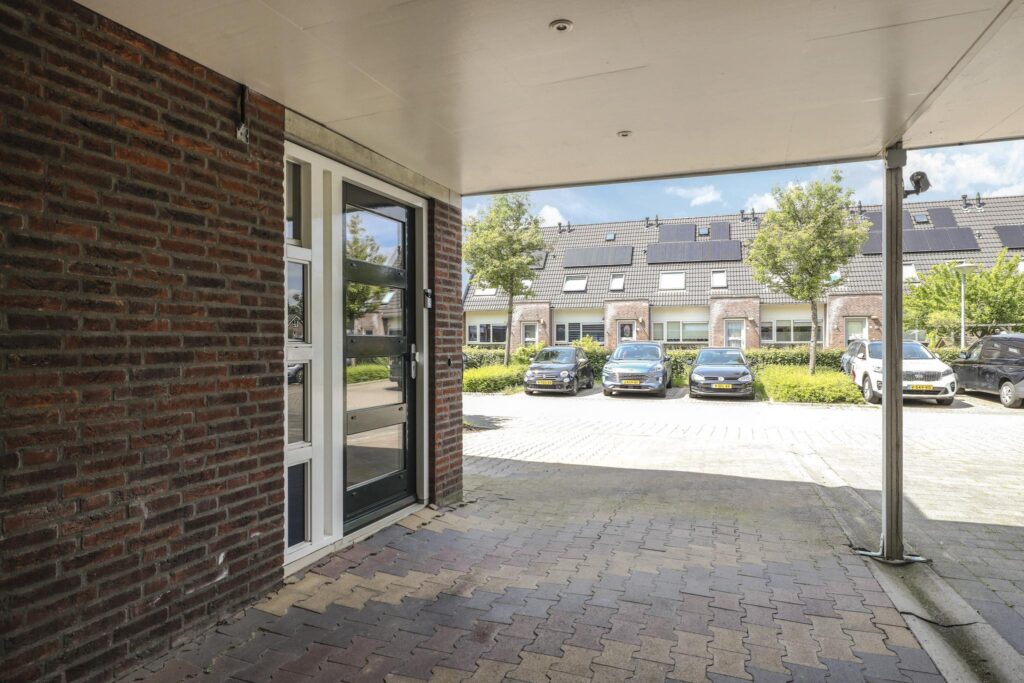 De oprit biedt plaats aan 2 auto’s die naast elkaar te parkeren zijn. Eveneens praktisch is de carport waardoor je bij de voordeur altijd droog staat. Een laadpaal is voorbereid. De woning is aan een ruim opgezette, groene aangeklede en autoluwe straat gelegen met aan het einde een grasveld met speelvoorzieningen.