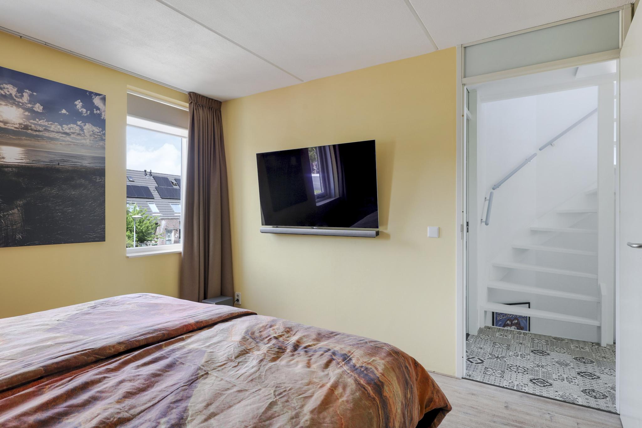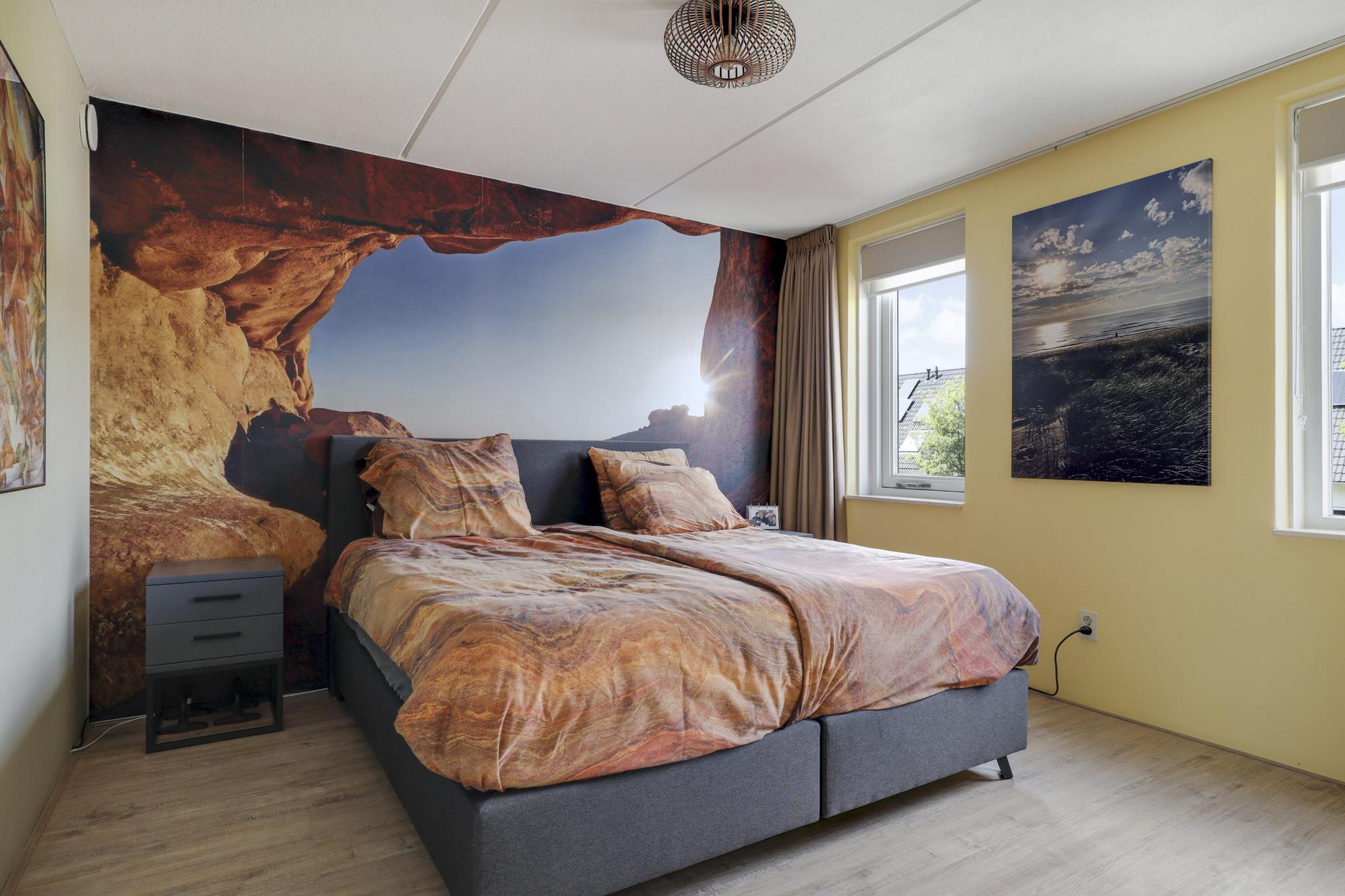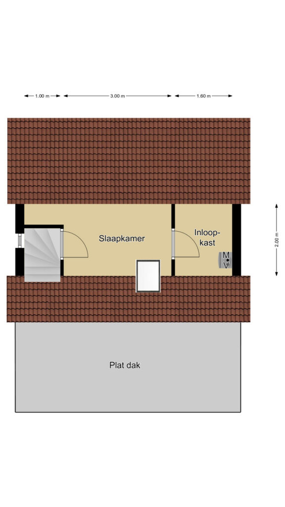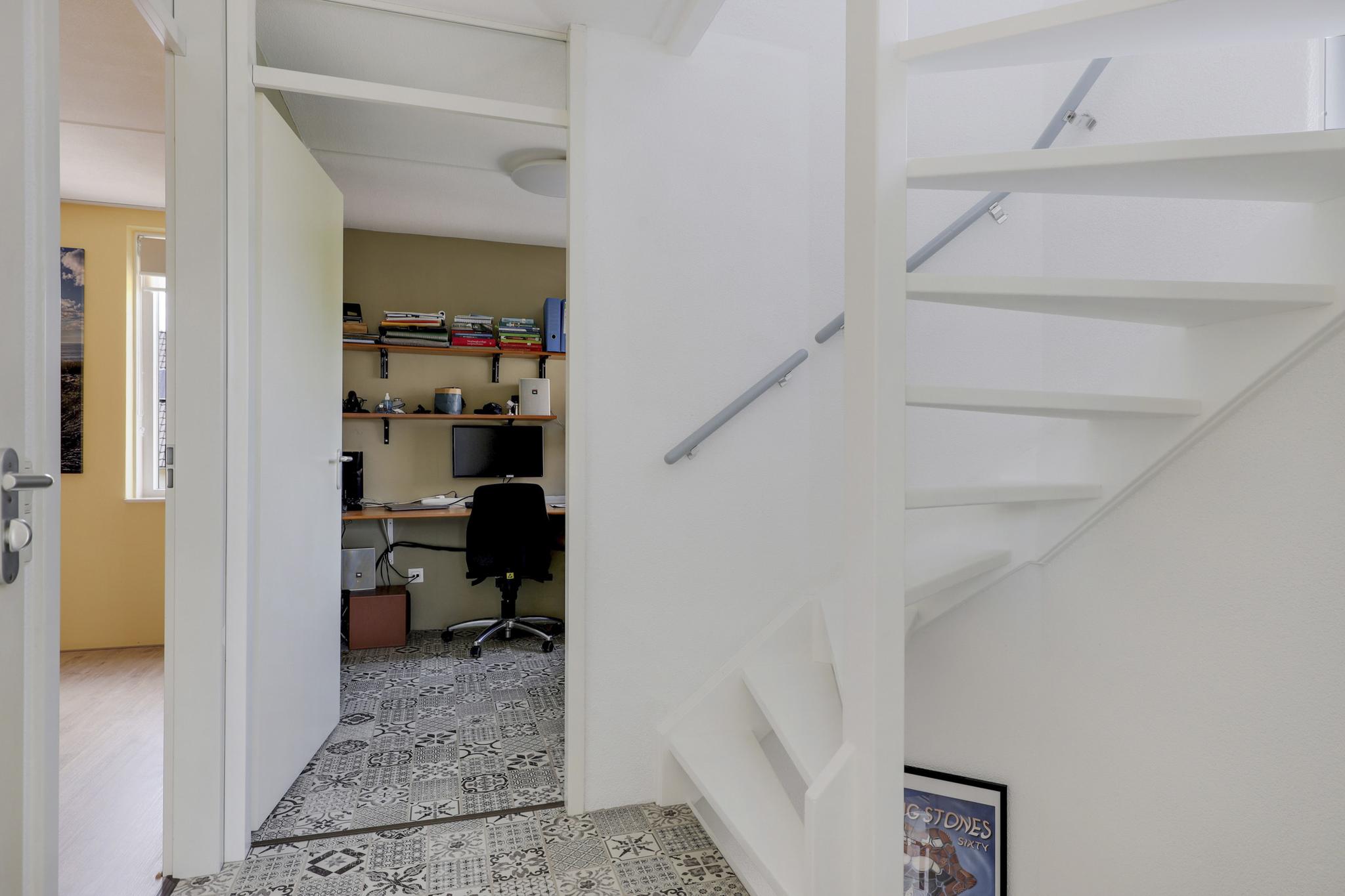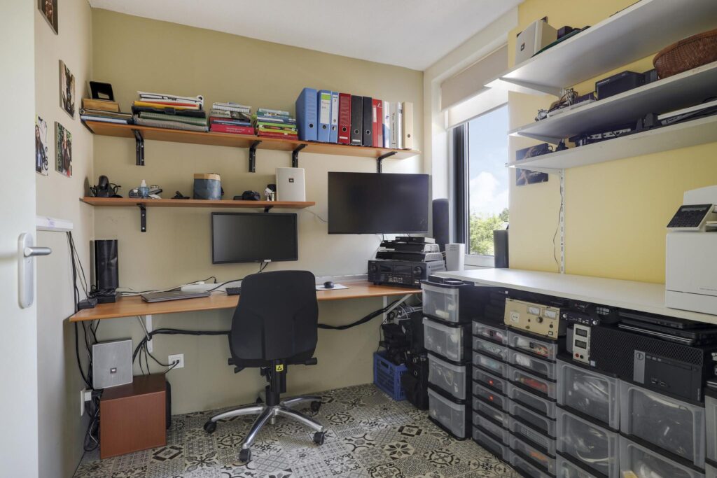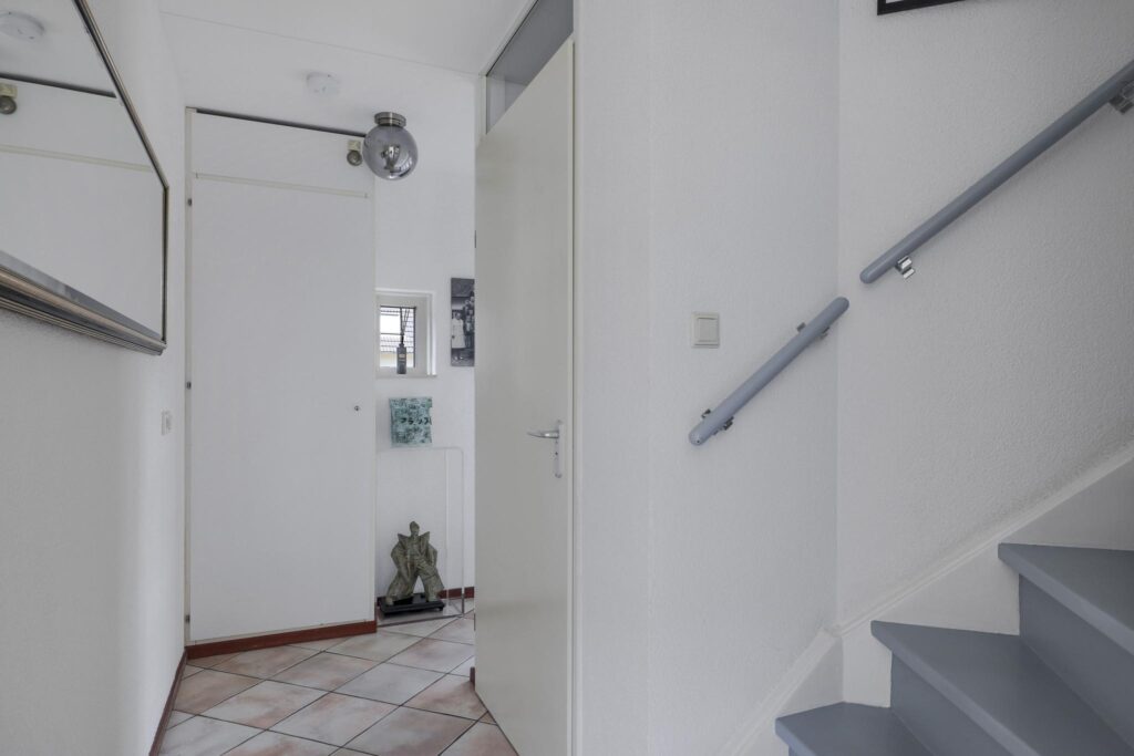 Deze woonlaag is wat krapper, maar biedt nog steeds de mogelijkheid om een 4e slaapkamer te creëren. Het trappengat is afsluitbaar middels een deur. Achterin de kamer is een inloopkast aanwezig waar je de nodige spullen kunt opbergen. Ook is hier de WTW-unit geïnstalleerd. De (slaap)kamer is multifunctioneel te gebruiken. Je zou het bijvoorbeeld ook kunnen inrichten als hobby- of werkkamer. Een dakvenster zorgt voor een prettige lichtinval. Hetzelfde geldt voor het trappenhuis waar een smal, maar hoog raam (ook op de overloop) voor veel lichtinval zorgt.