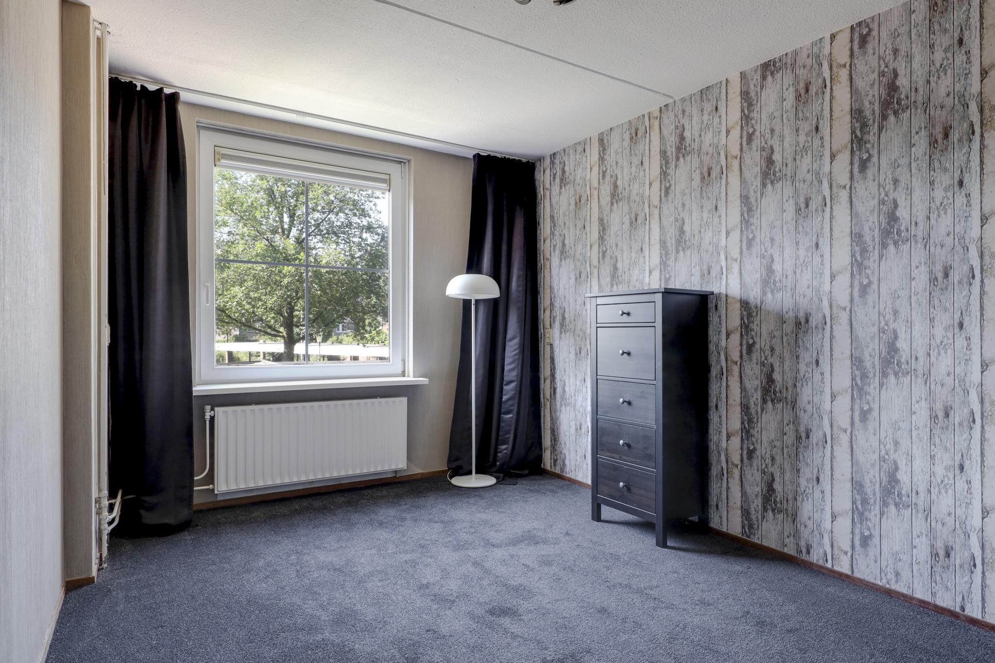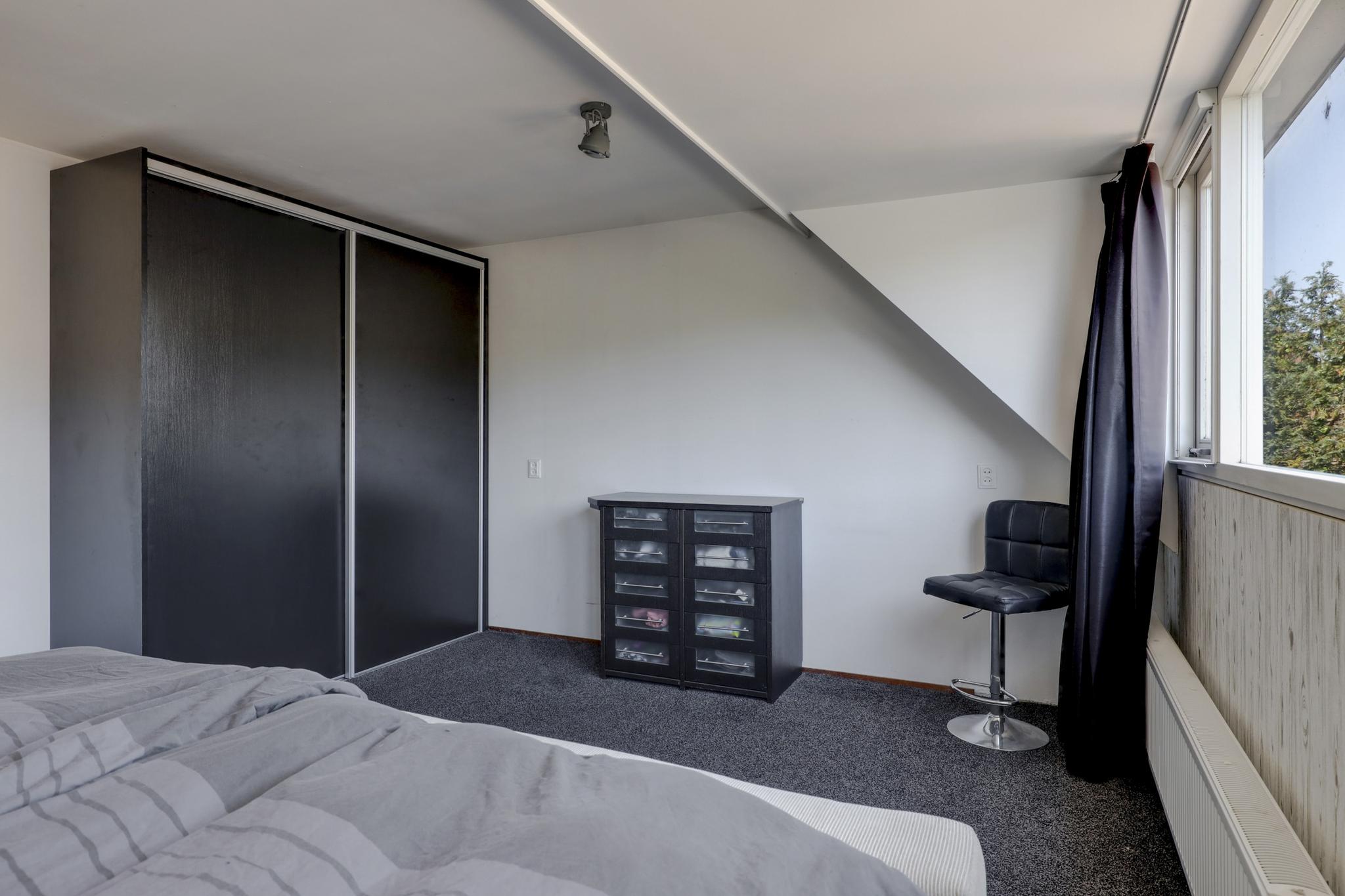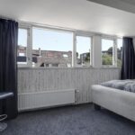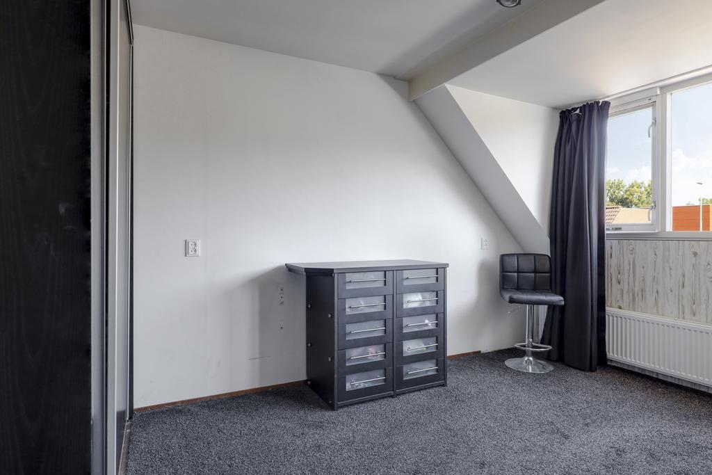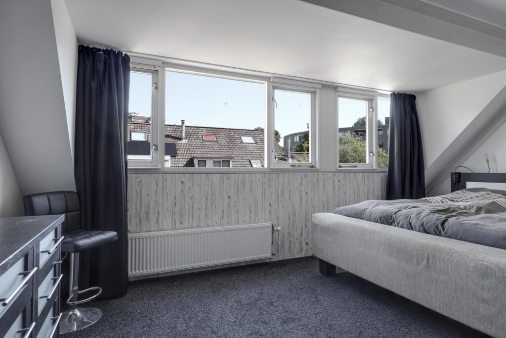 Via de hal/entree, waar ook het toilet en de meterkast zitten, komen we op de eerste verdieping terecht. Op deze woonlaag zijn 3 slaapkamers aanwezig, echter is in de huidige situatie een scheidingswand tussen 2 slaapkamers verwijderd waardoor deze kamers zijn samengevoegd. De deuren zijn aanwezig gebleven waardoor dit eenvoudig terug te brengen is naar 3 slaapkamers. Een breed dakkapel over de gehele breedte van de woning biedt meer praktische leefruimte.