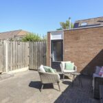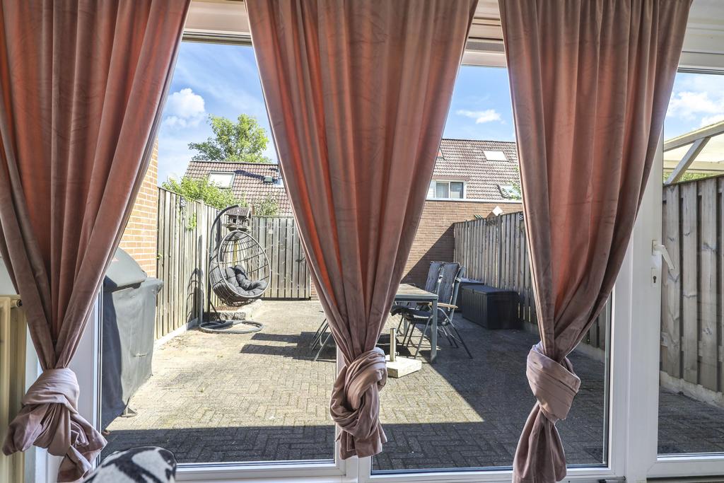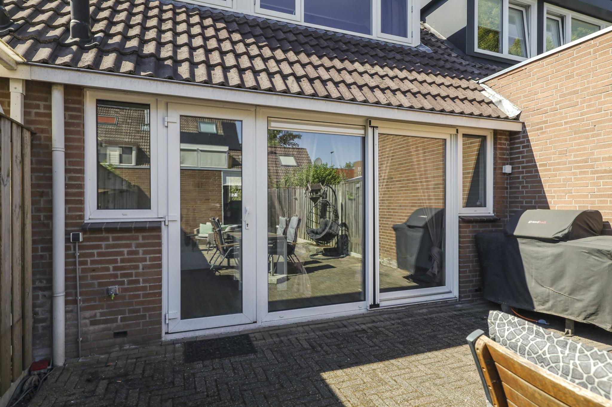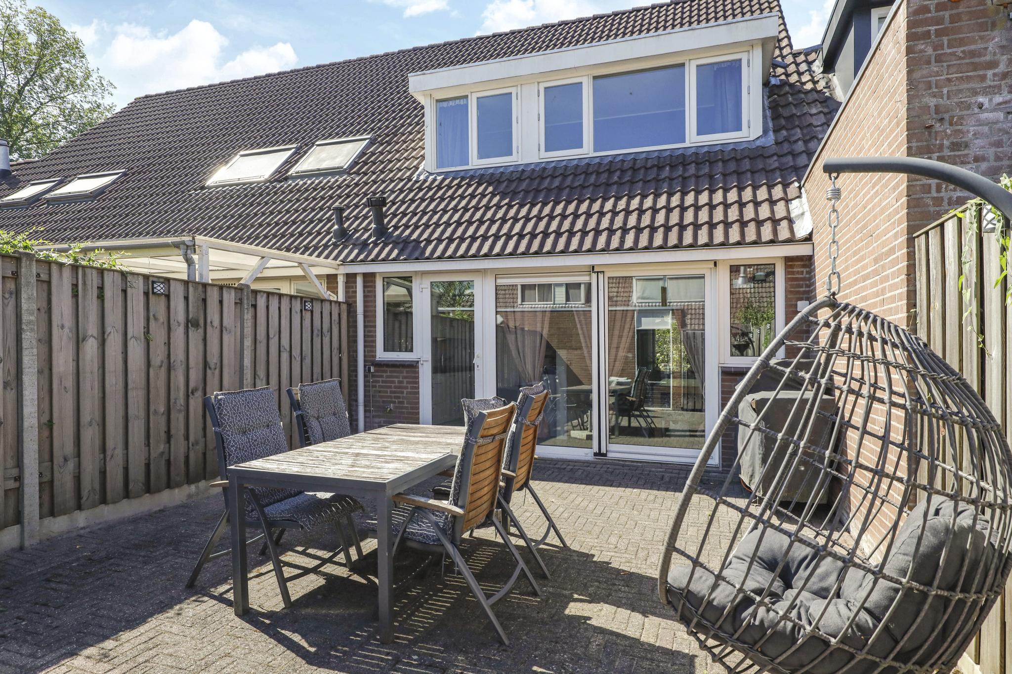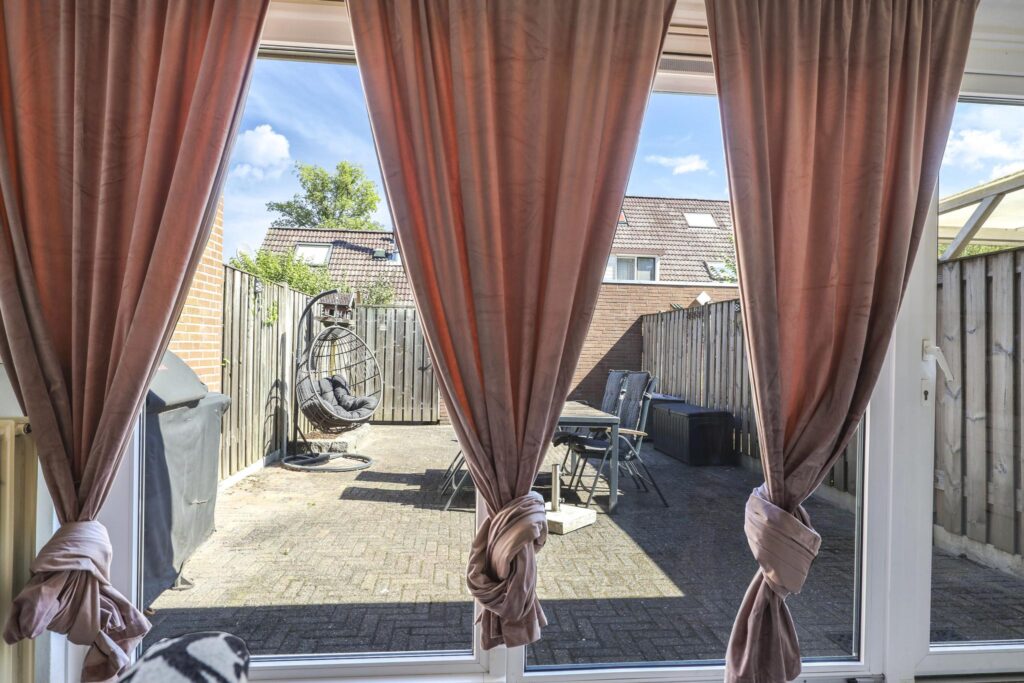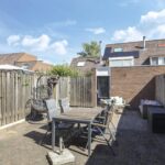 Via de schuifpui is de achtertuin te bereiken. De tuin heeft een onderhoudsvriendelijk karakter en is ingedeeld met een groot terras. Met gemak kan je hier meerdere tuinsets kwijt waardoor er verschillende zithoeken worden gecreëerd. Achter in de tuin is een stenen schuur geplaatst. Hier heb je veel praktische opbergruimte voor bijvoorbeeld de fiets en/of motor. Een bredere poort dan gemiddeld maakt dat je eenvoudig met de motor te tuin in kan. De erfafscheidingen zijn degelijk geplaatst met houten schuttingen met betonpalen.