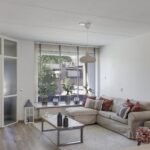 Ruime woonkamer met brede schuifpui en 2 inbouw/voorraadkasten