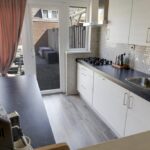 Open keuken v.v. alle wenselijke inbouwapparatuur en tuindeur.