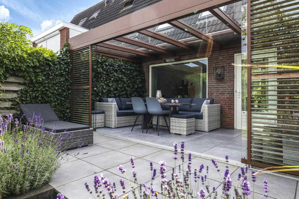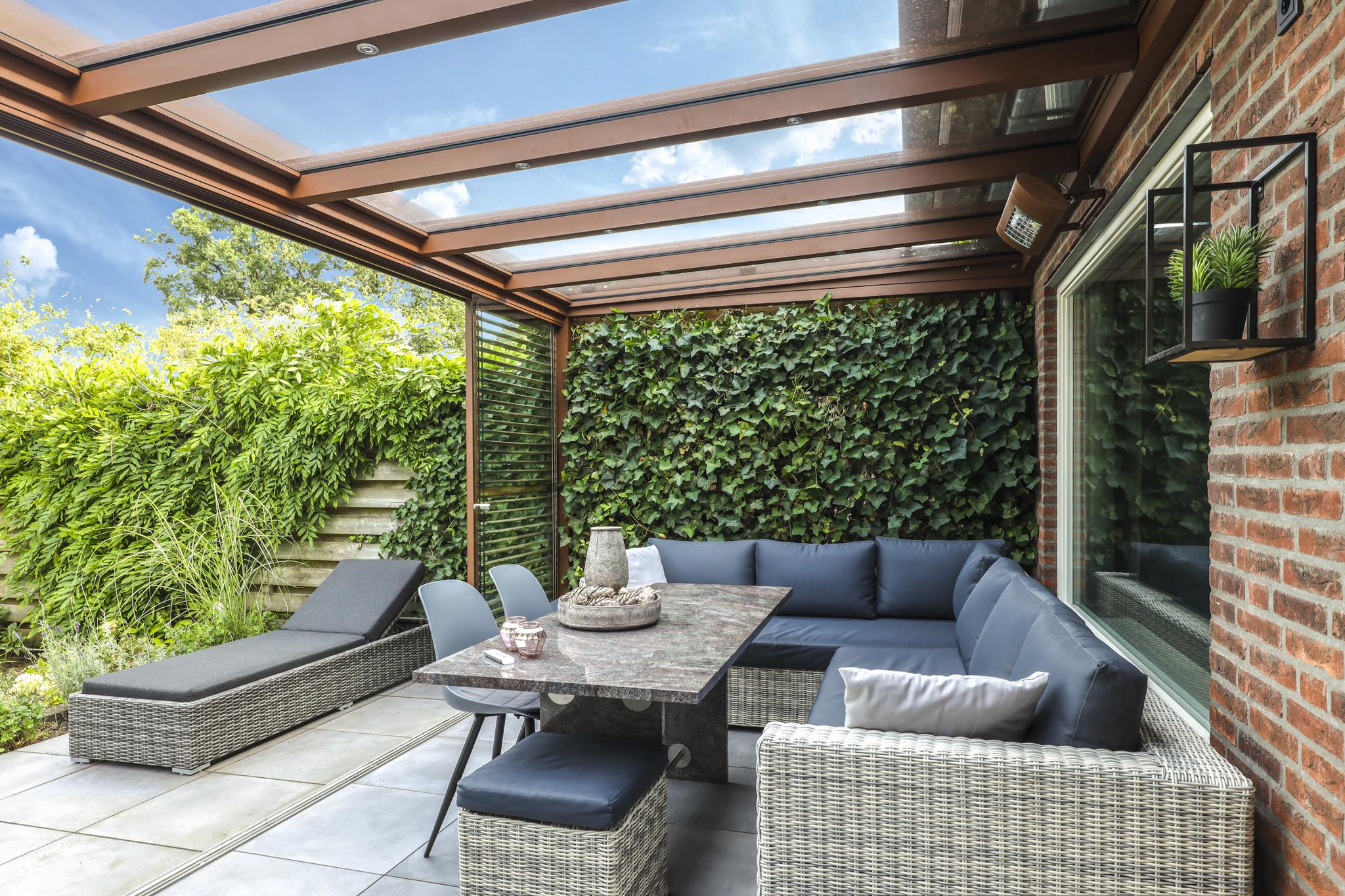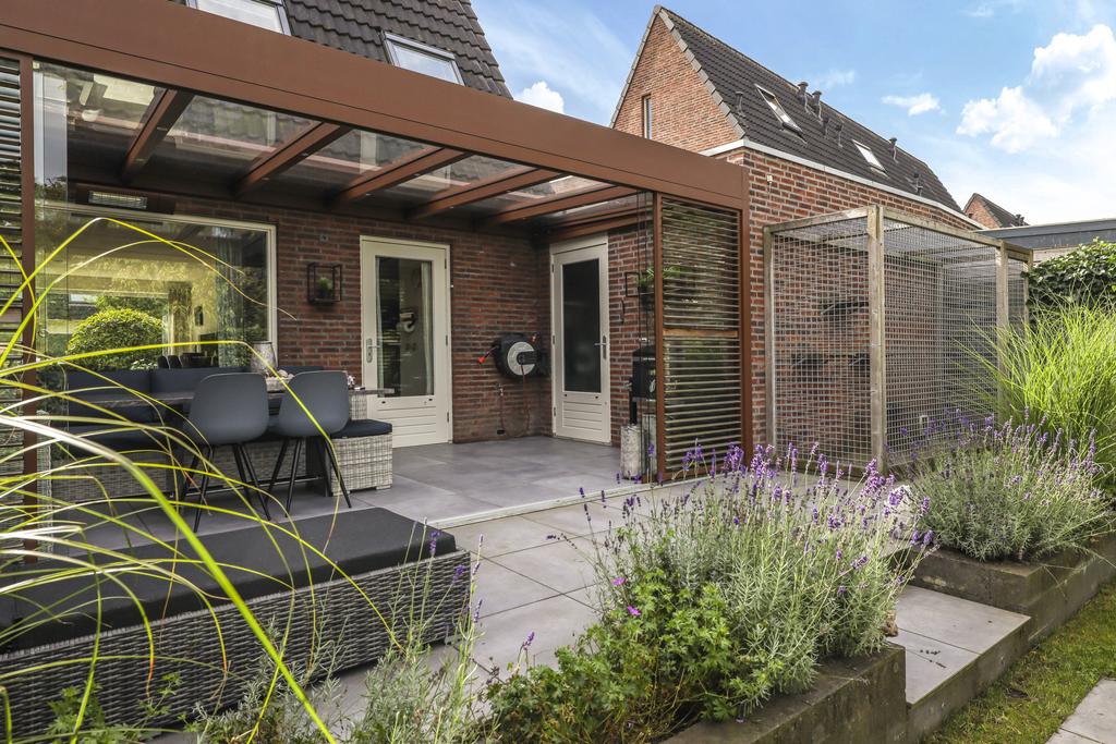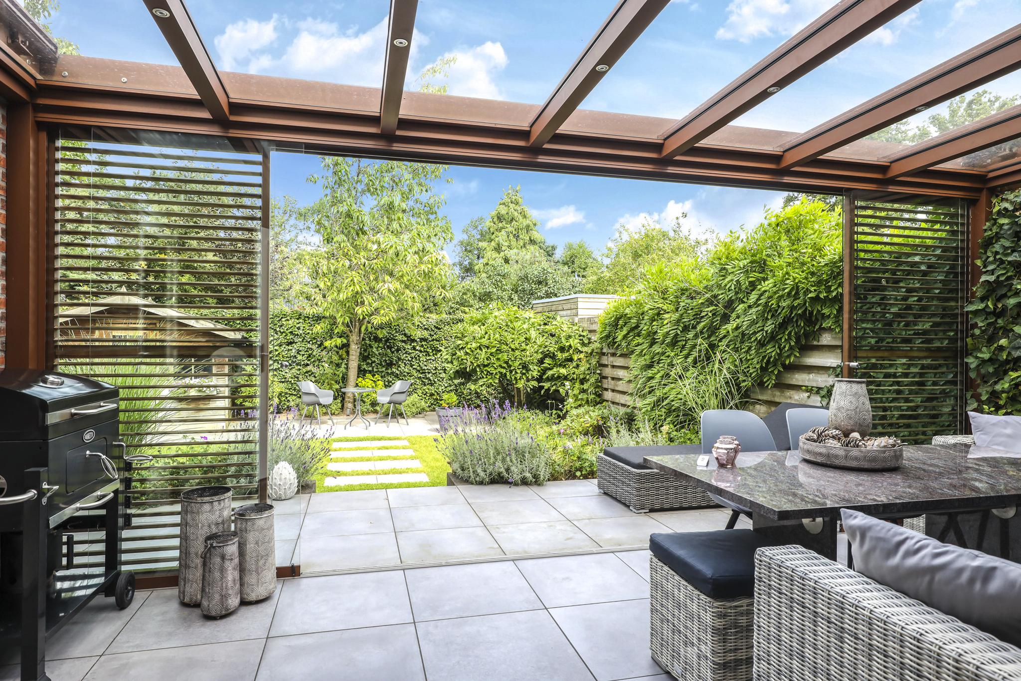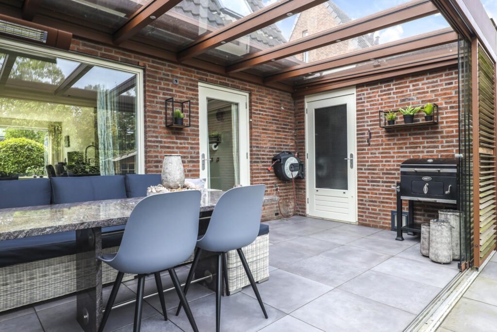 Aan de achterzijde van de woning is niet zomaar een veranda aangebouwd. Hier straalt de luxe en exclusiviteit vanaf doordat er mooie materialen zijn toegepast. En doordat de veranda geheel is af te sluiten, noemen we het dan ook eerder een tuinkamer. Indien gewenst zou je hier het gehele jaar kunnen genieten, dus ook in de winter. Je zou het kunnen zien als het verlengde van de woning.