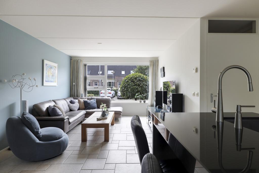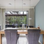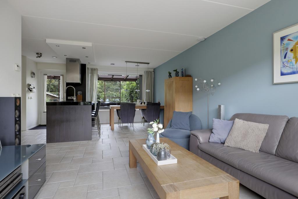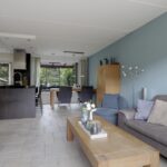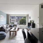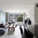 De beleving van de woonkamer is in positieve zin flink veranderd sinds dat de scheidingsmuur met de keuken is verwijderd. Zowel de woonkamer als de keuken zijn er veel ruimtelijker op geworden. Het open karakter wordt extra versterkt door de speelse raampartijen die (deels) doorlopen tot aan de vloer.